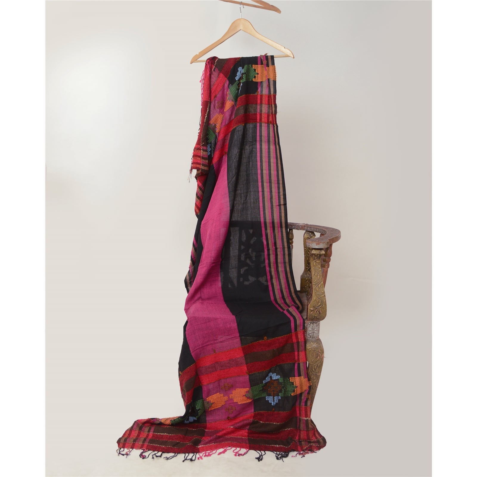 Sanskriti Vintage Pink/Black Long Woollen Shawl Embroidered Woven Scarf Stole