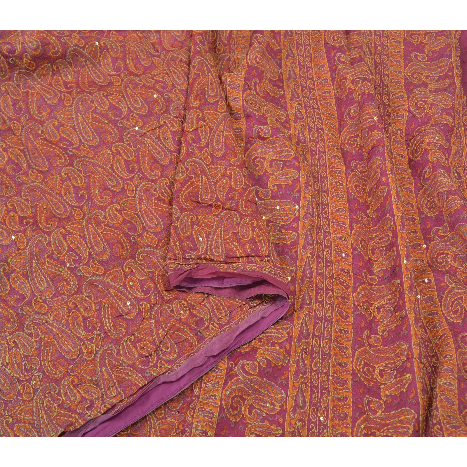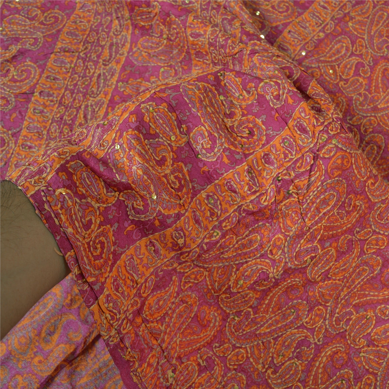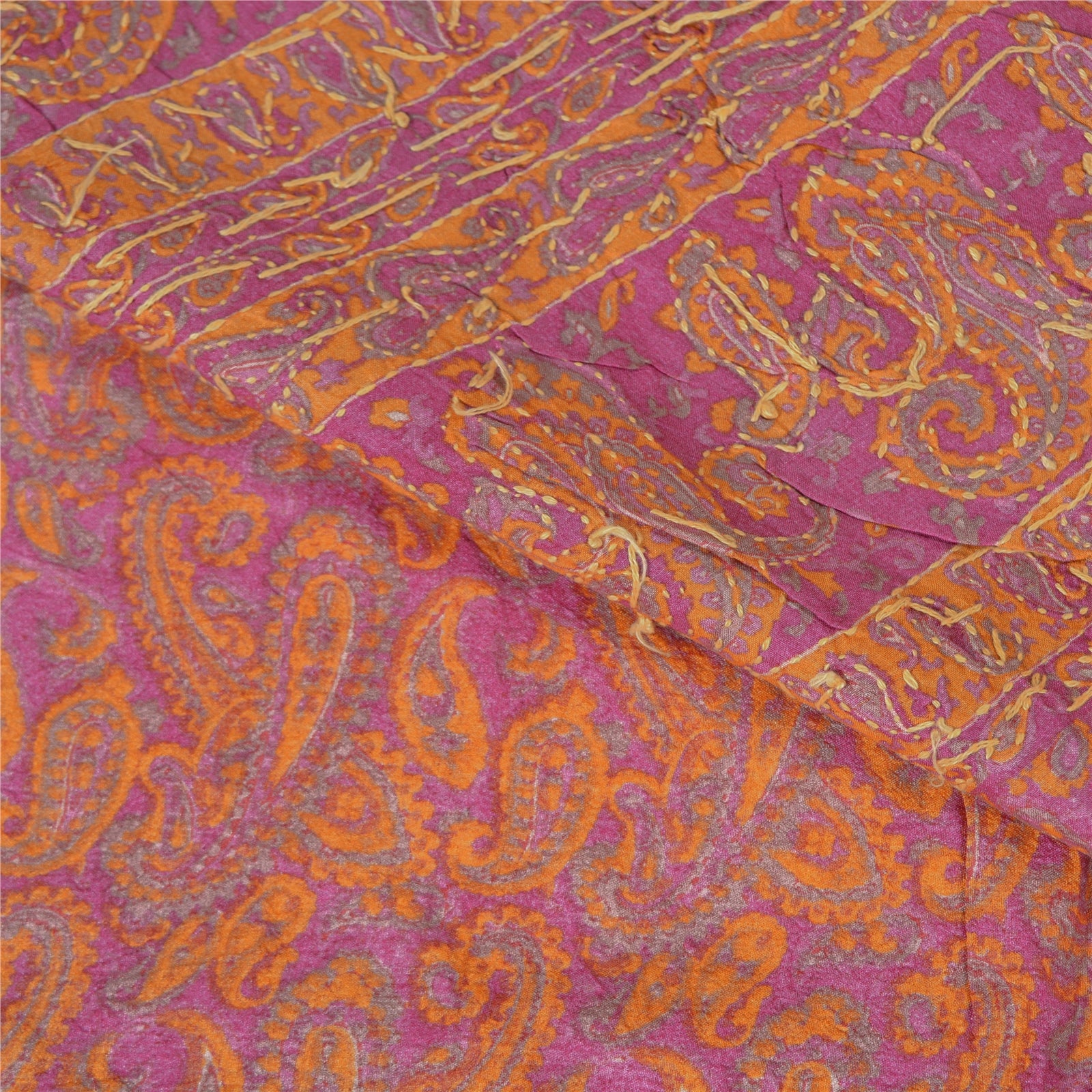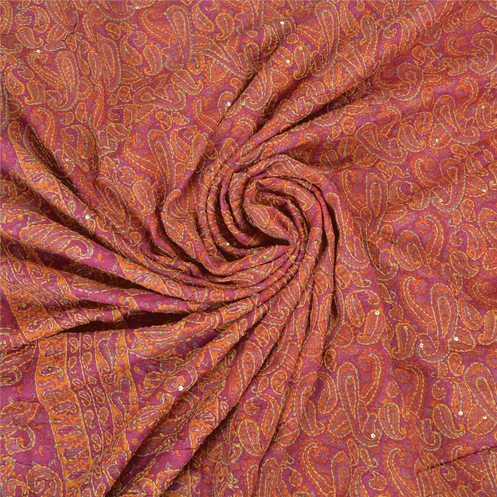 Beautiful pink colored 100% pure silk hand embroidered Kantha & printed heavy saree. Pallu & Border features printed floral & paisley pattern with cream running stitched thread & golden sequins work (kantha embroidery). You can see similar printed & thread work with floral pattern in center part of saree. This heavy saree can be used for various crafting ideas too. Use it for dress designing, as a throw, as window dressing, upholstery, table linen and much more. Let your creative juices flow!