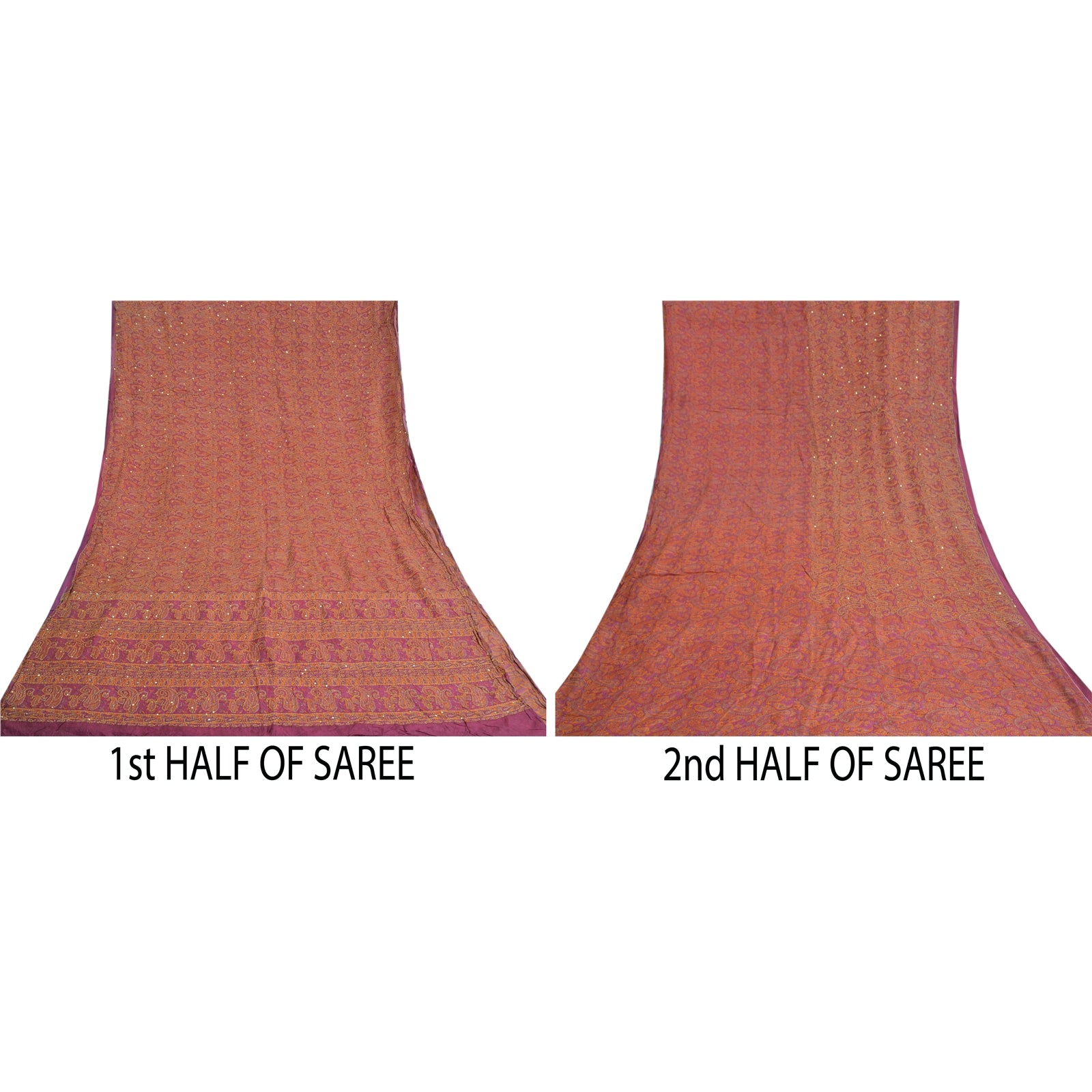 Sanskriti Vintage Pink Heavy Sarees Pure Silk Hand Beaded Kantha Sari Sustainable Fabric