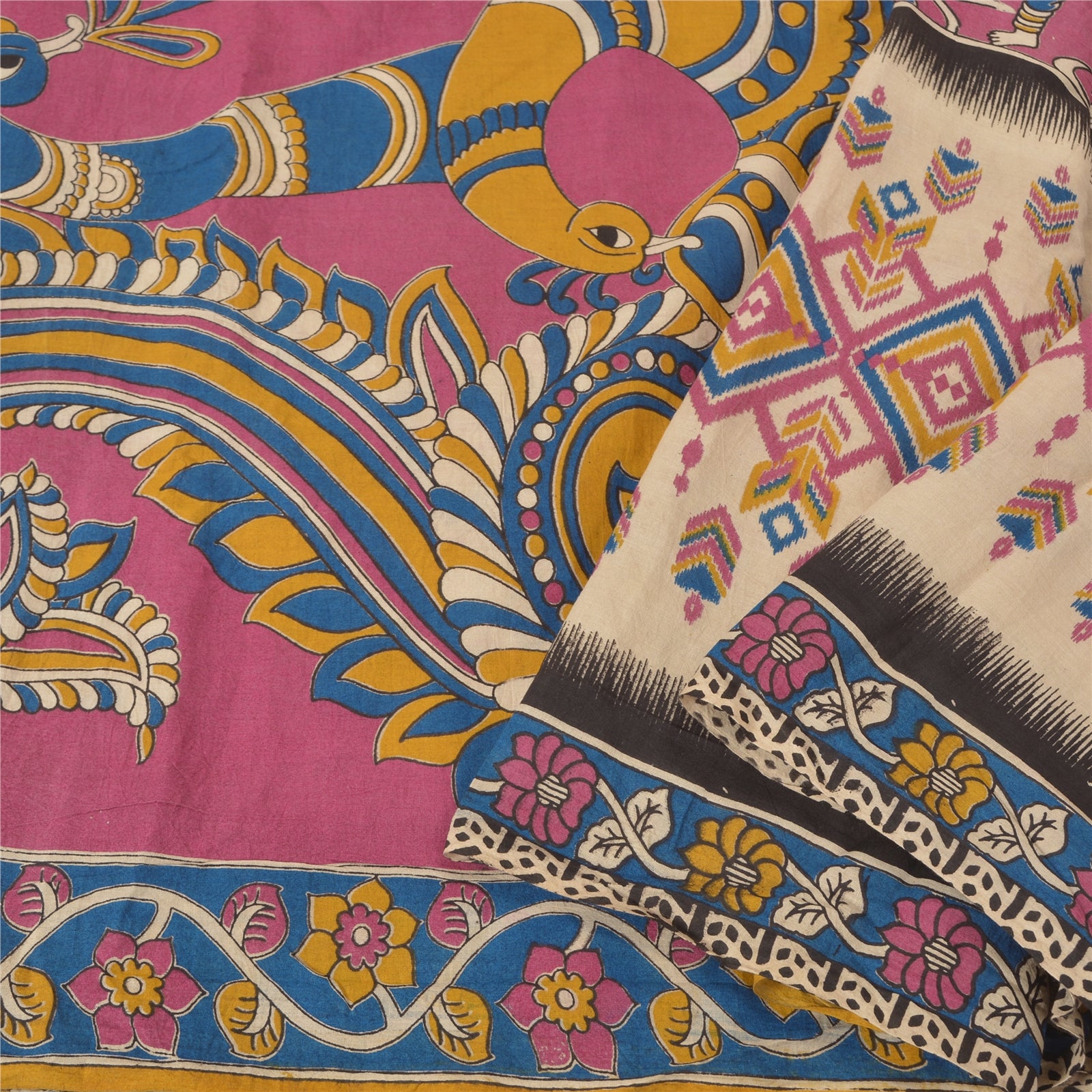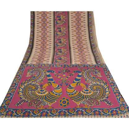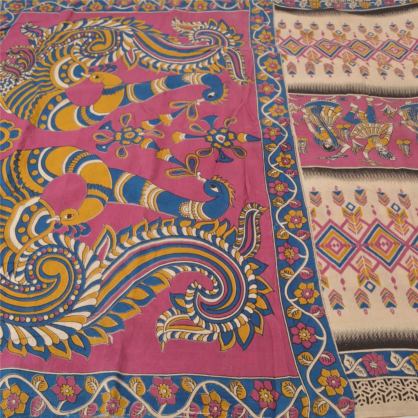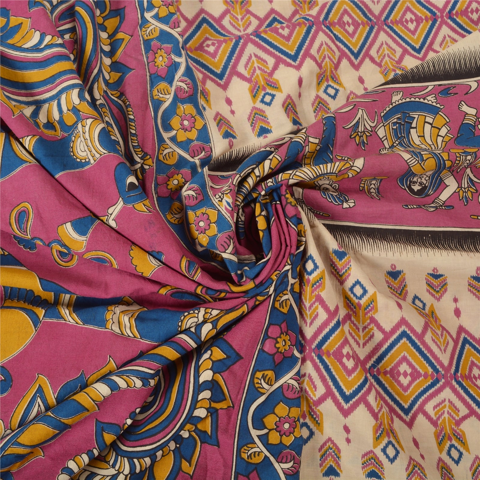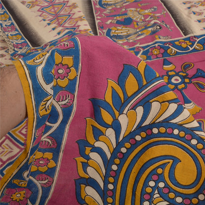 Sanskriti Vintage Pink Sarees 100% Pure Cotton Patachitra Printed Sari Sustainable Fabric