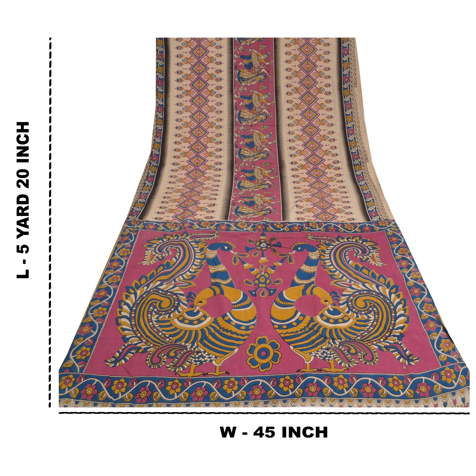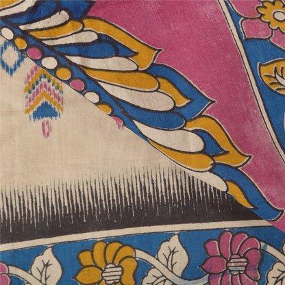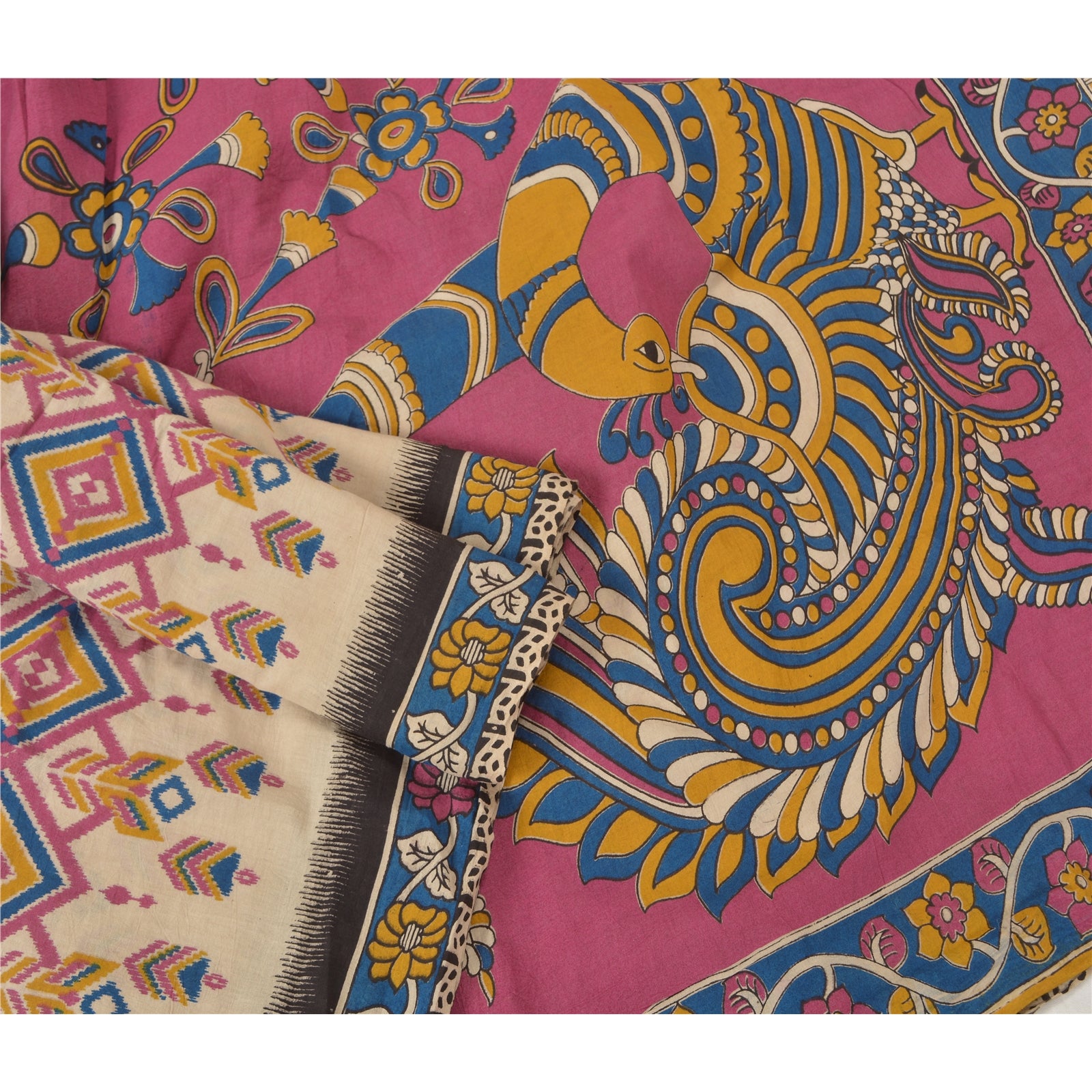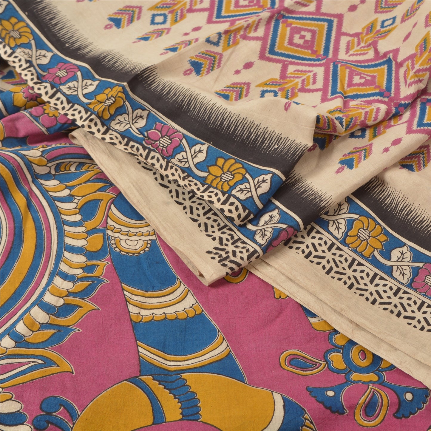 Sanskriti Vintage Pink Sarees 100% Pure Cotton Patachitra Printed Sari Sustainable Fabric