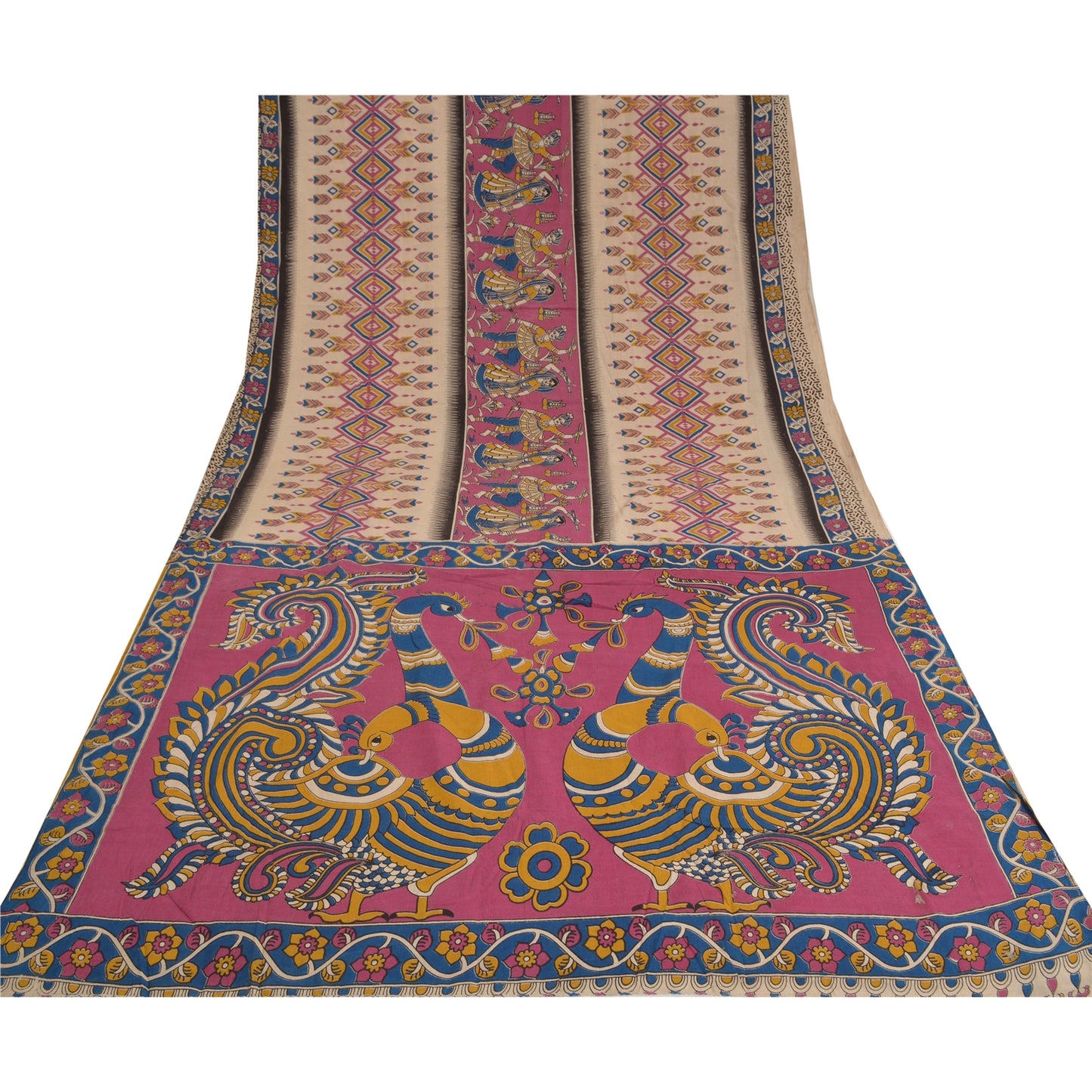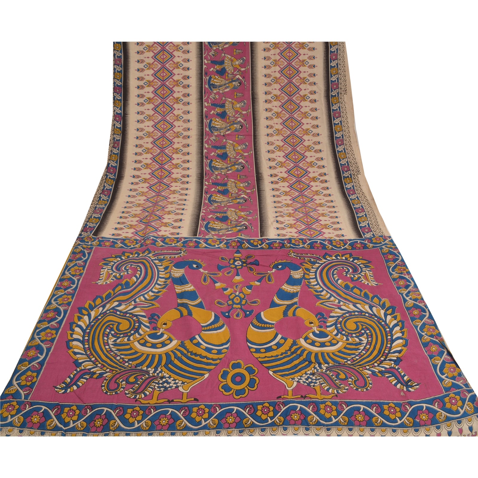 'THE ITEM COLOR OR SHADE MAY BE DARKER OR LIGHTER THAN THE PICTURE.' We are offering a 100% pure cotton Sustainable Fabric pink & ivory color base Patachitra Printed Saree. One of the oldest forms of artwork found in Orissa, Patachitra art is fascinating, depicts Hindu mythological tales and wonders. Primarily based on these stories from the past, Patachitra art is vibrant, unique and is a fine display of dexterous Indian craftsmanship at its best. What is even more interesting is that this artwork has Mughal influences as well when it comes to the character’s apparel and fashion sense. Features of each character are defined with clear dark lines which give a definite shape and appeal. Natural dyes and colors are used, all of which are derived from fruits and vegetables. This saree has a pink & ivory base on 100% pure cotton Sustainable Fabric which is patachitra printed. Full saree is printed on multi color base in peacock, floral, leaf, human dancing figures and other geometrical designs in blue, yellow, pink and black color. Pallu of this saree is printed in peacock designs with blue, yellow, pink and black color. Border of this saree has a blue base with flowers printed in yellow and pink color. As the item is Vintage, some minor stains and defects are expected. It is beautiful saree which gives you a connect to older times. 'International buyers please note: Import duties, taxes, and charges are not included in the item price or postage cost. These charges are the buyer's responsibility. Please check with your country's customs office to determine what these additional costs will be prior to bidding or buying. Buyer will pay custom duty/tax. It is calculated and charged differently by every country. As a seller I do not have any control over it. VAT or sales tax is calculated by the platform at the time of checkout. Customs charge is payable at the time of delivery.