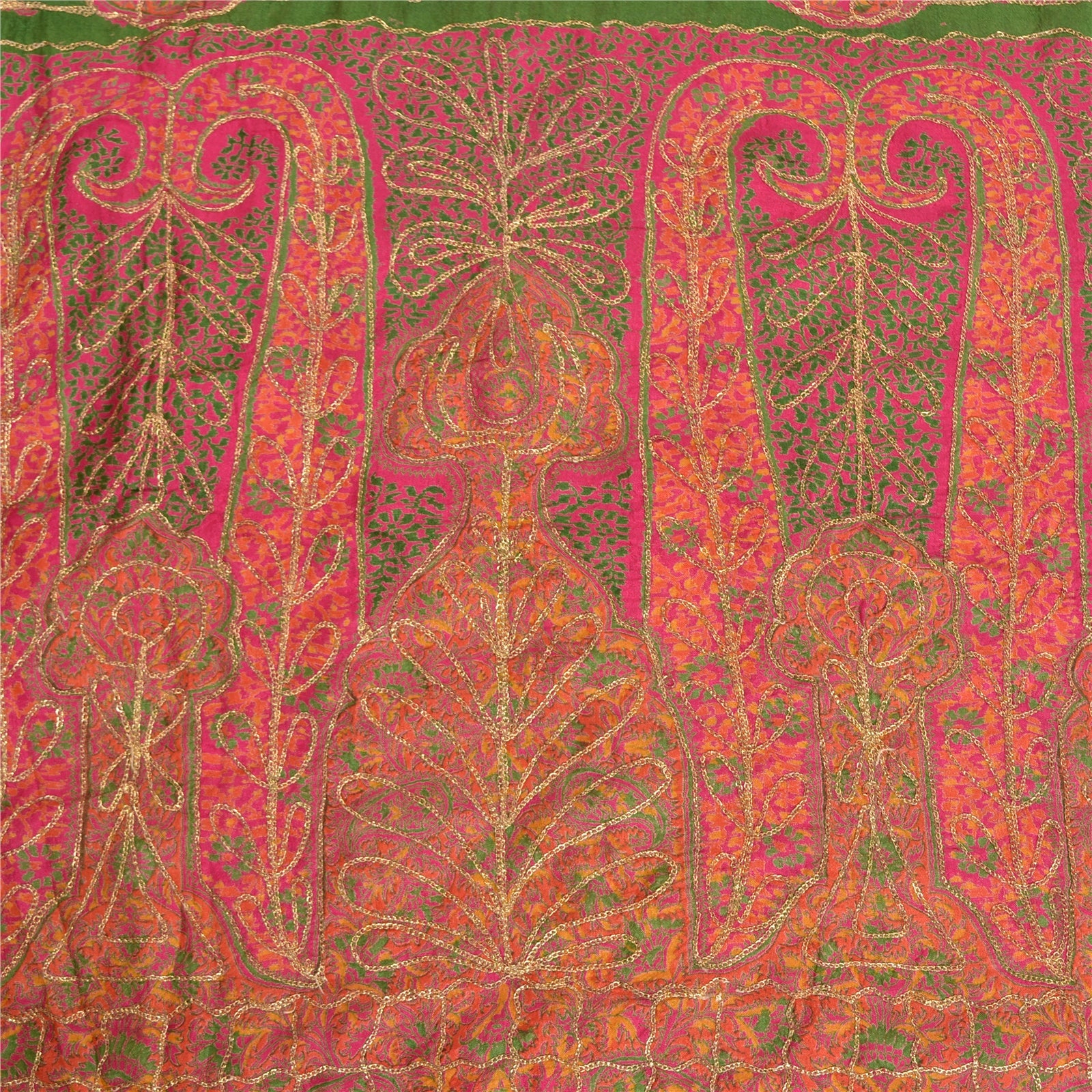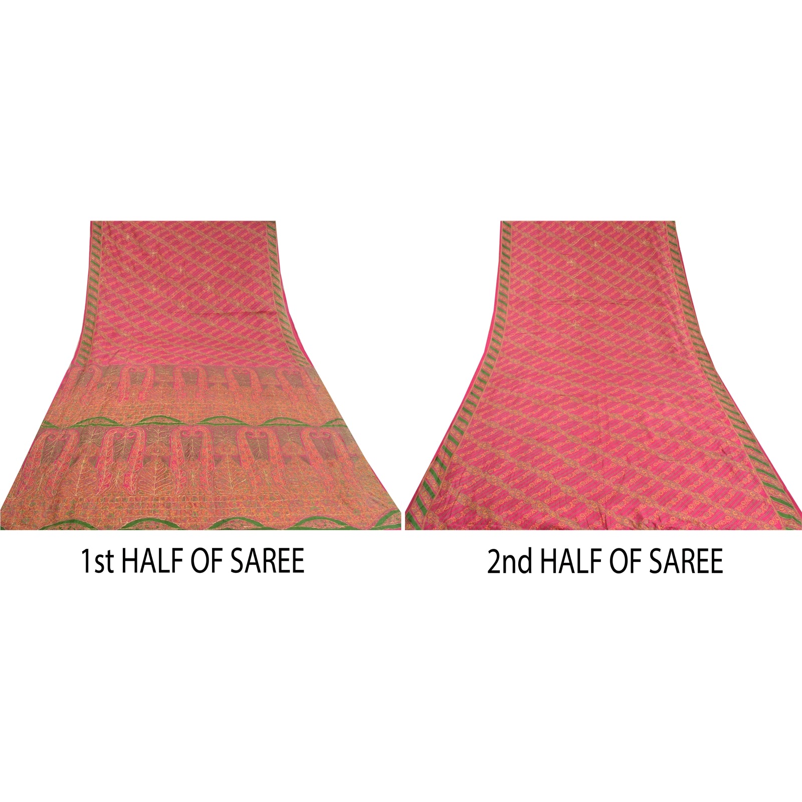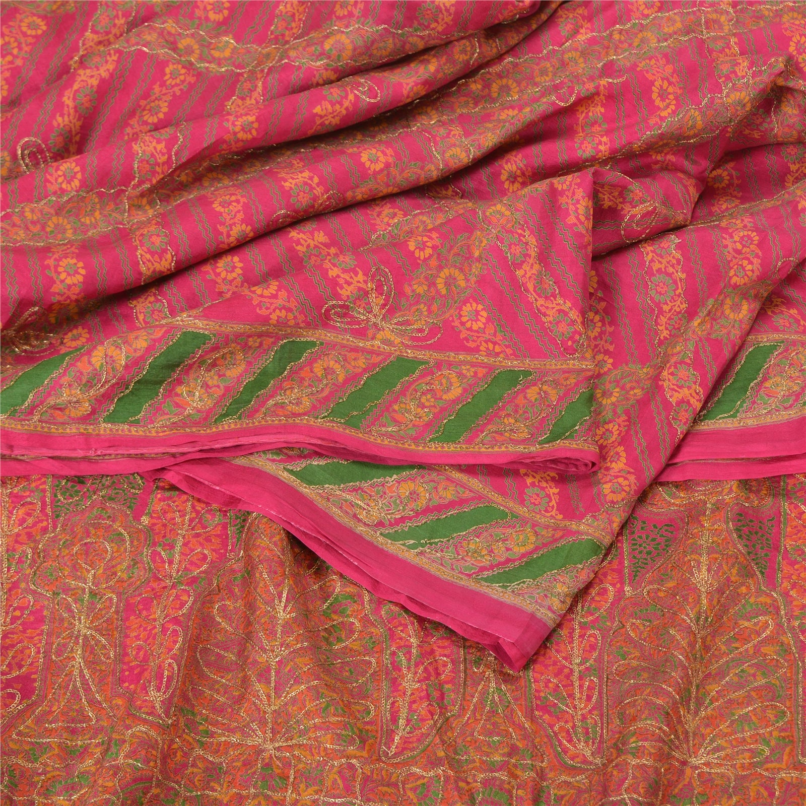 Sanskriti Vintage Pink Sarees 100% Pure Silk Hand Embroidered Sari Craft Sustainable Fabric