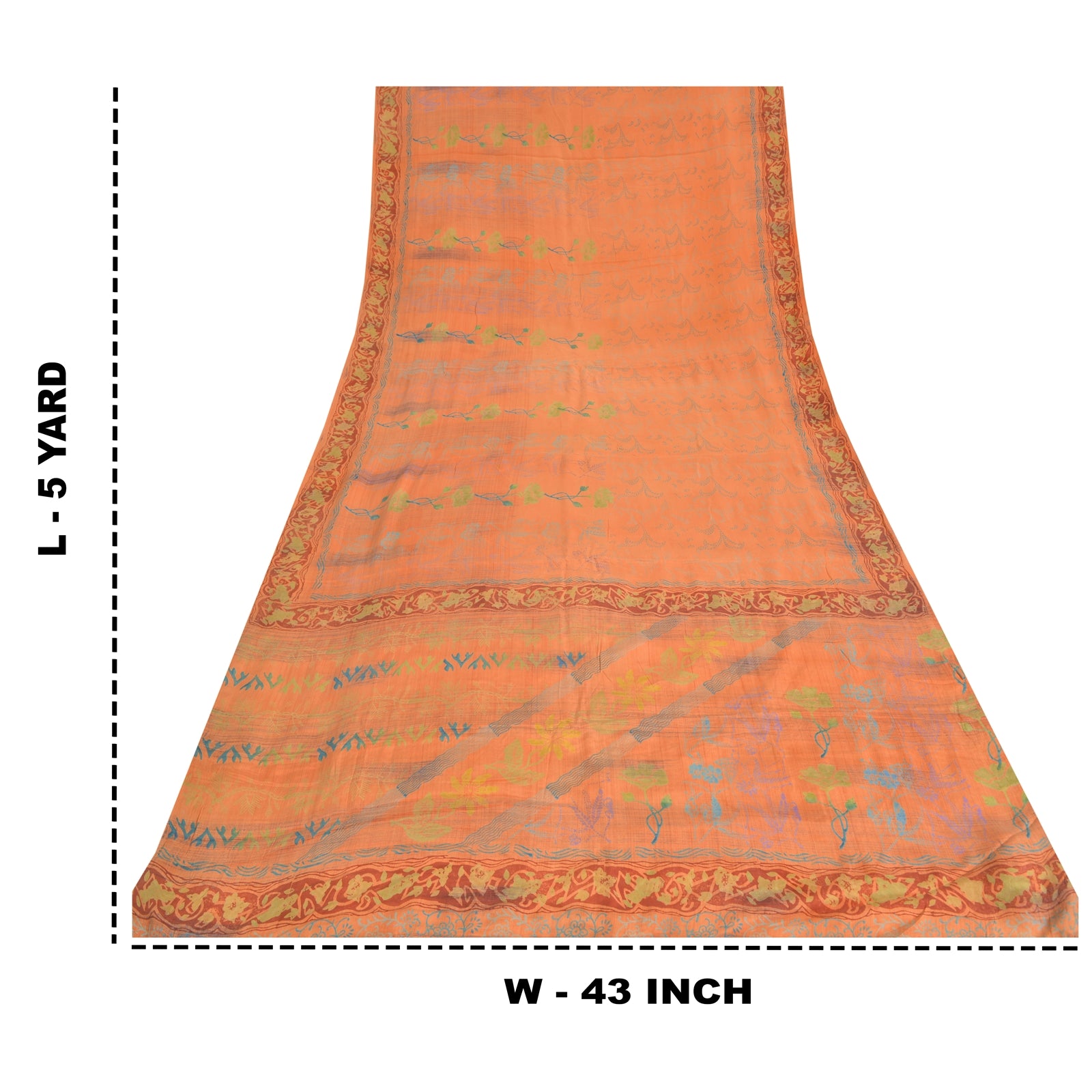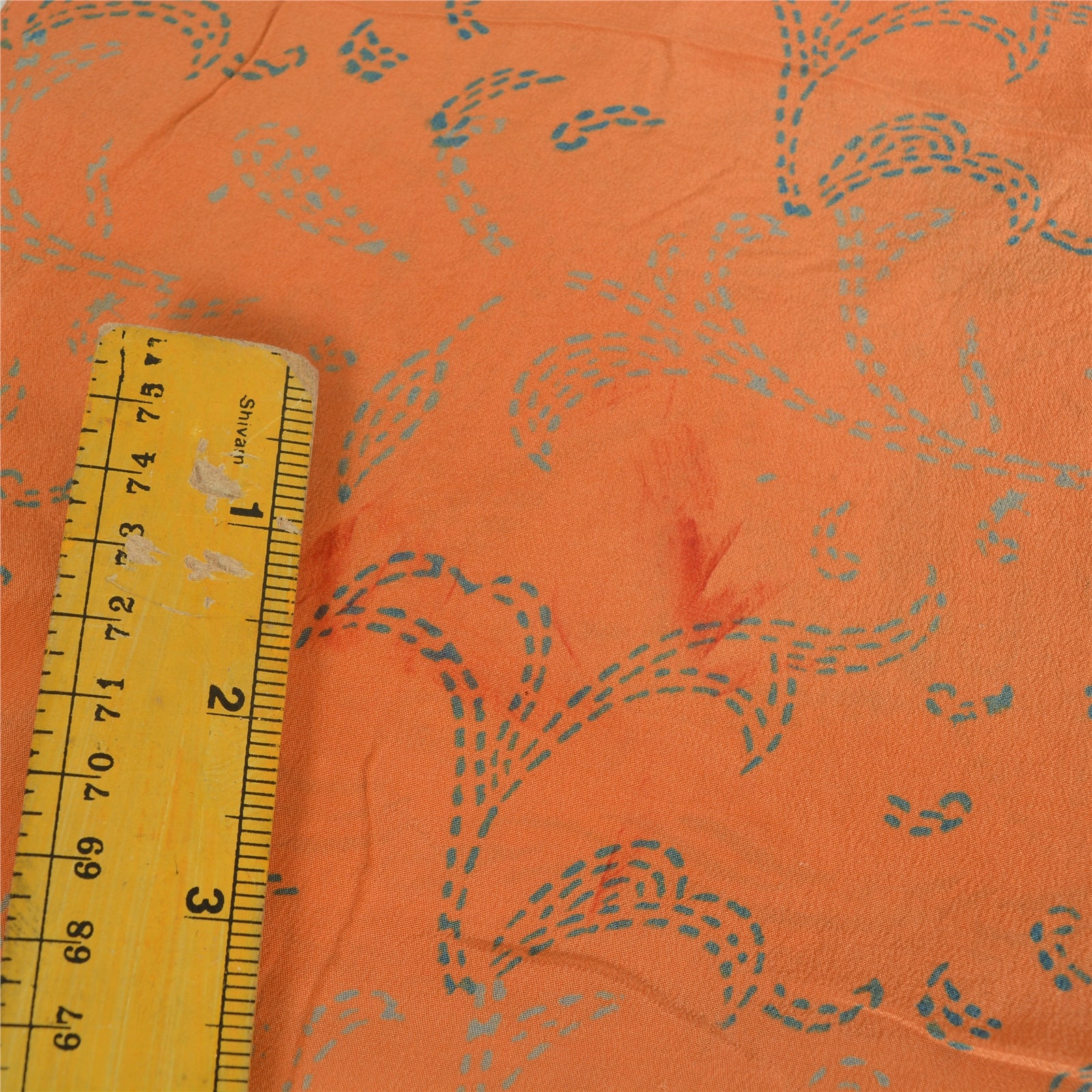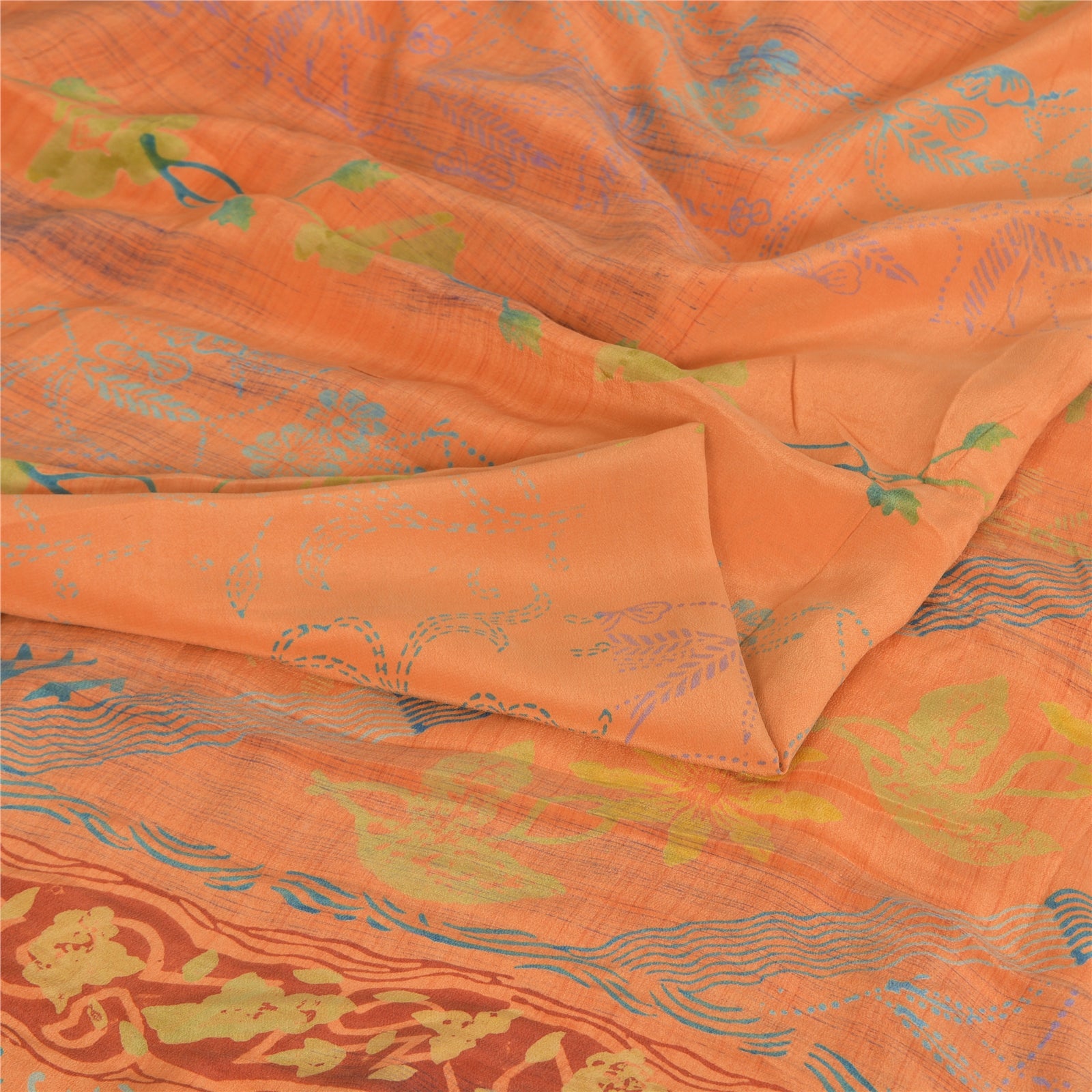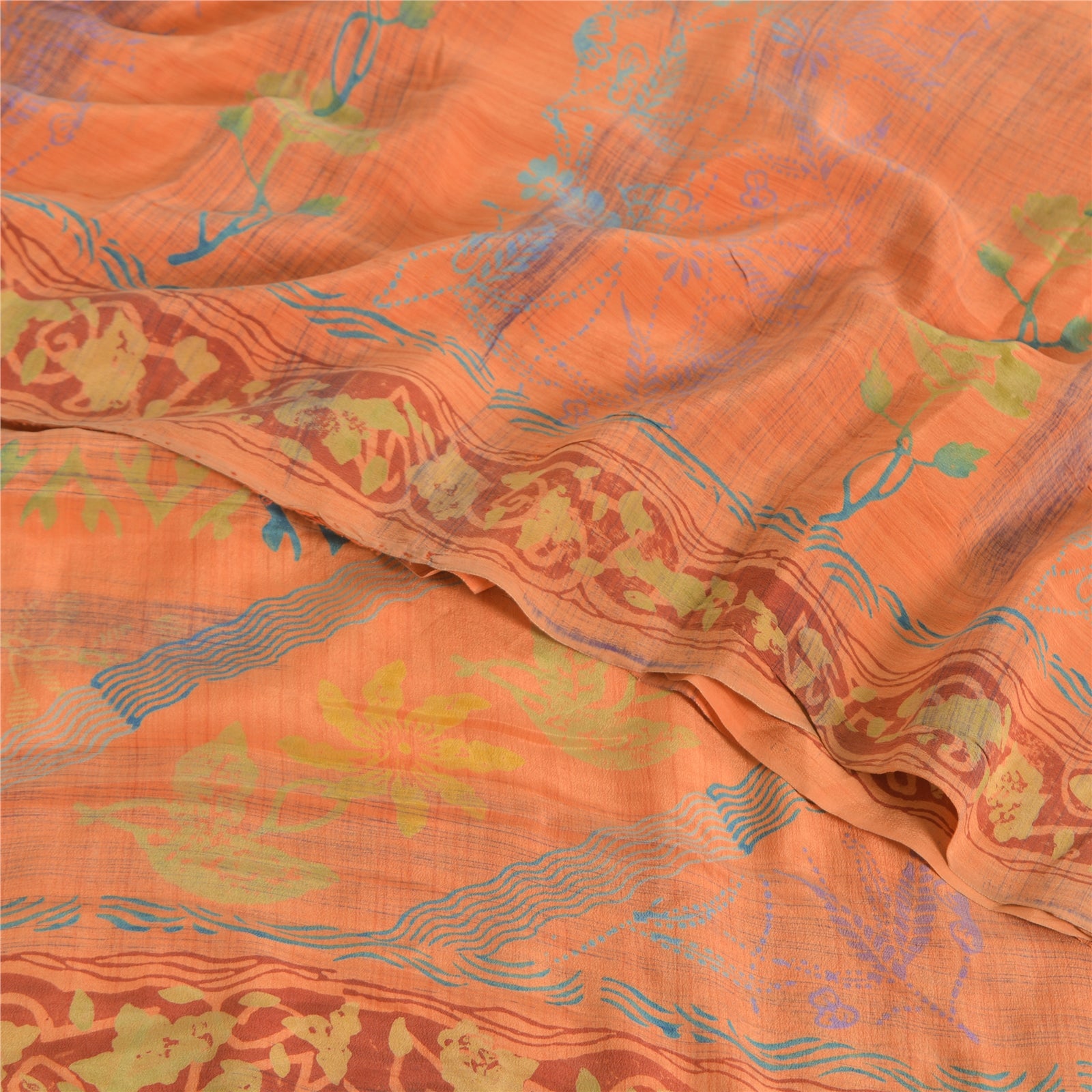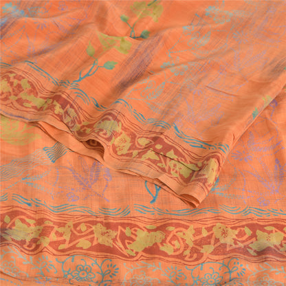Sanskriti Vintage Printed 100% Pure Crepe Silk Sarees Peach Sari Craft Sustainable Fabric