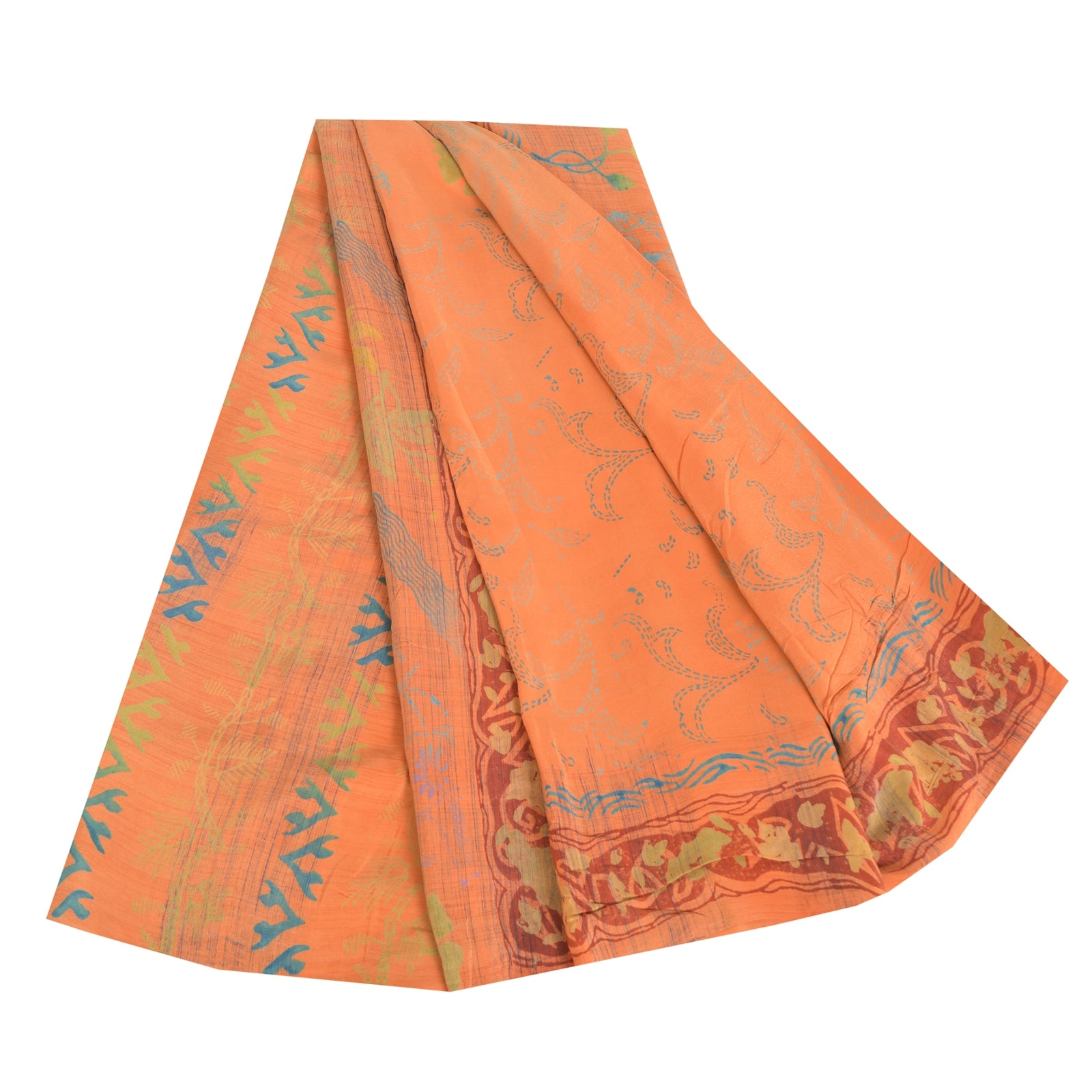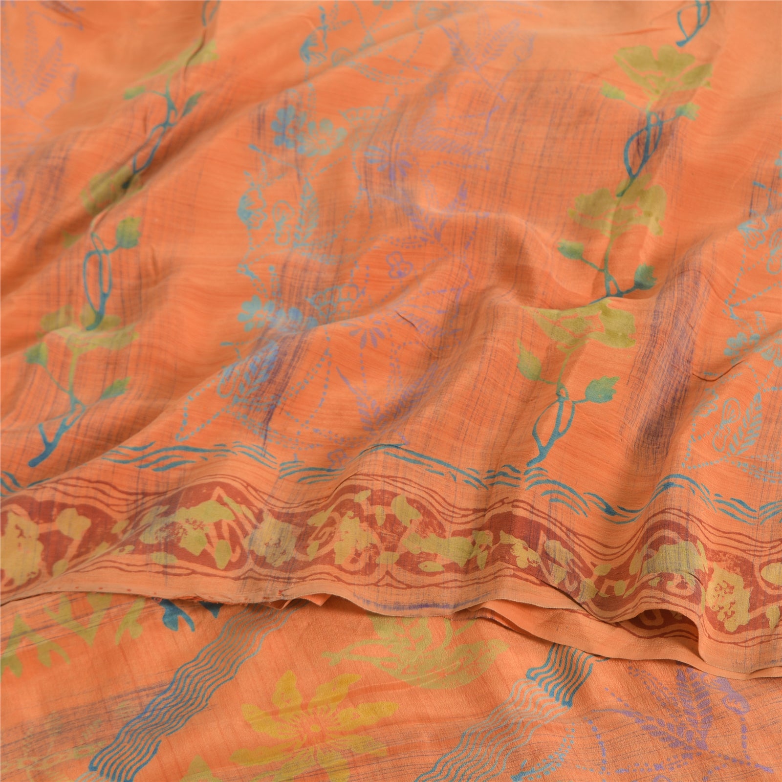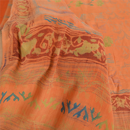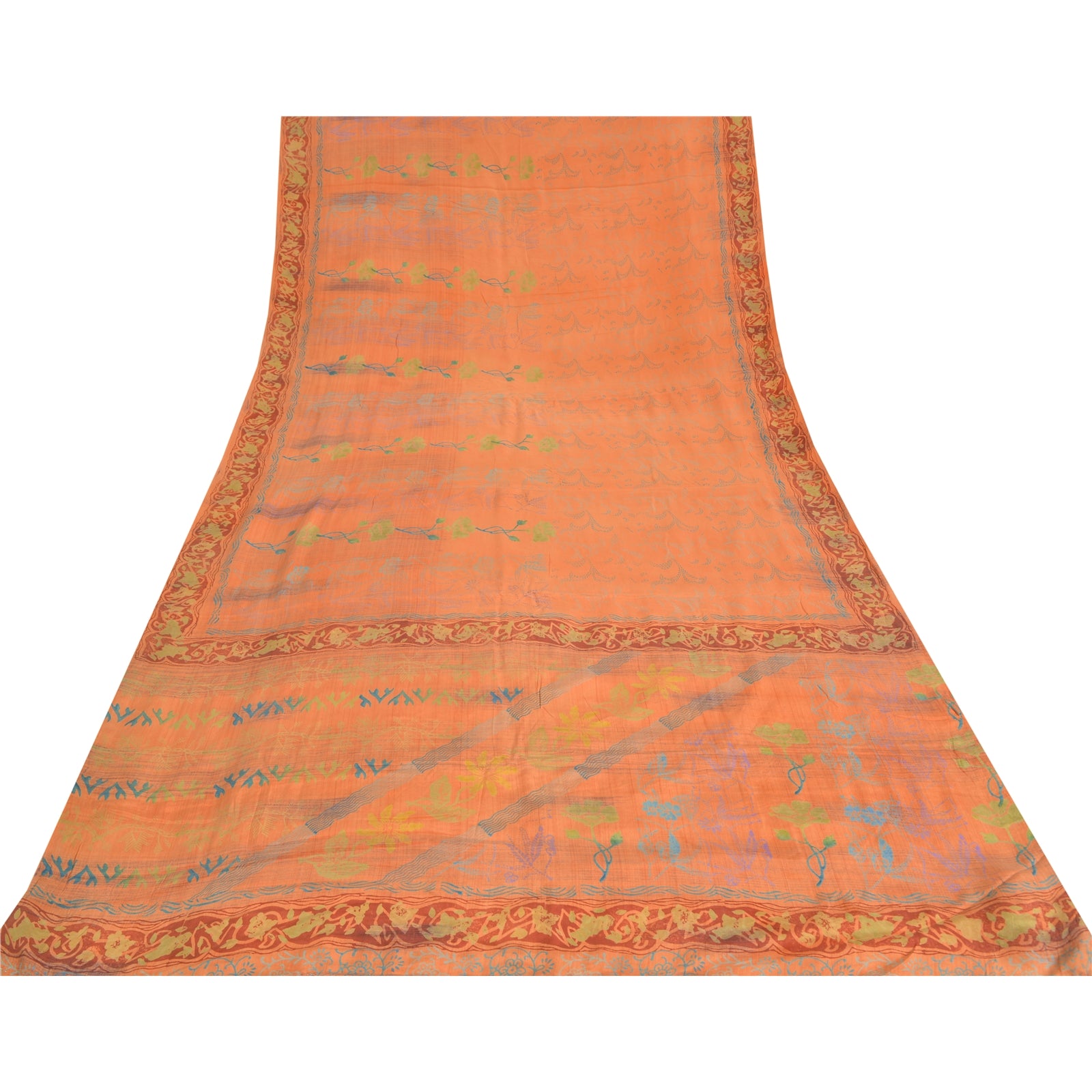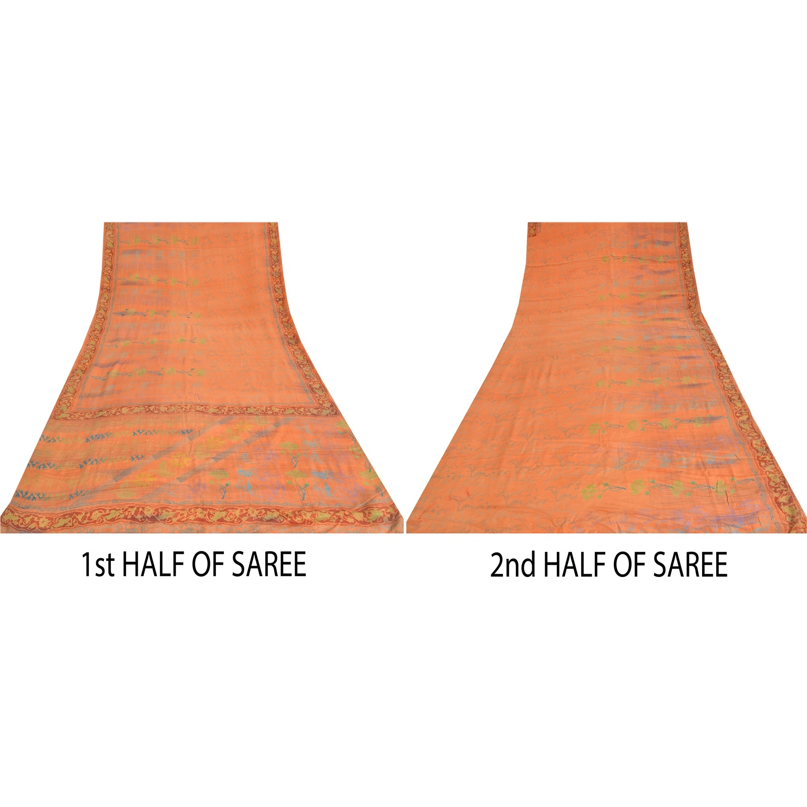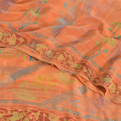 Sanskriti Vintage Printed 100% Pure Crepe Silk Sarees Peach Sari Craft Sustainable Fabric