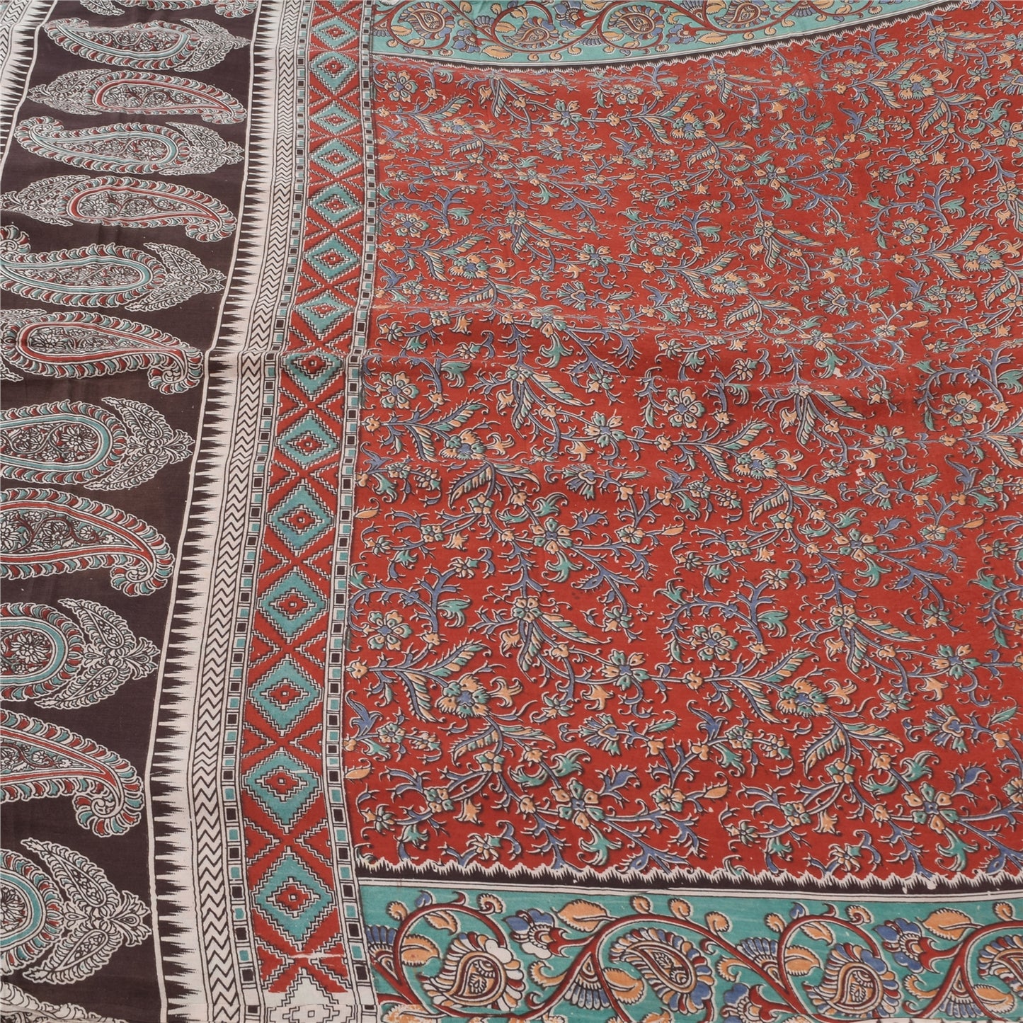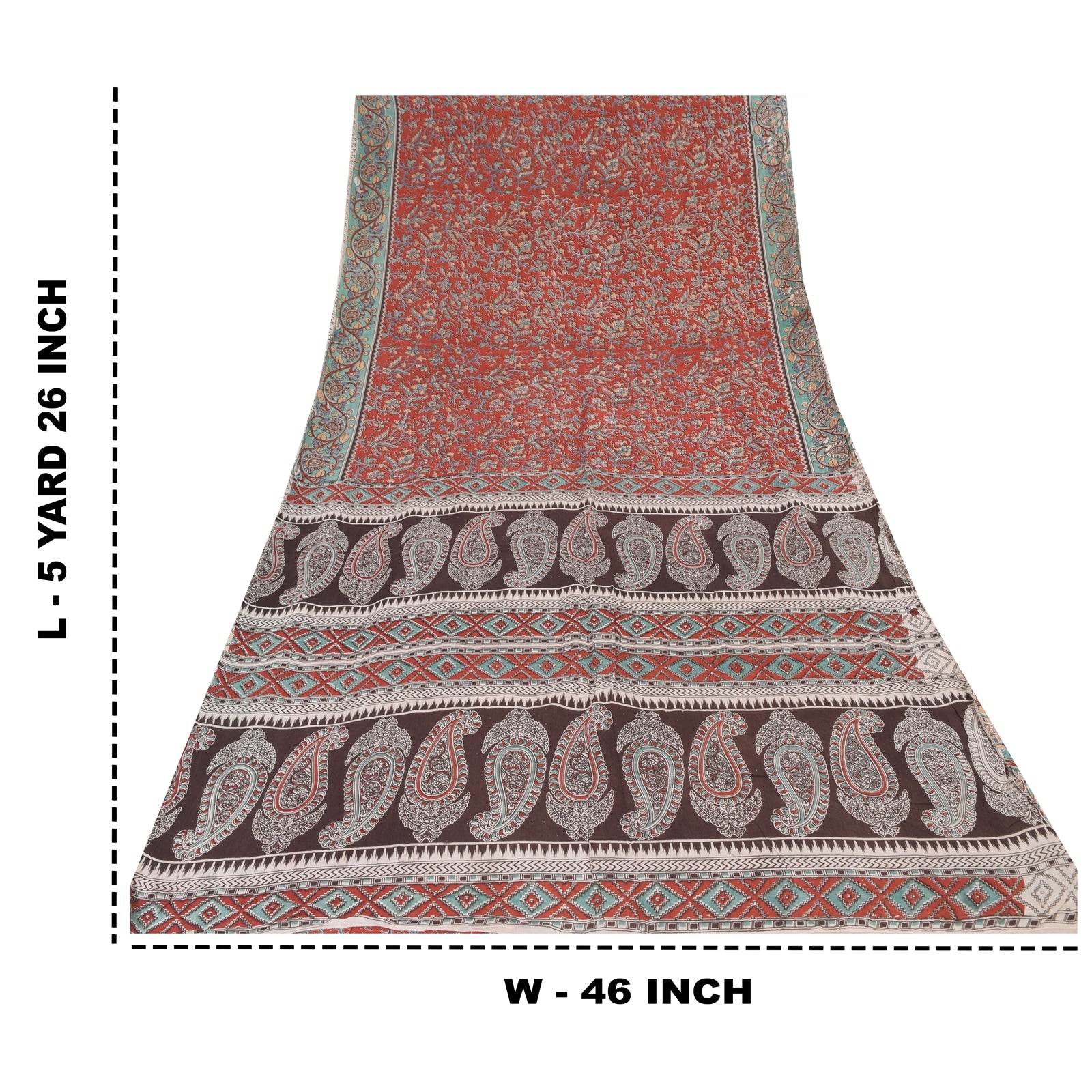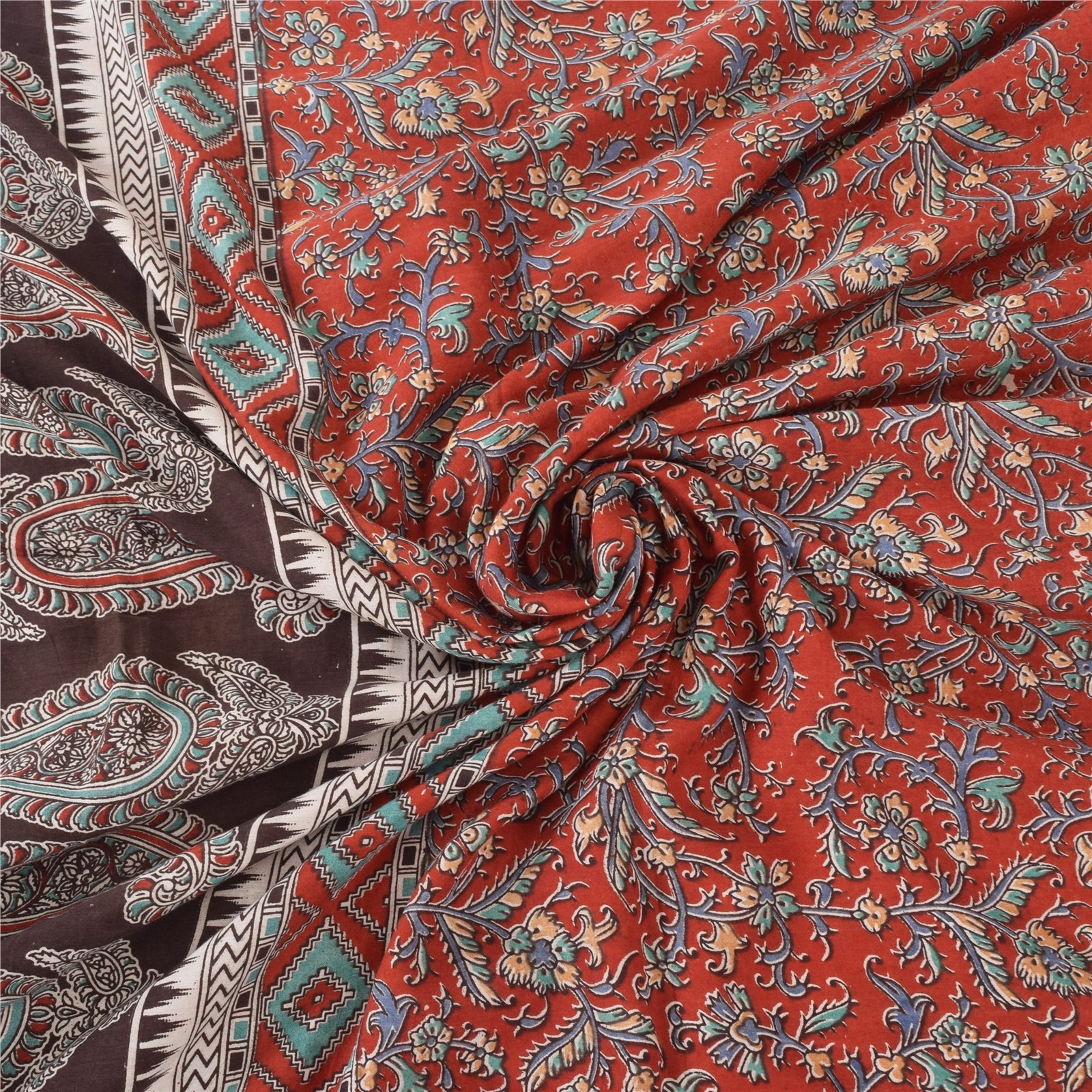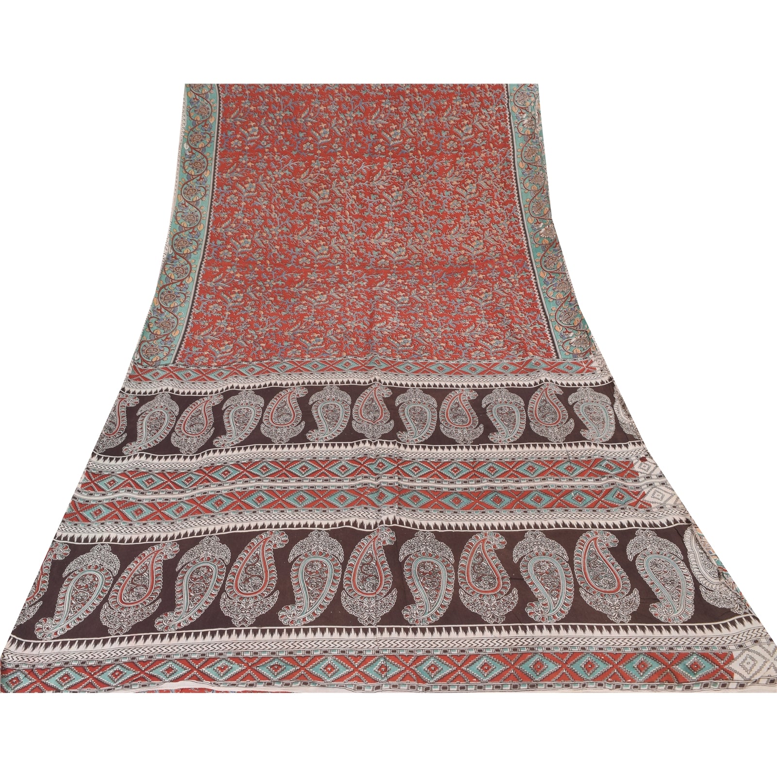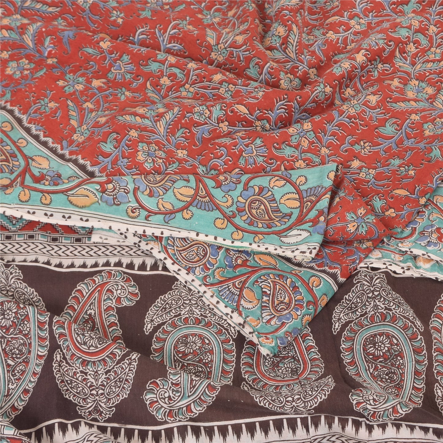 THE ITEM COLOR OR SHADE MAY BE DARKER OR LIGHTER THAN THE PICTURE.' An Awesome Sari In 100% Pure Cotton Red/Brown colored Woven Sari/Sustainable Fabric. Pallu & Border Features floral & paisley design embellished with multi color printed work You Can See Center Portion Of The Sari Has Similar Work With Floral Design This unique vintage saree can be used for various crafting ideas for example design a dress, use it as a throw, as window dressing, upholstery, table linen and much more. Let your creative juices flow and use this decorated Sustainable Fabric in multiple fashion Shipping note: International buyers please note: Import duties, taxes, and charges are not included in the item price or postage cost. These charges are the buyer's responsibility. Please check with your country's customs office to determine what these additional costs will be prior to bidding or buying. Buyer will pay custom duty/tax. It is calculated and charged differently by every country. As a seller I do not have any control over it. VAT or sales tax is calculated by the platform at the time of checkout. Customs charge is payable at the time of delivery. SKU: PS-64103