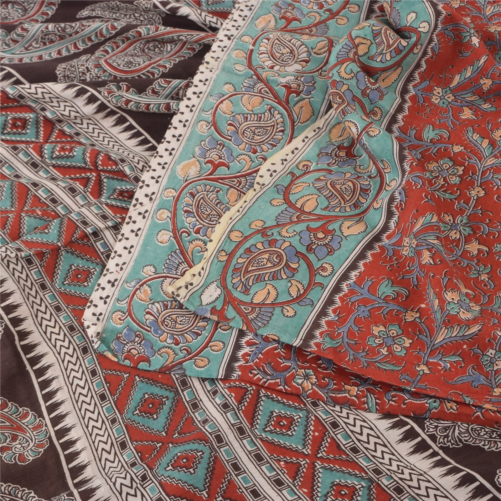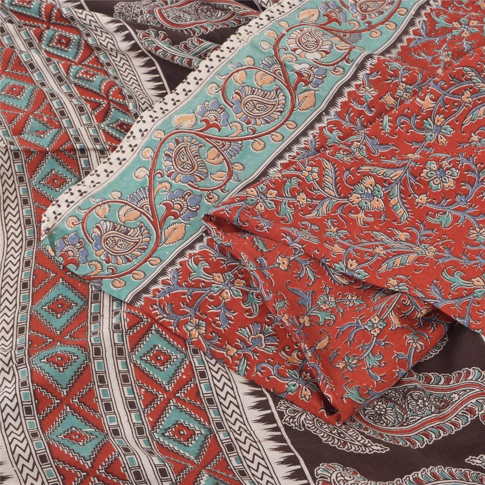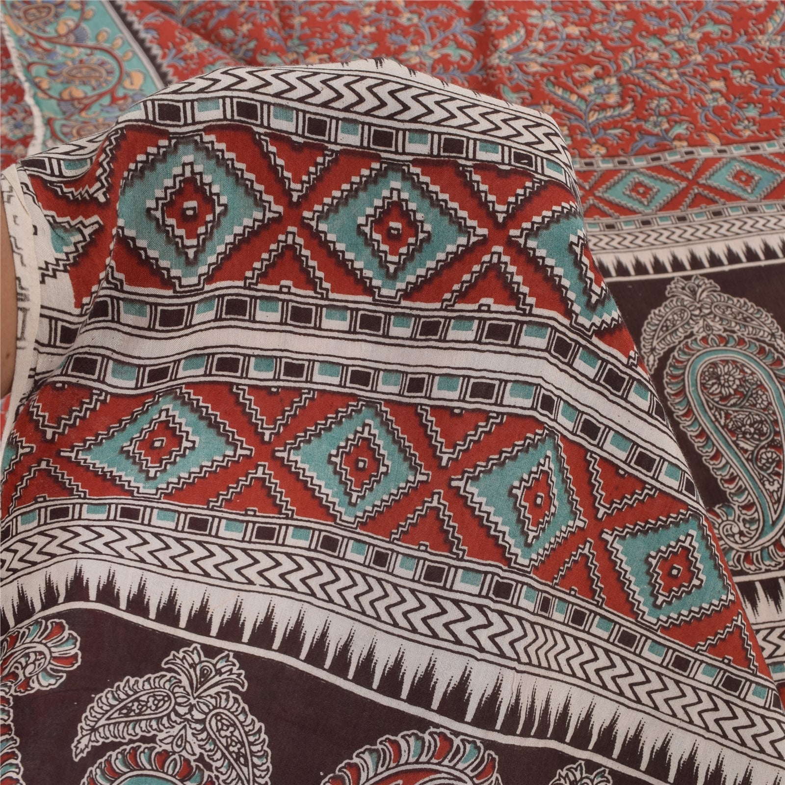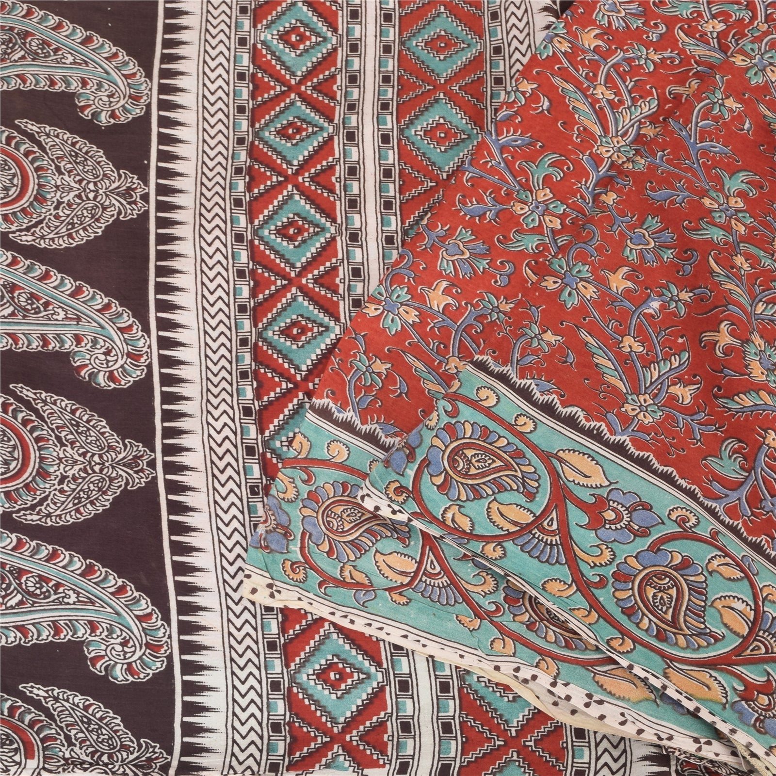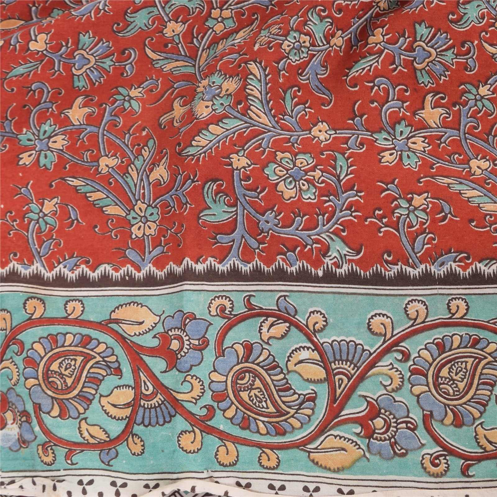 THE ITEM COLOR OR SHADE MAY BE DARKER OR LIGHTER THAN THE PICTURE.' An Awesome Sari In 100% Pure Cotton Red/Brown colored Woven Sari/Sustainable Fabric. Pallu & Border Features floral & paisley design embellished with multi color printed work You Can See Center Portion Of The Sari Has Similar Work With Floral Design This unique vintage saree can be used for various crafting ideas for example design a dress, use it as a throw, as window dressing, upholstery, table linen and much more. Let your creative juices flow and use this decorated Sustainable Fabric in multiple fashion Shipping note: International buyers please note: Import duties, taxes, and charges are not included in the item price or postage cost. These charges are the buyer's responsibility. Please check with your country's customs office to determine what these additional costs will be prior to bidding or buying. Buyer will pay custom duty/tax. It is calculated and charged differently by every country. As a seller I do not have any control over it. VAT or sales tax is calculated by the platform at the time of checkout. Customs charge is payable at the time of delivery. SKU: PS-64103