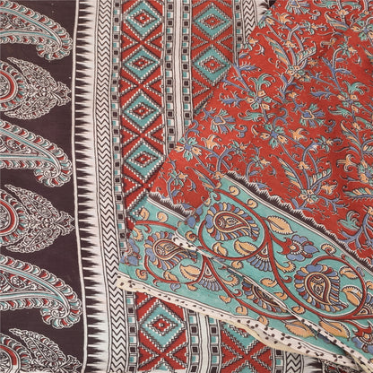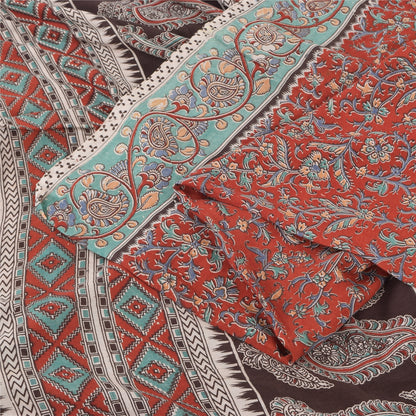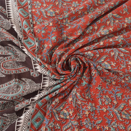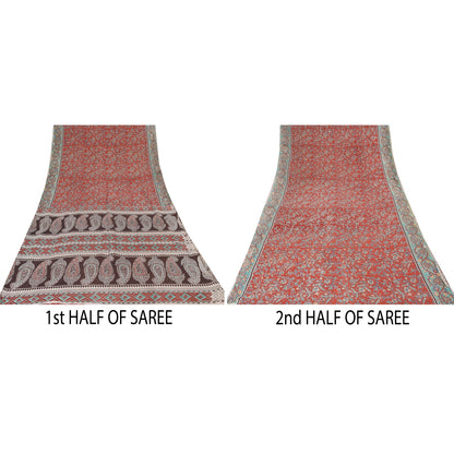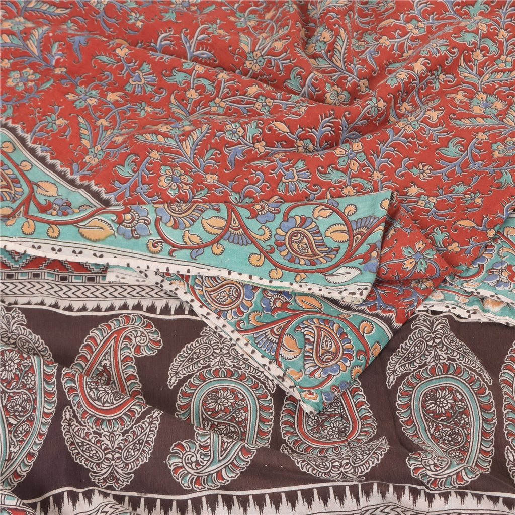 Sanskriti Vintage Red/Brown Sarees Pure Cotton Printed Premium Sari Craft Sustainable Fabric