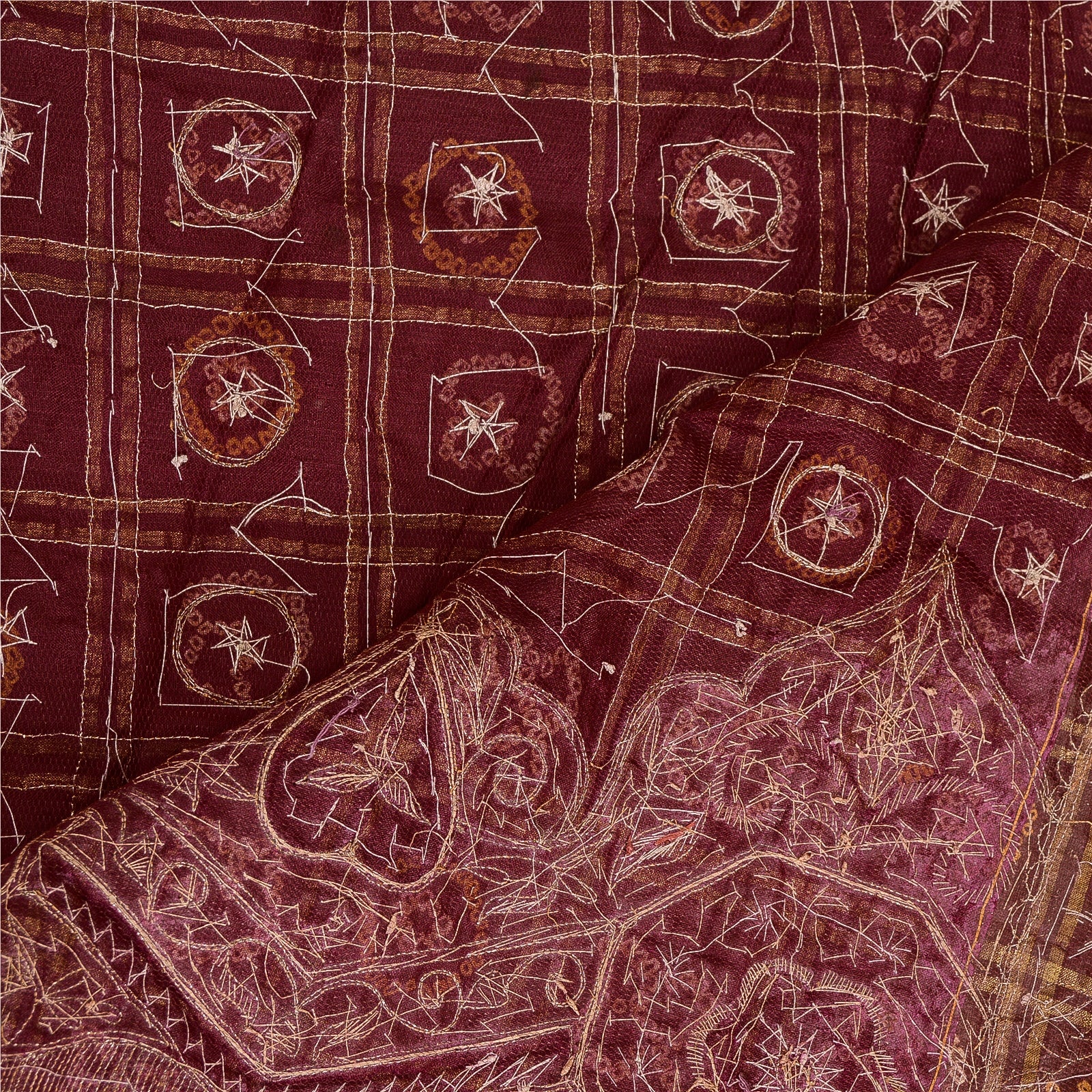 ๐ธ Exquisite Hand Embroidered Bandhani Dupatta โ Pure Cotton in Dark Red ๐ธ