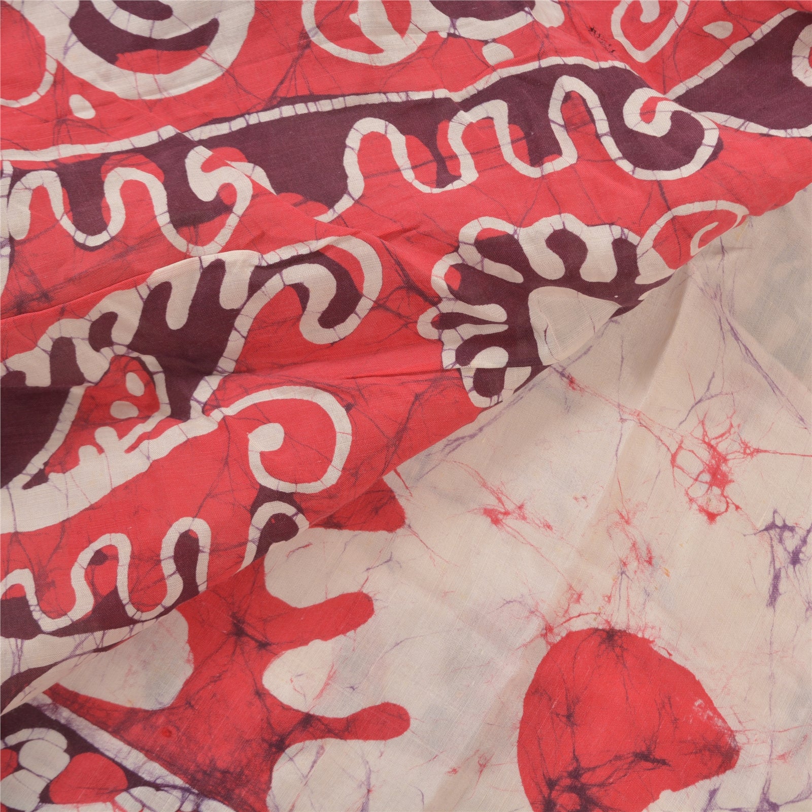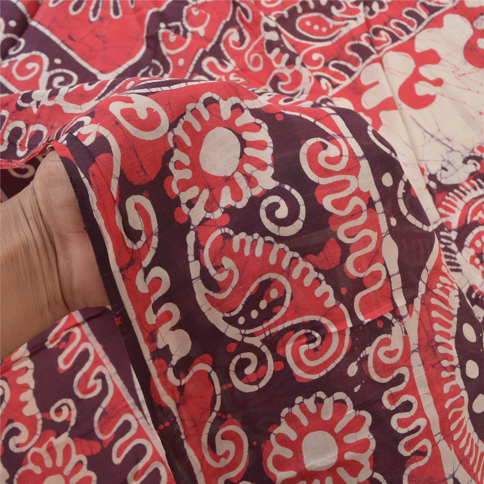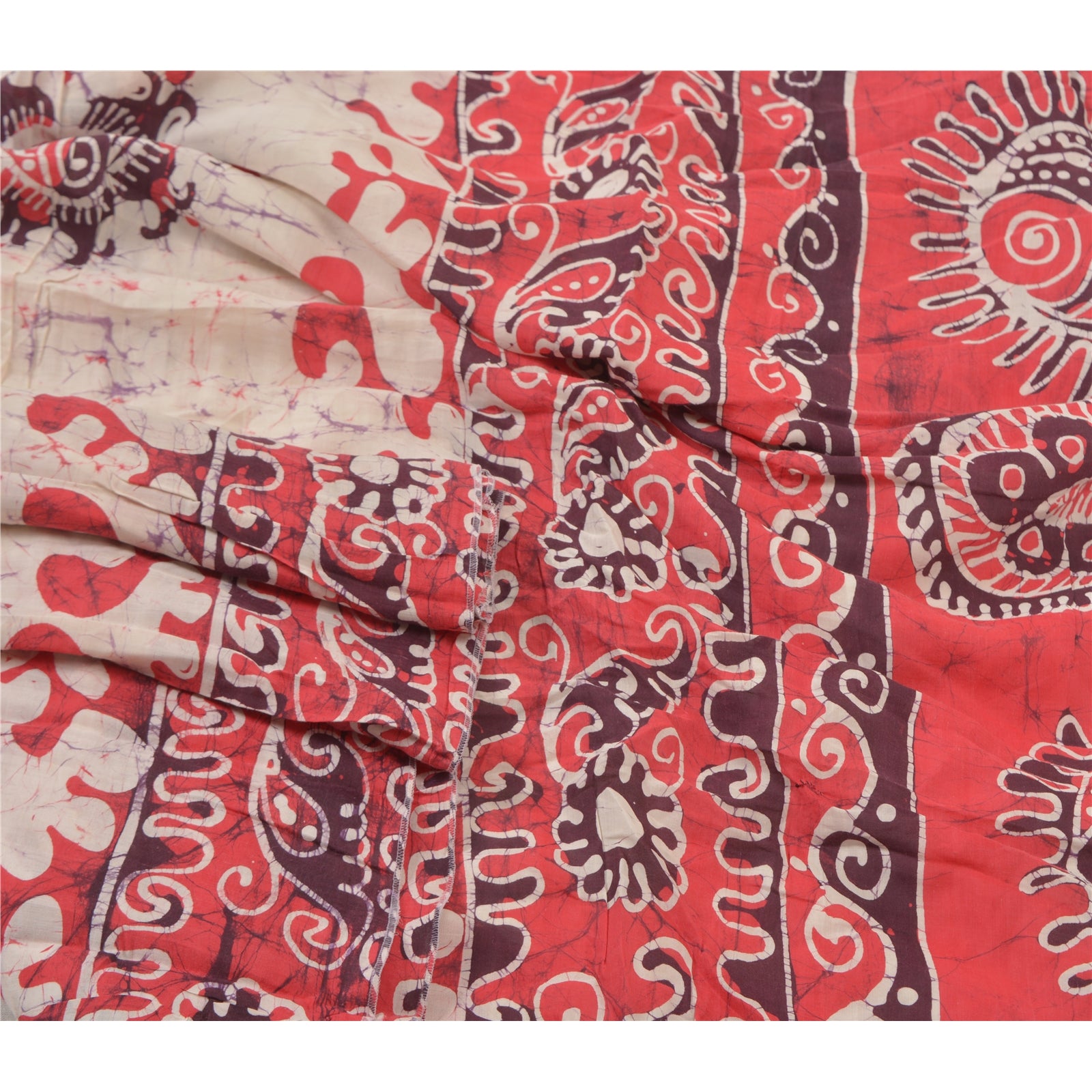 Sanskriti Vintage Red Heavy Sarees 100% Pure Cotton Batik Work Sari Sustainable Fabric