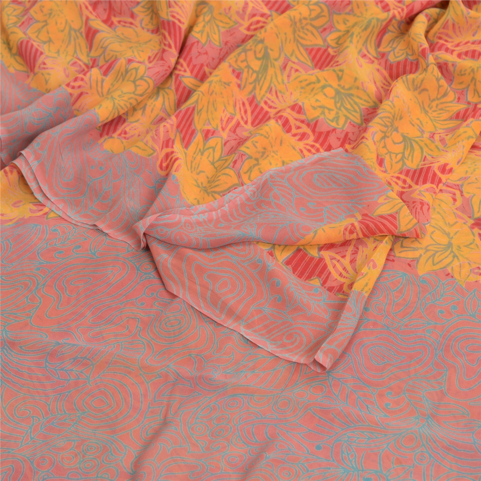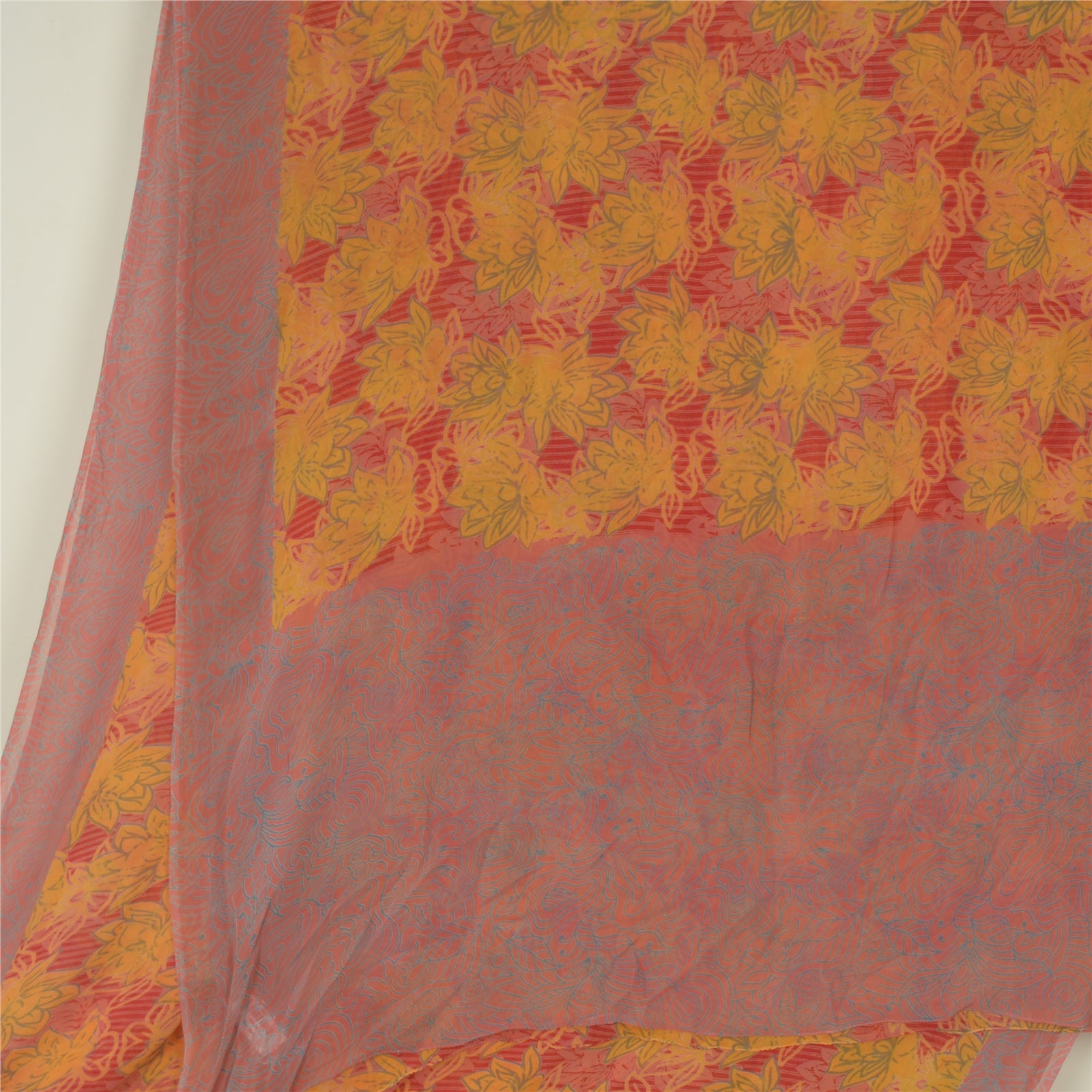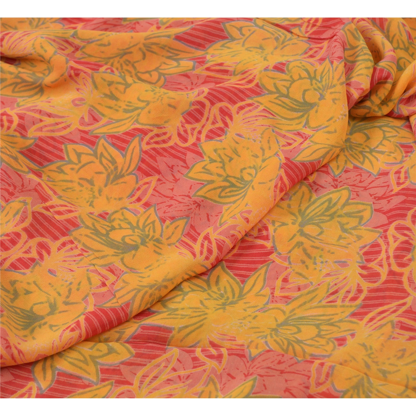 'THE ITEM COLOR OR SHADE MAY BE DARKER OR LIGHTER THAN THE PICTURE.' • Beautiful red & yellow colored printed pure georgette silk saree . • Pallu & Border has printed floral design . • Floral design in center part of sari . This unique vintage saree can be used for various crafting ideas even if you don't want to use it as a sari. Design a dress, use it as a throw, as window dressing, beachwear, sarongs, table linen and much more. Let your creative juices flow and use this decorated fabric in multiple fashion. 'International buyers please note: Import duties, taxes, and charges are not included in the item price or postage cost. These charges are the buyer's responsibility. Please check with your country's customs office to determine what these additional costs will be prior to bidding or buying. Buyer will pay custom duty/tax. It is calculated and charged differently by every country. As a seller I do not have any control over it. VAT or sales tax is calculated by the platform at the time of checkout. Customs charge is payable at the time of delivery.' PRG-2046