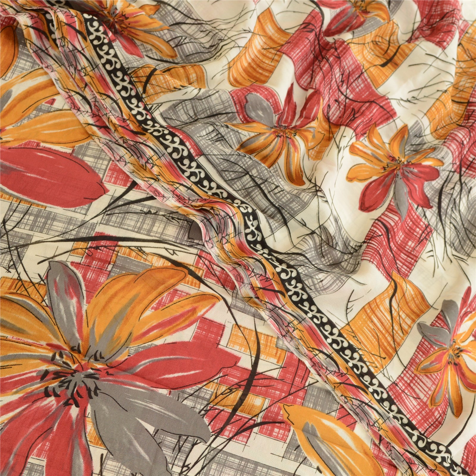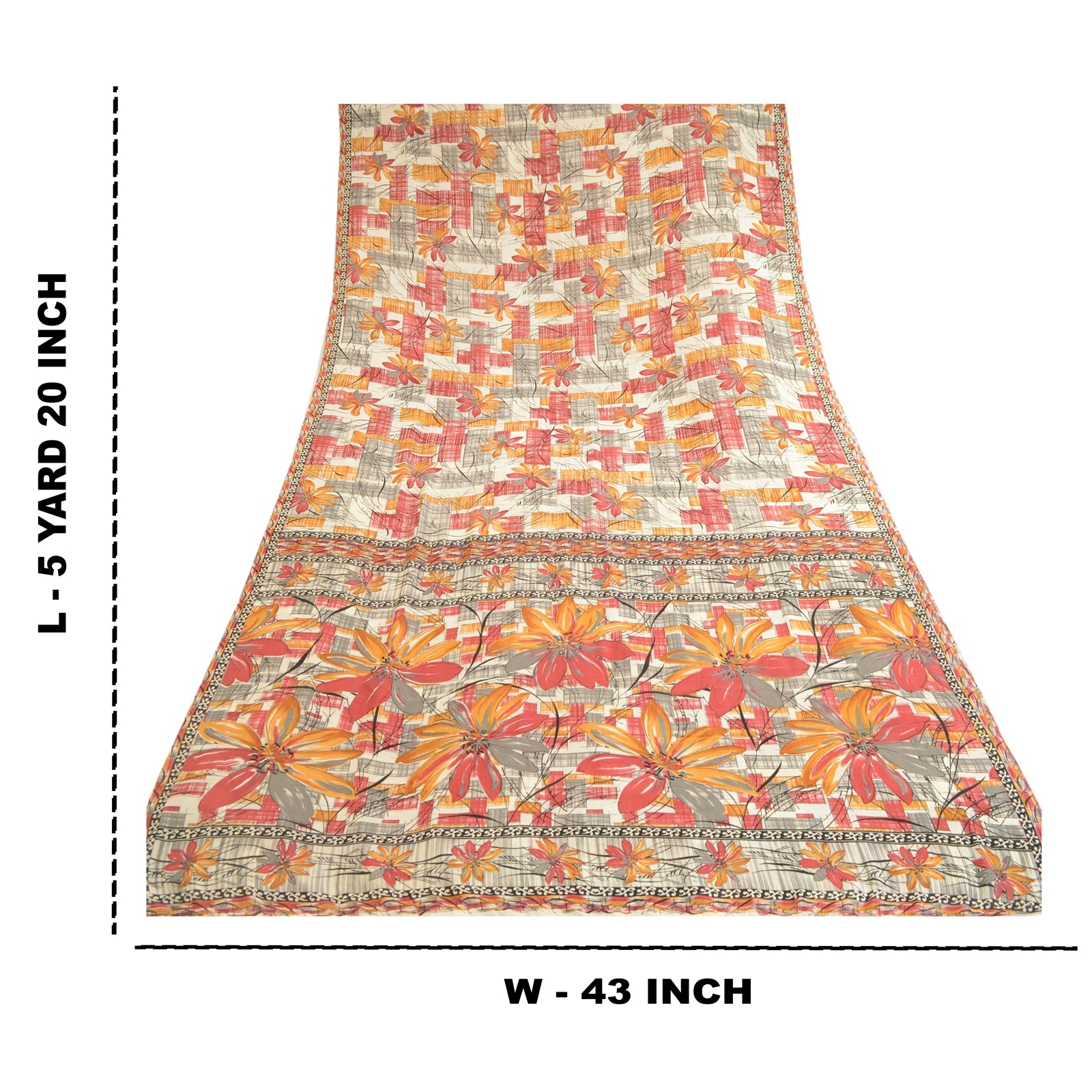 Sanskriti Vintage Red Sarees Indian Mose Crepe Printed Sari Soft Craft Sustainable Fabric