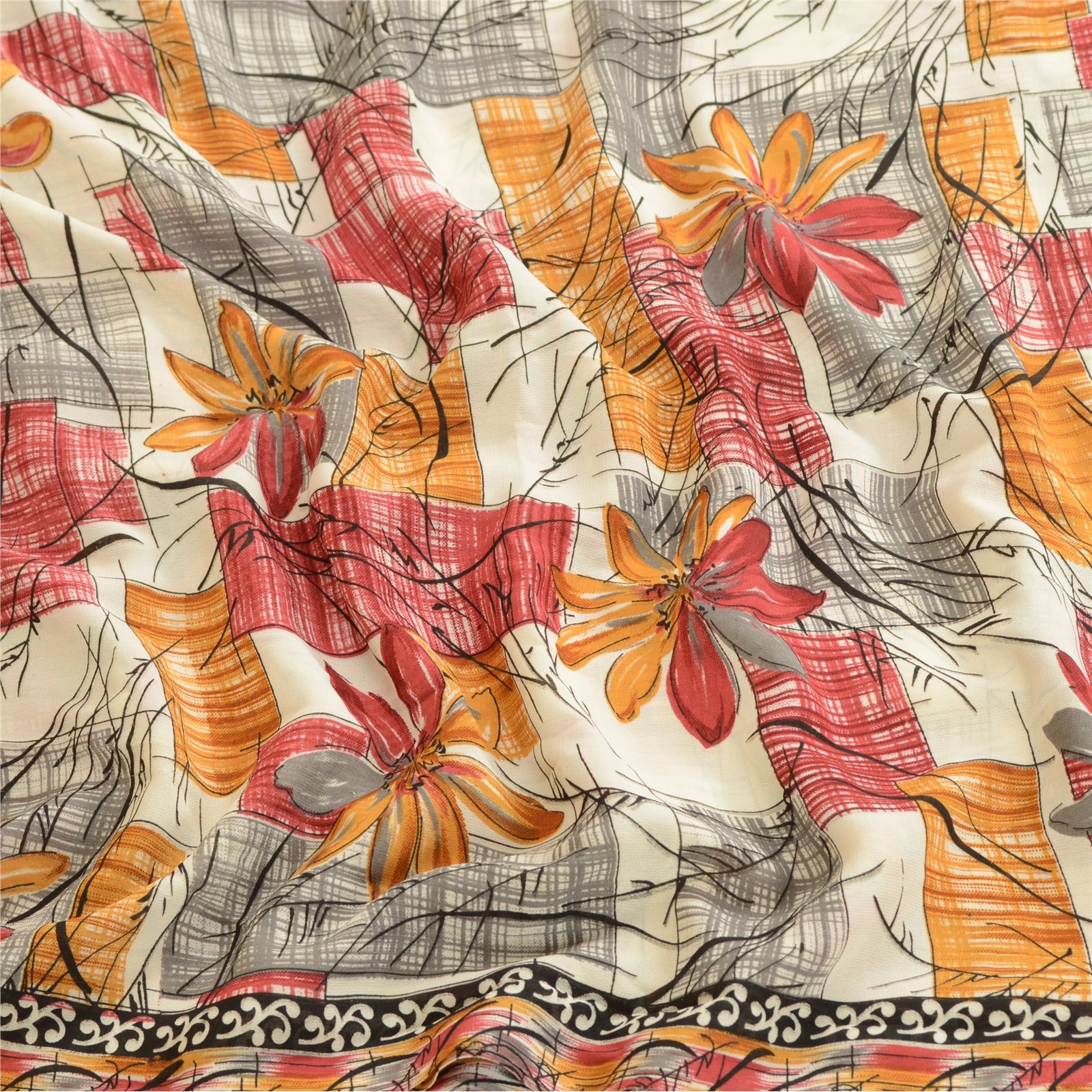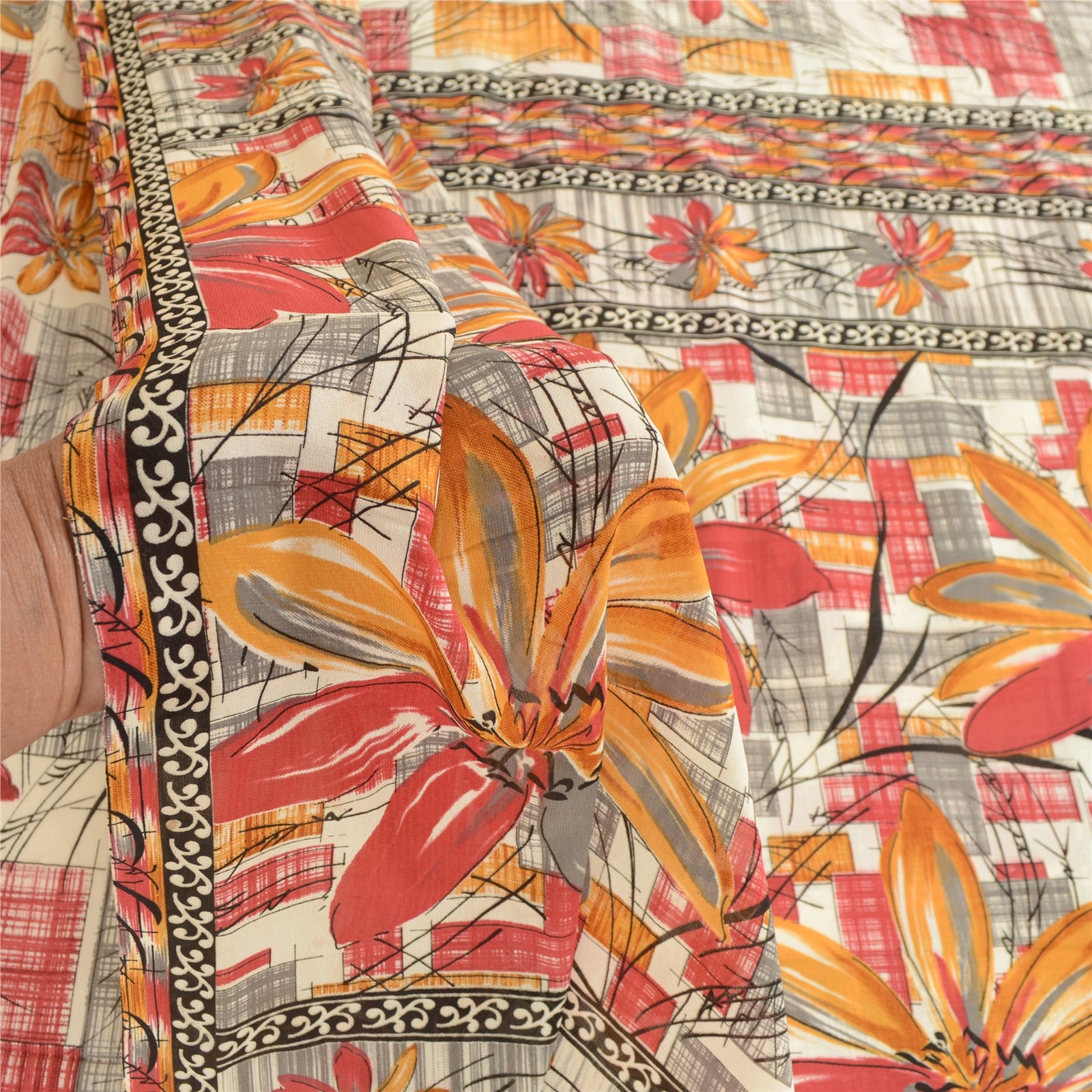 Beautiful red & gray colored printed moss crepe saree. Pallu & Border has printed floral & geometric design. Similar design in center part of sari. Moss Crepe- This sari is polyester but it feels like crepe silk.What is special about this saree?Very soft & smooth moss crepe Sustainable Fabric with attractive colorful print pattern is beauty of the saree.This unique vintage saree can be used for various crafting ideas even if you don't want to use it as a sari. Design a dress, use it as a throw, as window dressing, upholstery, sarongs, table linen and much more. Let your creative juices flow and use this decorated Sustainable Fabric in multiple fashion. Please note - Buyers from Australia are required to pay postage. Registered air mail to Australia is temporarily suspended due to the pandemic. Once it goes back to normal we'll revert to free shipping. For now, we are using Aramex and DHL to ship orders. These services are expensive but faster compared to regular mail. Thank you for your support. If you are buying in bulk we will refund whatever excess is left. Contact us after that purchase. For USA buyers - Single item ships via registered air mail, buy 1 more to get FedEx.