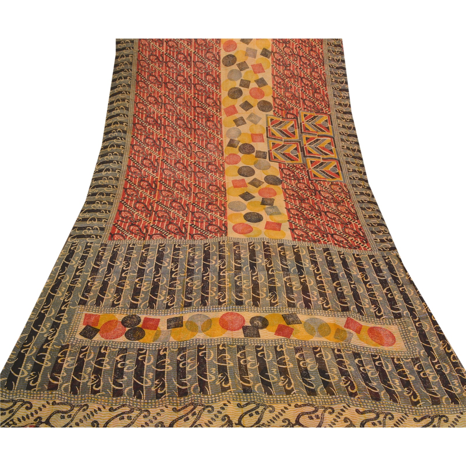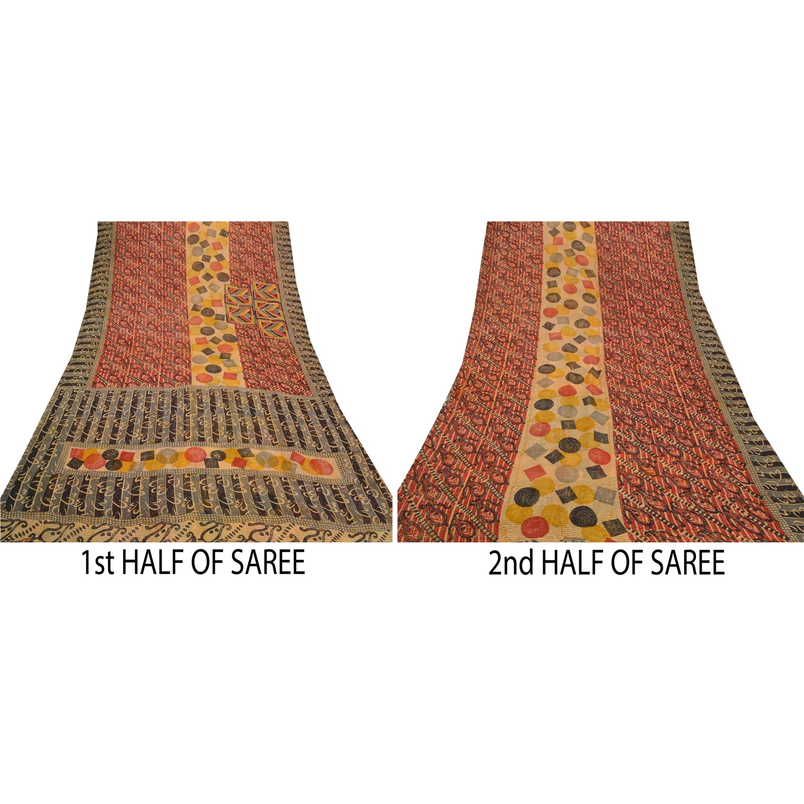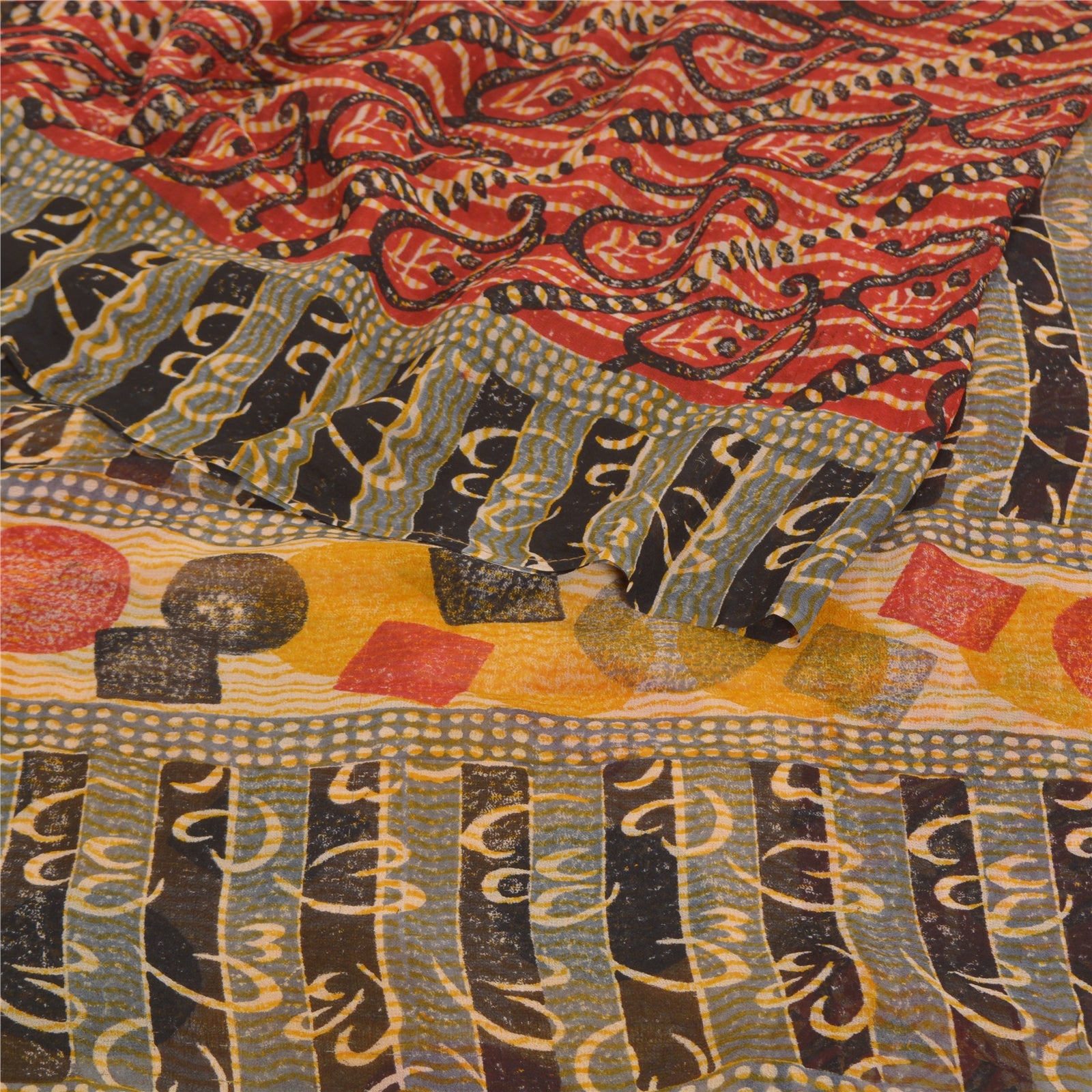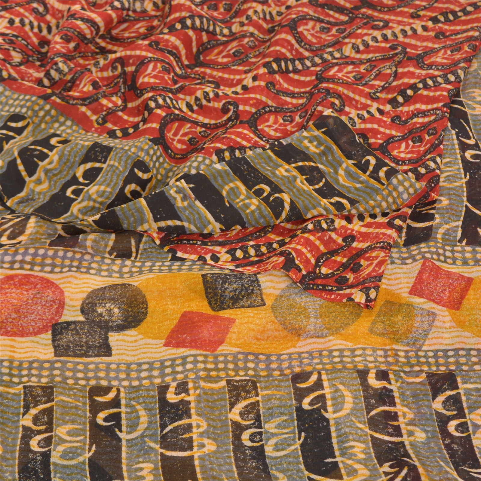 Sanskriti Vintage Red Sarees Pure Georgette Silk Printed Sari 5YD Craft Sustainable Fabric