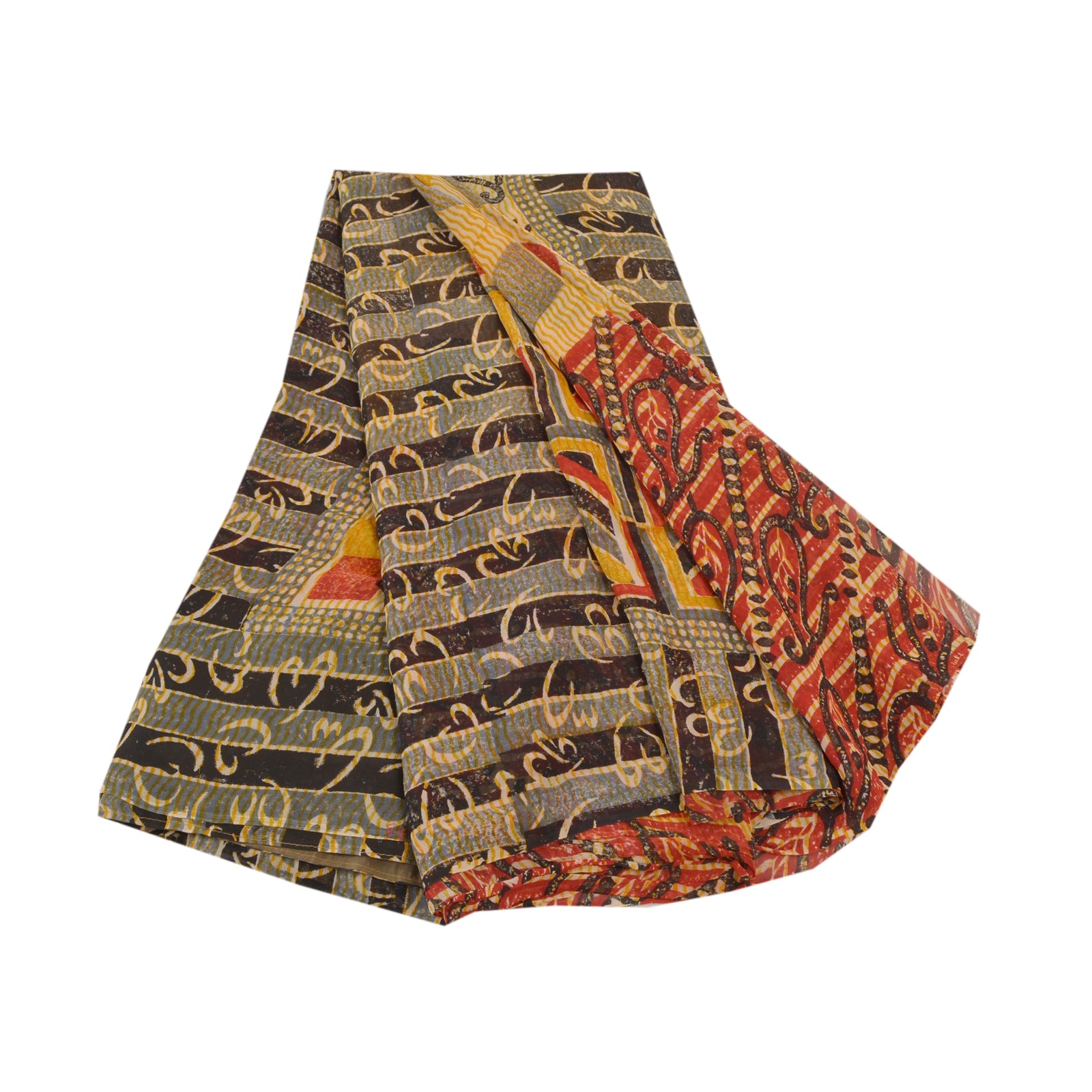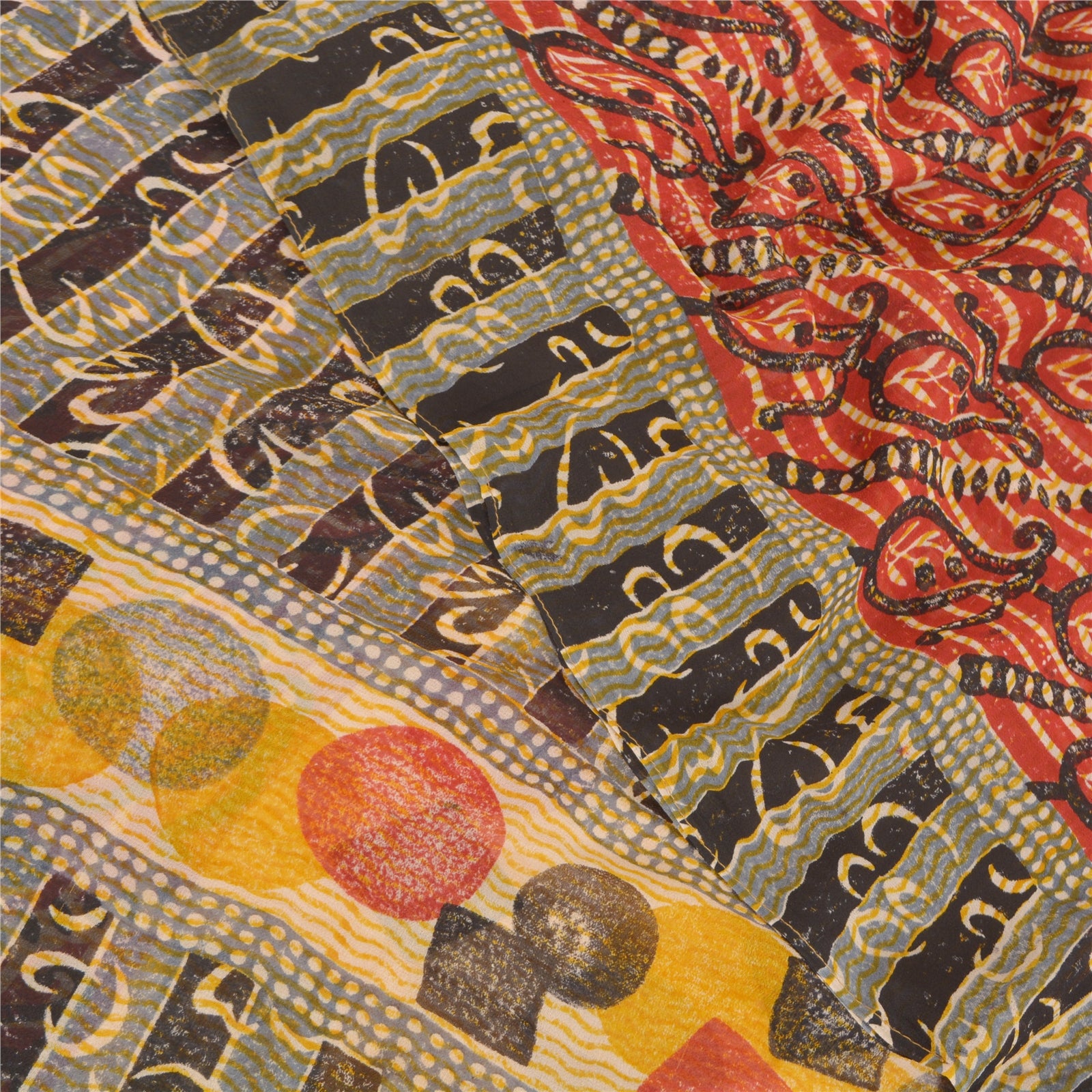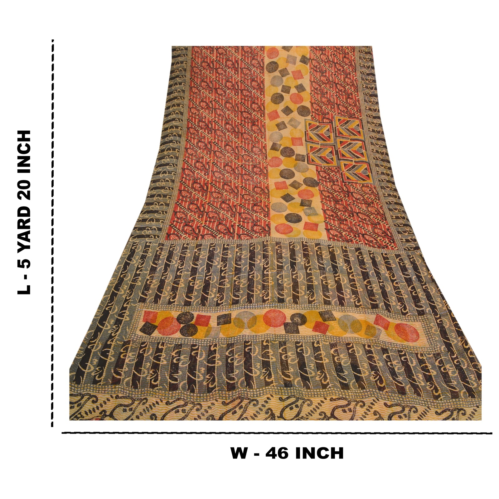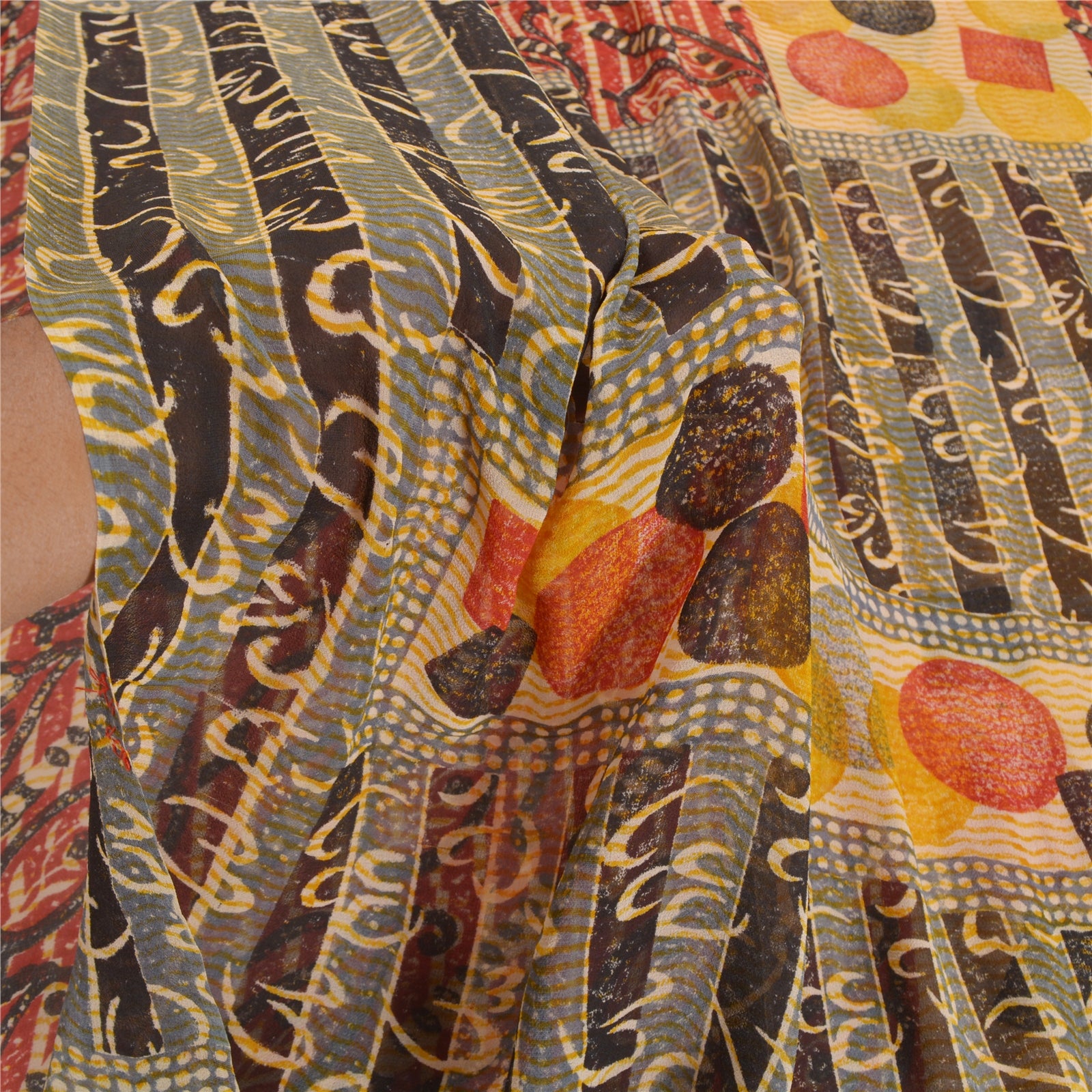 Sanskriti Vintage Red Sarees Pure Georgette Silk Printed Sari 5YD Craft Sustainable Fabric