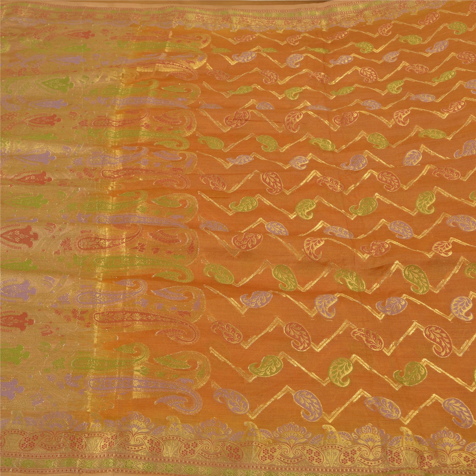 'THE ITEM COLOR OR SHADE MAY BE DARKER OR LIGHTER THAN THE PICTURE.' Beautiful shade of saffron colored pure silk woven sari. Pallu & border features multi color woven with shinning zari floral & paisley. The center of the saree has woven floral & paisley design. This saree can be used for various crafting ideas too. Use it for dress designing, as a throw, as window dressing, upholstery, table linen and much more. Let your creative juices flow. 'International buyers please note: Import duties, taxes, and charges are not included in the item price or postage cost. These charges are the buyer's responsibility. Please check with your country's customs office to determine what these additional costs will be prior to bidding or buying. Buyer will pay custom duty/tax. It is calculated and charged differently by every country. As a seller I do not have any control over it. VAT or sales tax is calculated by the platform at the time of checkout. Customs charge is payable at the time of delivery.'