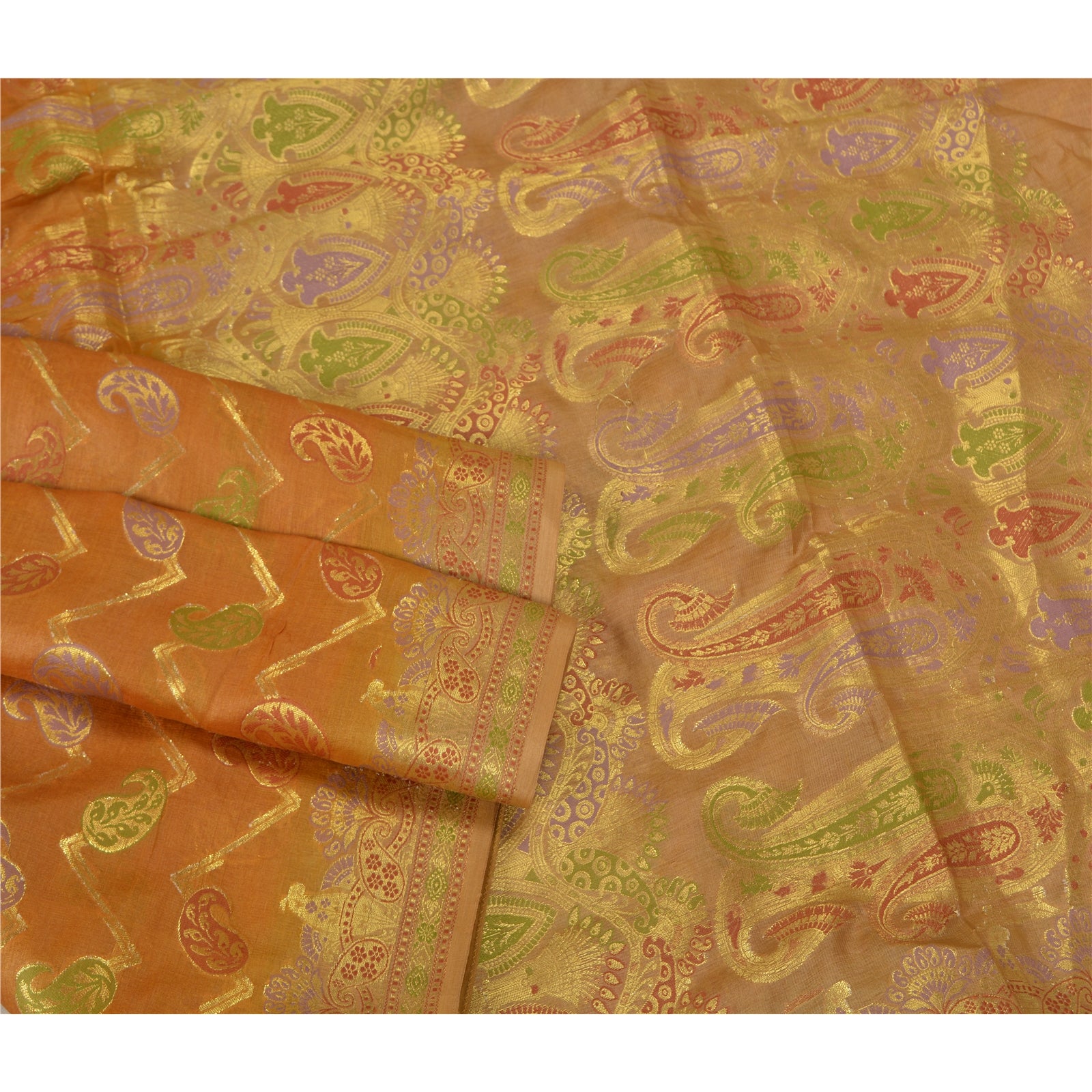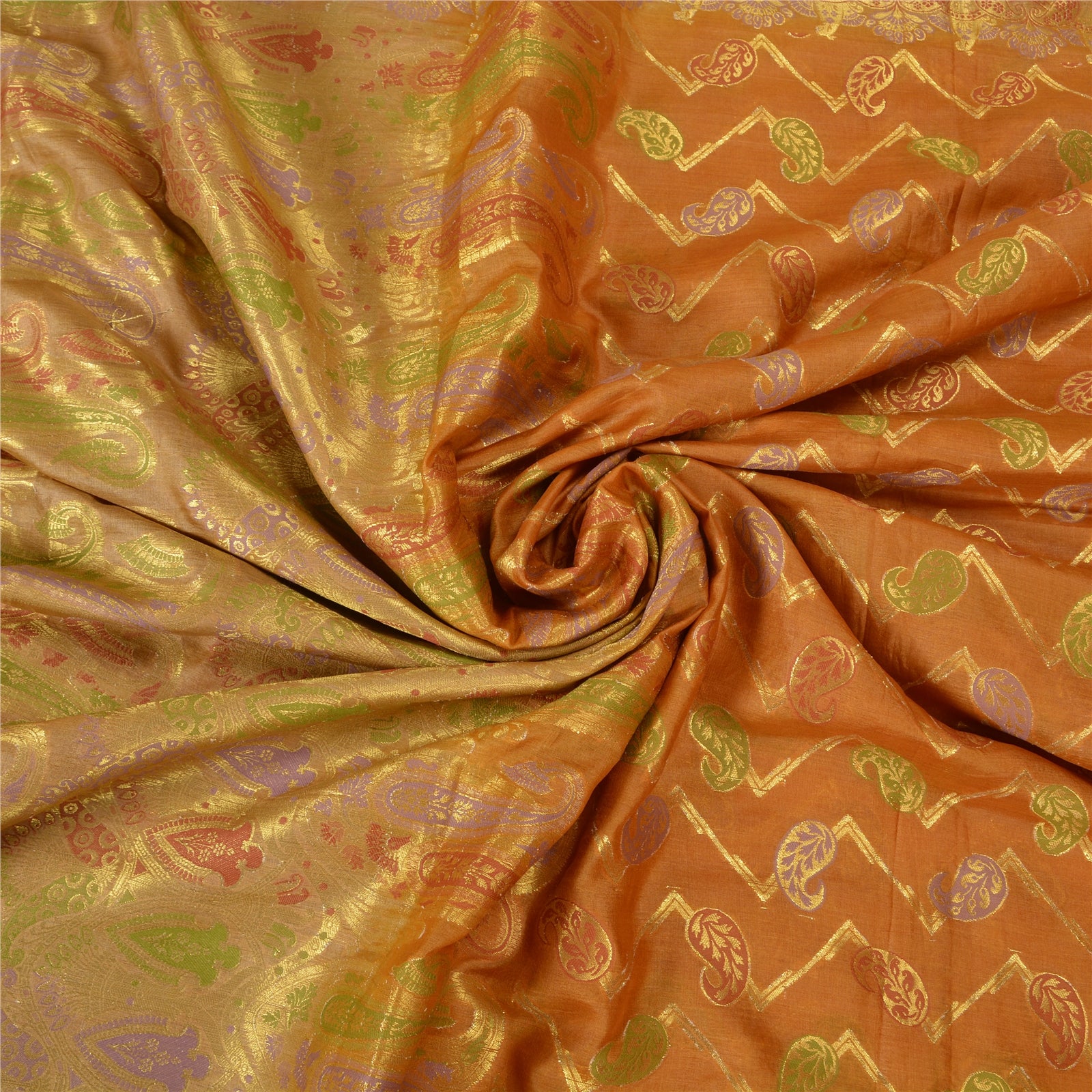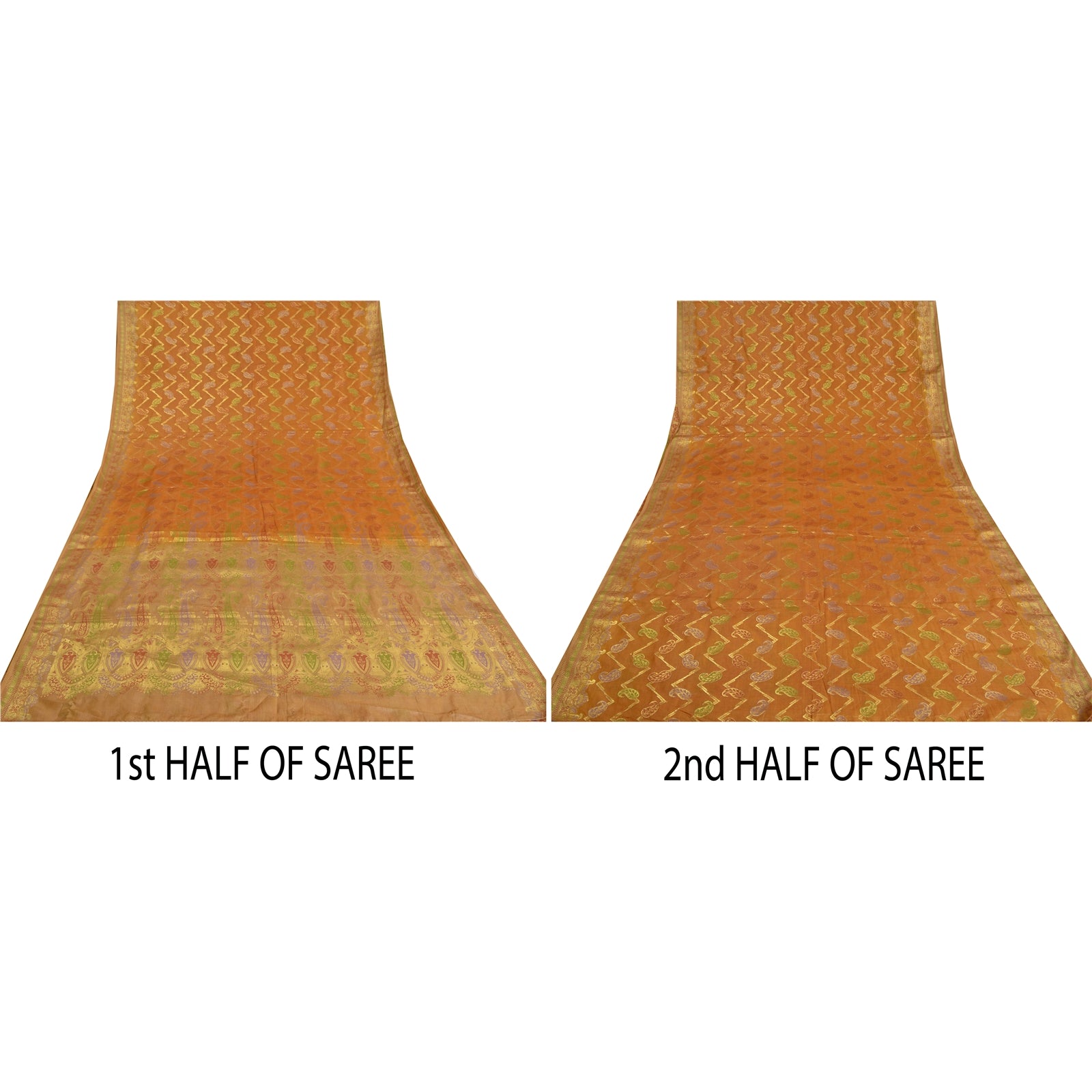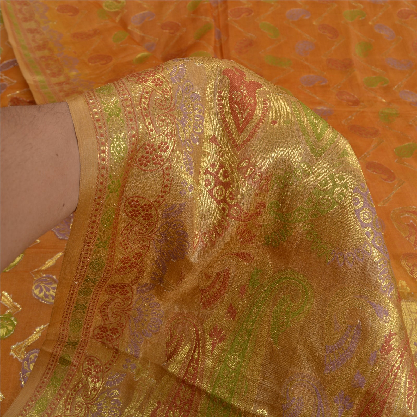 Sanskriti Vintage Saffron Indian Sarees 100% Pure Silk Woven Sari Craft Sustainable Fabric