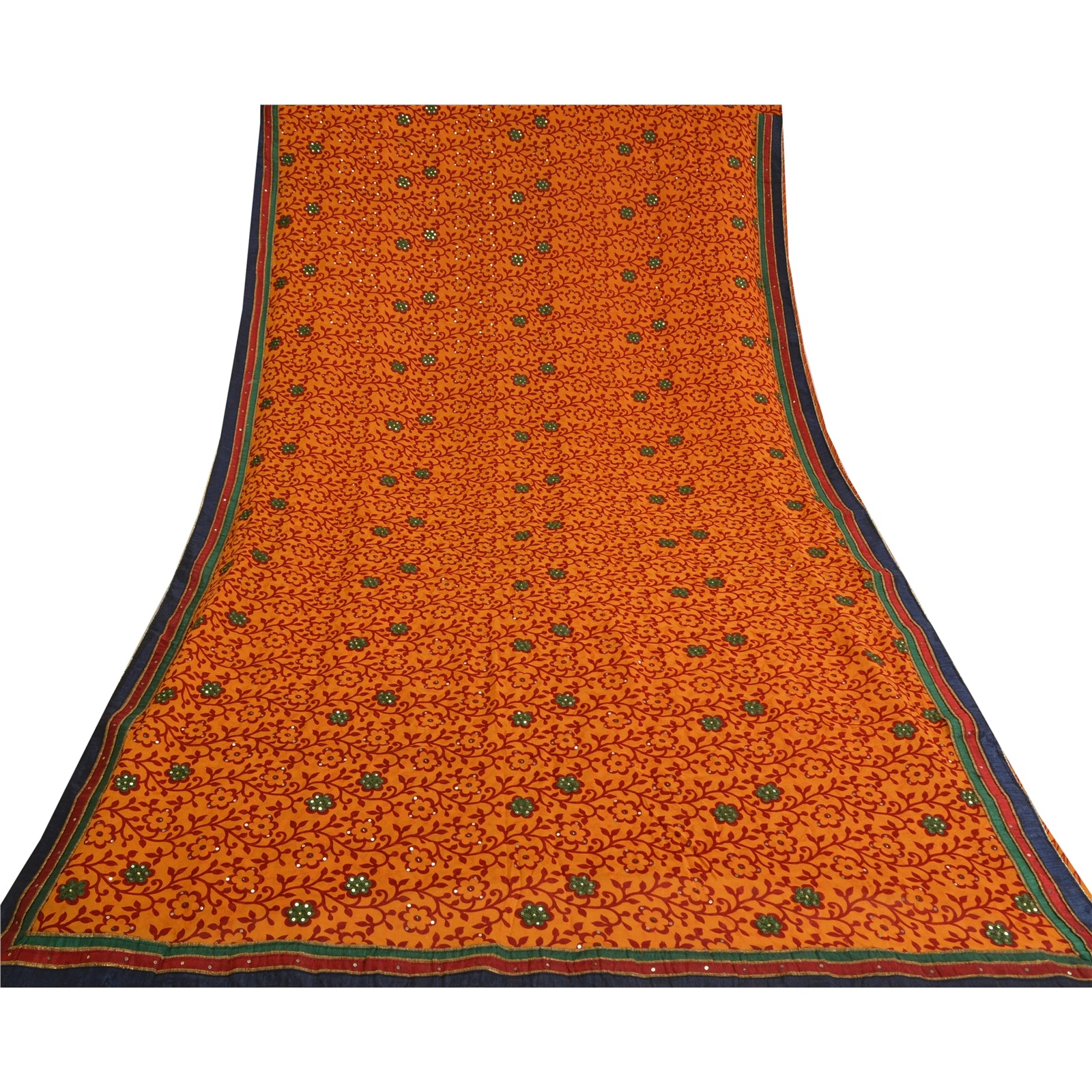 'THE ITEM COLOR OR SHADE MAY BE DARKER OR LIGHTER THAN THE PICTURE.' Beautiful saffron colored blend silk hand beaded printed sari. Border has multi color Sustainable Fabric patch work. Also you can see printed pretty floral design, green thread & shinning sequins & rhinestones work are really enchanting beauty of the sari/Sustainable Fabric. This saree can be used for various crafting ideas too. Use it for dress designing, as a throw, as window dressing, upholstery, table linen and much more. Let your creative juices flow. 'International buyers please note: Import duties, taxes, and charges are not included in the item price or postage cost. These charges are the buyer's responsibility. Please check with your country's customs office to determine what these additional costs will be prior to bidding or buying. Buyer will pay custom duty/tax. It is calculated and charged differently by every country. As a seller I do not have any control over it. VAT or sales tax is calculated by the platform at the time of checkout. Customs charge is payable at the time of delivery.'