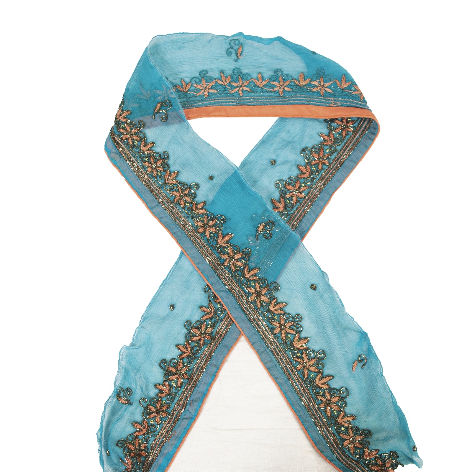 Beautiful chiffon silk hand embroidered sari border. Further embellished by peach thread work. Also, you can see grey multi glass beads, green sequins work along with floral design on blue base fabric. 1 Quantity = 1 Yard Versatile Uses-Dress Designing, Crafting Projects & Decor. THE ITEM COLOR OR SHADE MAY BE DARKER OR LIGHTER THAN THE PICTURE.' International buyers please note: Import duties, taxes, and charges are not included in the item price or postage cost. Buyer will pay custom duty/tax,VAT, and any applicable charges at the time of delivery. B-10405