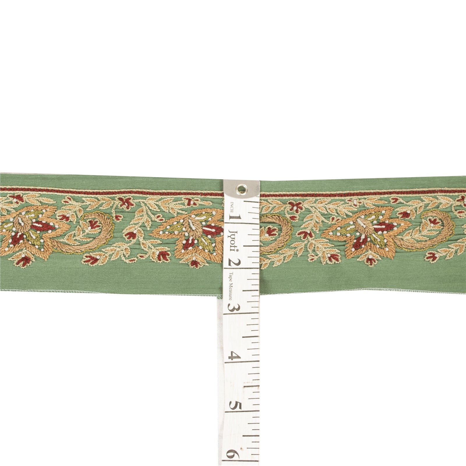 SANSKRITI VINTAGE SAREE BORDER HAND EMBROIDERED 1YD TRIMS LACE 2W GREEN