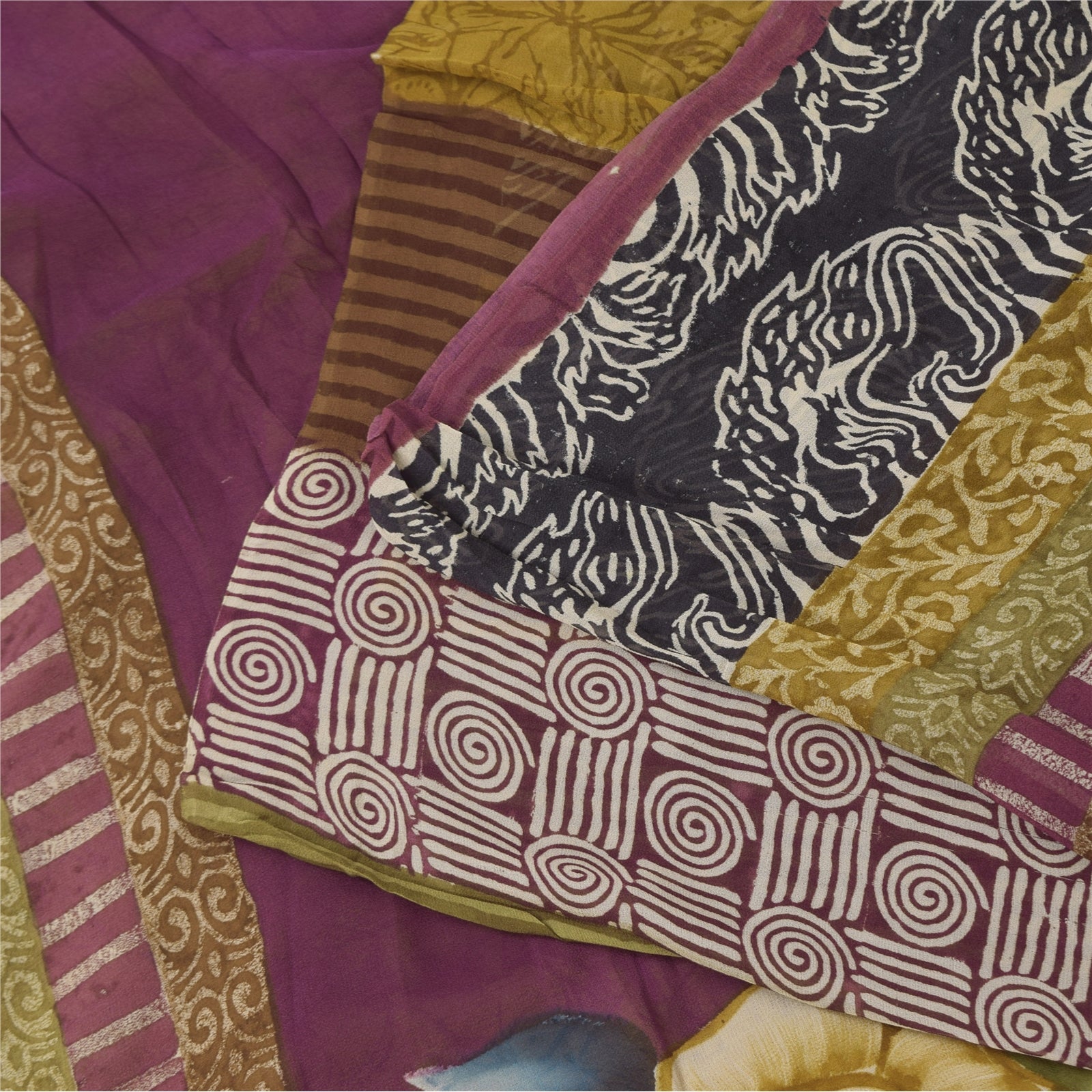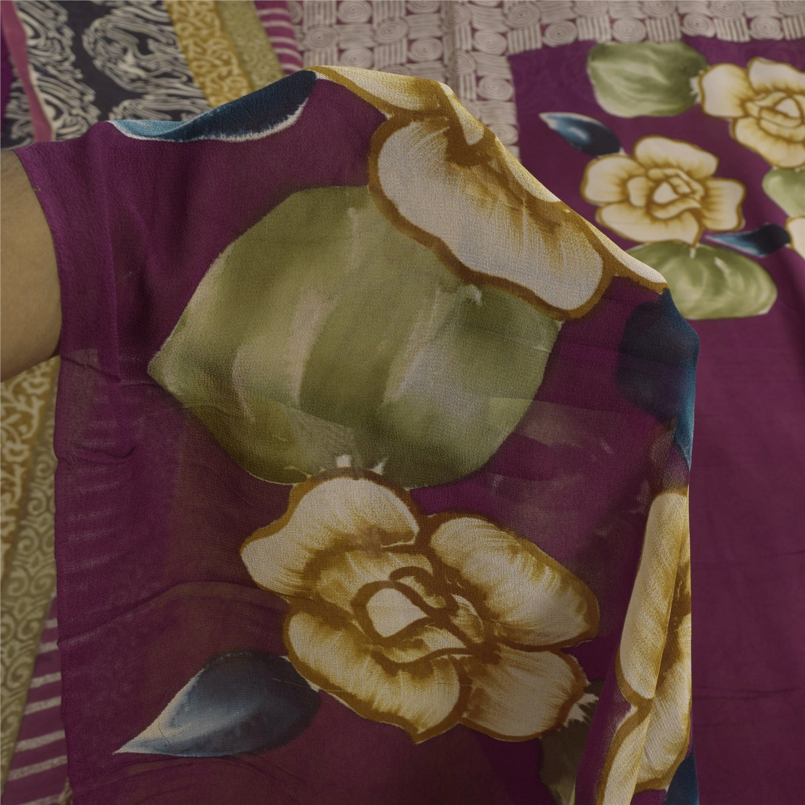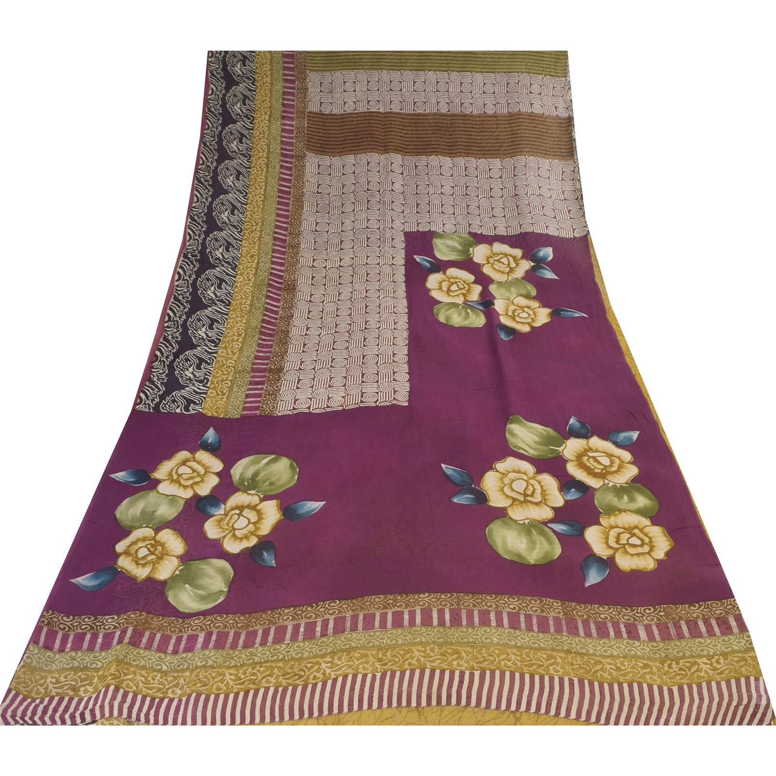 Sanskriti Vintage Sarees 100% Pure Georgette Silk Printed Sari 5+yd Craft Sustainable Fabric