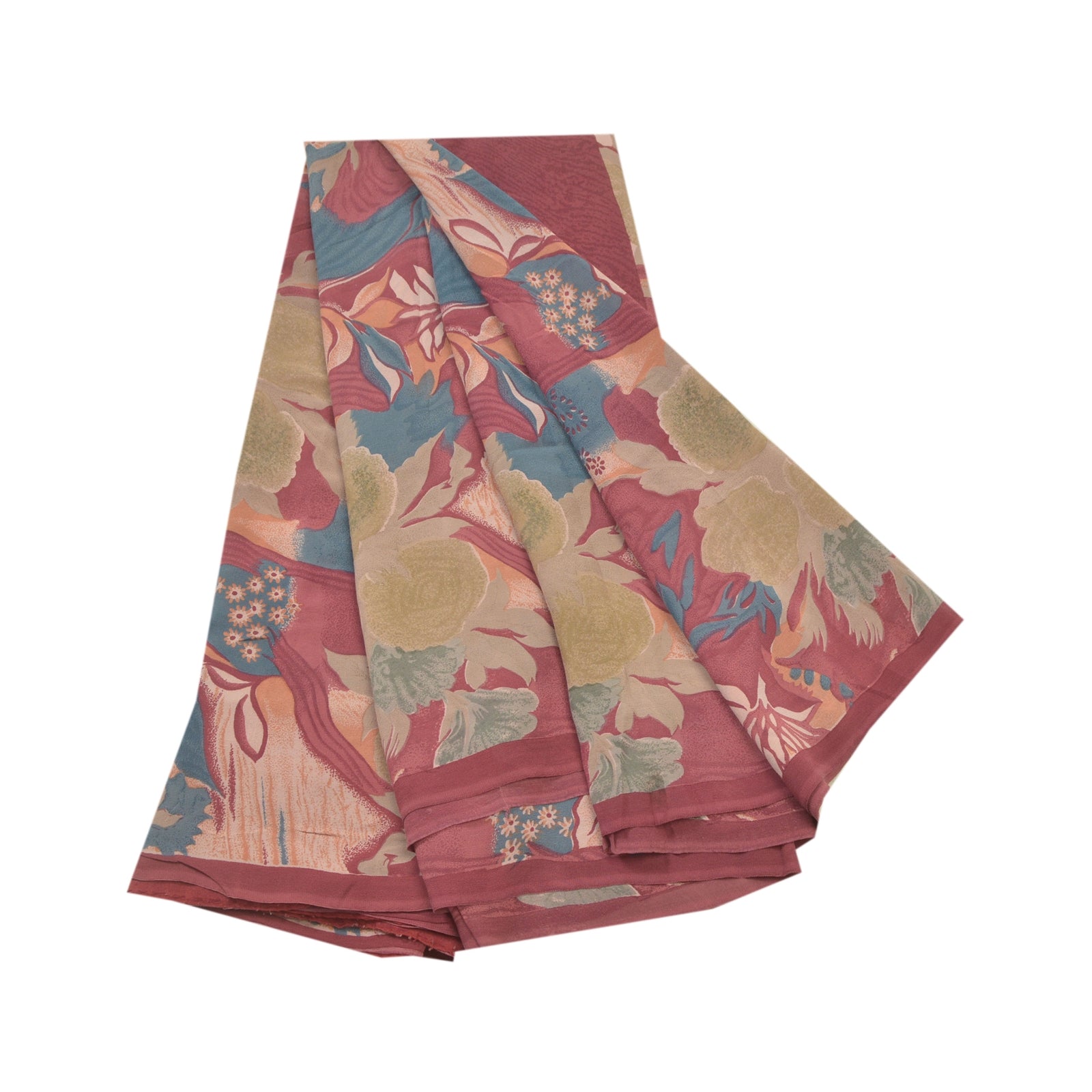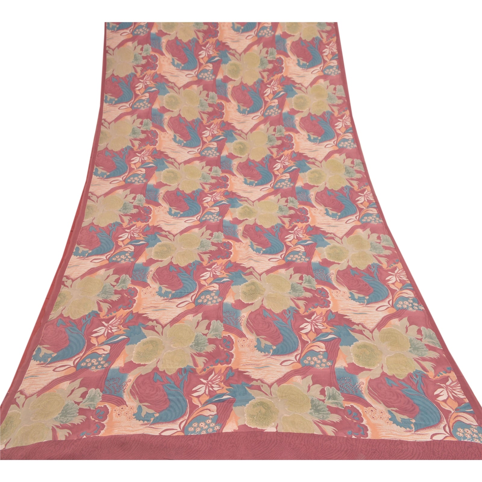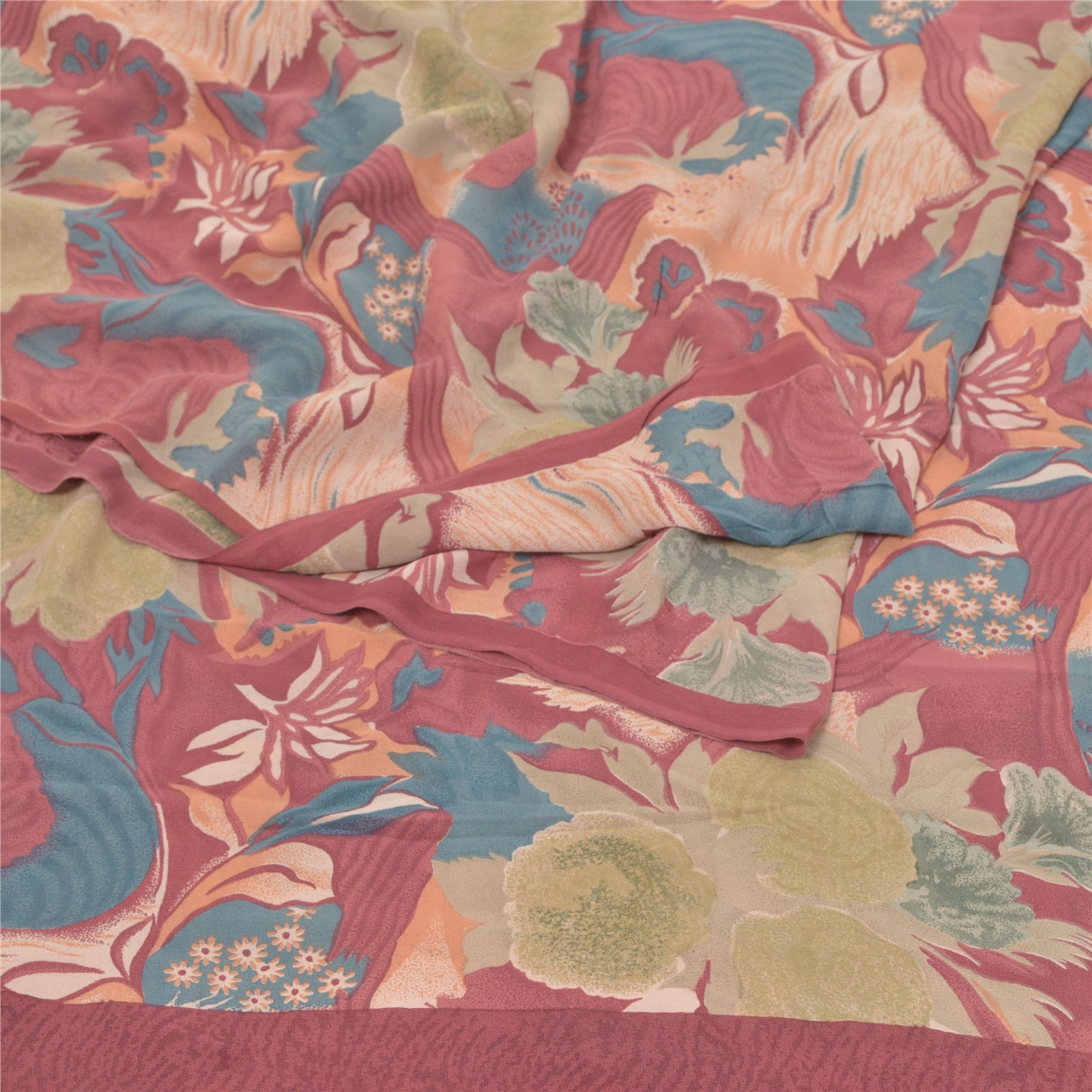 Sanskriti Vintage Sarees 100% Pure Georgette Silk Printed Sari 5YD Craft Sustainable Fabric