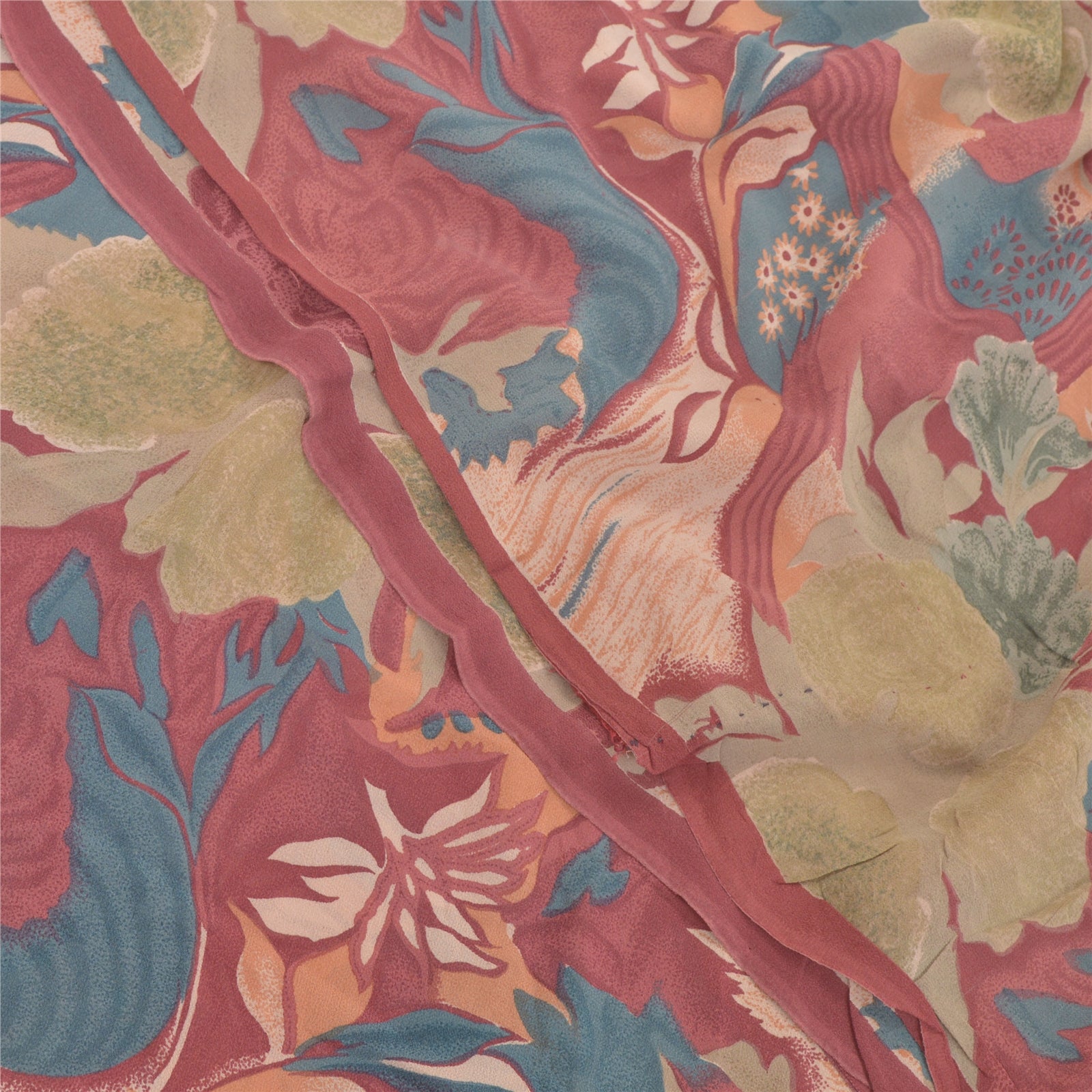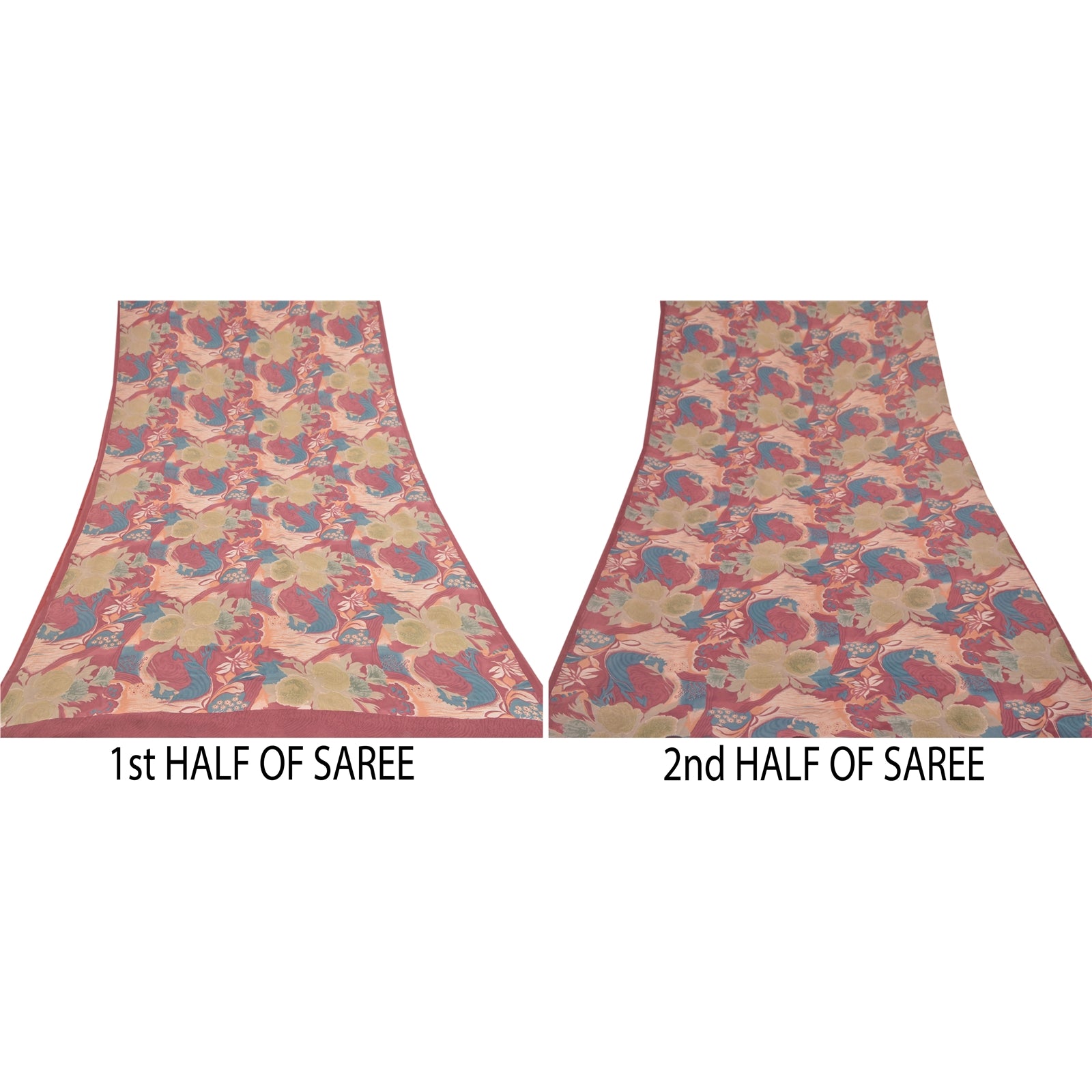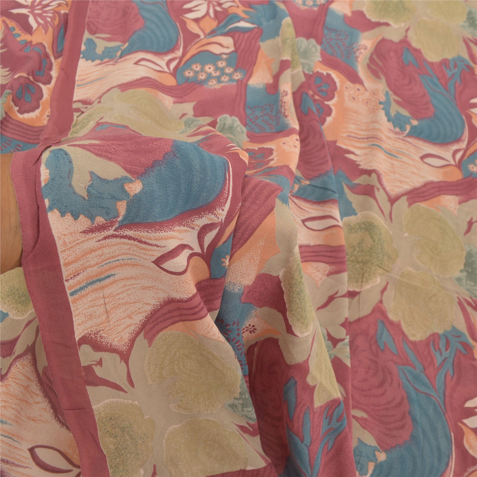 Sanskriti Vintage Sarees 100% Pure Georgette Silk Printed Sari 5YD Craft Sustainable Fabric