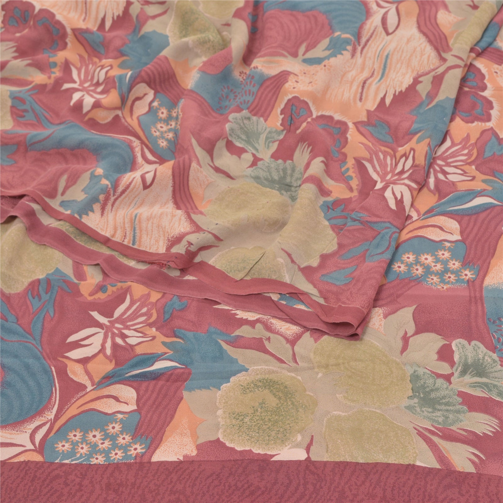 Lovely multi colored printed pure georgette silk saree. Allover sari has printed floral design. What is special about this saree? Brilliant printed design on soft Sustainable Fabric is really enhancing the beauty of the saree.This unique vintage saree can be used for various crafting ideas even if you don't want to use it as a sari. Design a dress, use it as a as window dressing, upholstery, sarongs, throw, dress making and table linen much more. Let your creative juices flow and use this decorated Sustainable Fabric in multiple fashion.