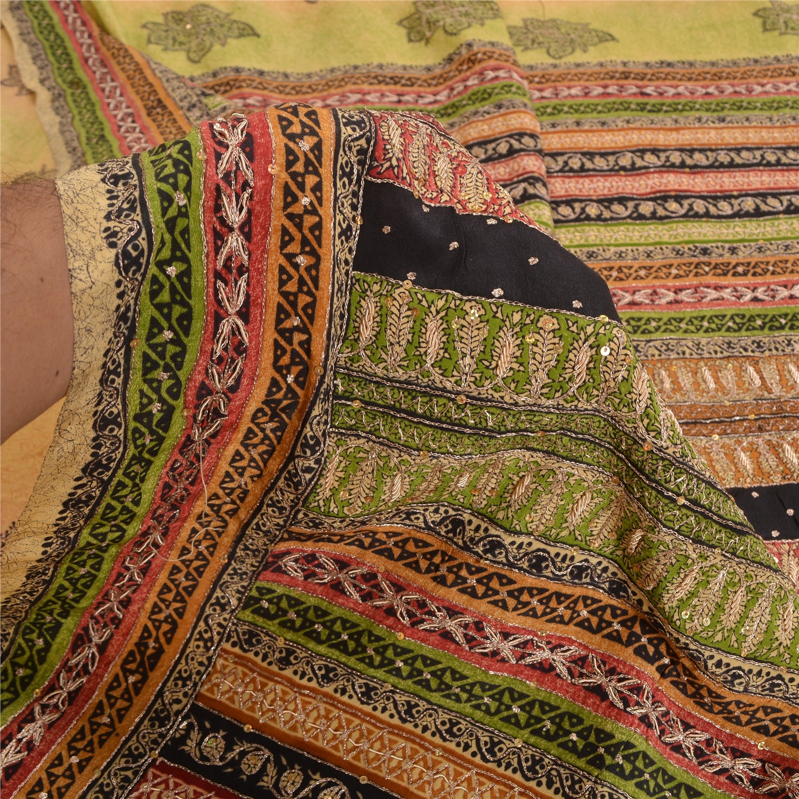 THE ITEM COLOR OR SHADE MAY BE DARKER OR LIGHTER THAN THE PICTURE.' Beautiful beige colored pure crepe silk printed & hand embroidered saree. Pallu & Border has printed floral design with golden zari, zardozi & sequins work. Similar work in center part of saree. What is special about this saree? Fabulous design is really enhancing the beauty of the saree. This unique vintage saree can be used for various crafting ideas even if you don't want to use it as a sari. Design a dress, use it as window,dressing, upholstery, sarongs, throw, dress making and table linen much more. Let your creative juices flow and use this decorated Sustainable Fabric in multiple fashion. International buyers please note: Import duties, taxes, and charges are not included in the item price or postage cost. These charges are the buyer's responsibility. Please check with your country's customs office to determine what these additional costs will be prior to bidding or buying.Buyer will pay custom duty/tax. It is calculated and charged differently by every country. As a seller I do not have any control over it.VAT or sales tax is calculated by the platform at the time of checkout. Customs charge is payable at the time of delivery.
