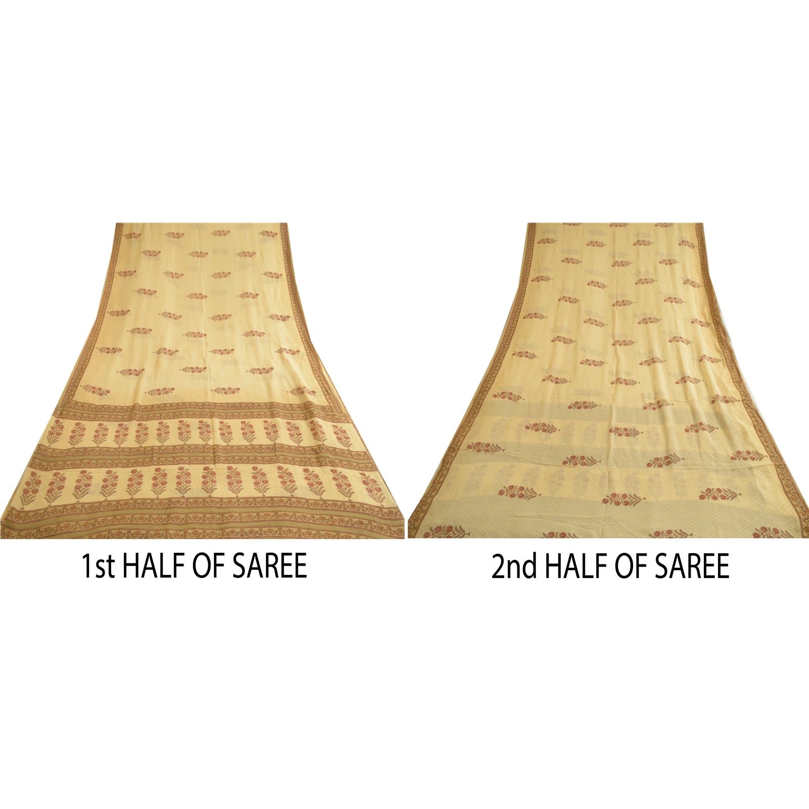 THE ITEM COLOR OR SHADE MAY BE DARKER OR LIGHTER THAN THE PICTURE.' Beautiful beige colored pure georgette silk printed saree. Pallu & Border has printed floral design. Similar design in center part of saree. Saree has mild stain on it. What is special about this saree? Brilliant design on soft Sustainable Fabric is really enhancing the beauty of the saree. This unique vintage saree can be used for various crafting ideas even if you don't want to use it as a sari. Design a dress, use it as a as window dressing, upholstery, sarongs, throw, dress making and table linen much more. Let your creative juices flow and use this decorated Sustainable Fabric in multiple fashion. International buyers please note: Import duties, taxes, and charges are not included in the item price or postage cost. These charges are the buyer's responsibility. Please check with your country's customs office to determine what these additional costs will be prior to bidding or buying.Buyer will pay custom duty/tax. It is calculated and charged differently by every country. As a seller I do not have any control over it. VAT or sales tax is calculated by the platform at the time of checkout. Customs charge is payable at the time of delivery.