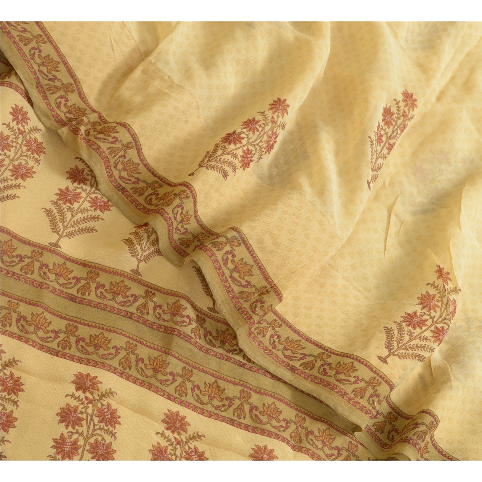 Sanskriti Vintage Sarees Beige Pure Georgette Silk Printed Sari 6yd Craft Sustainable Fabric