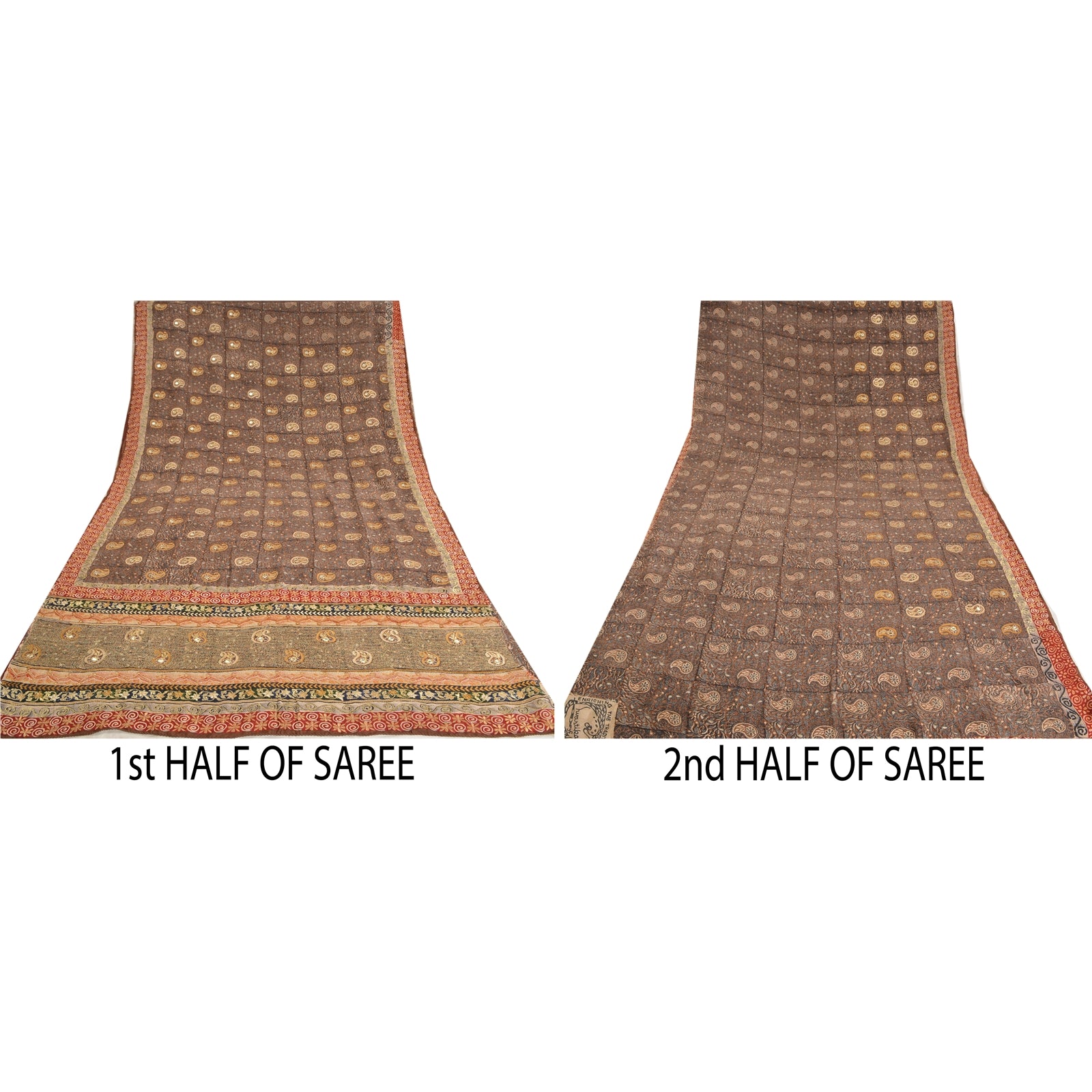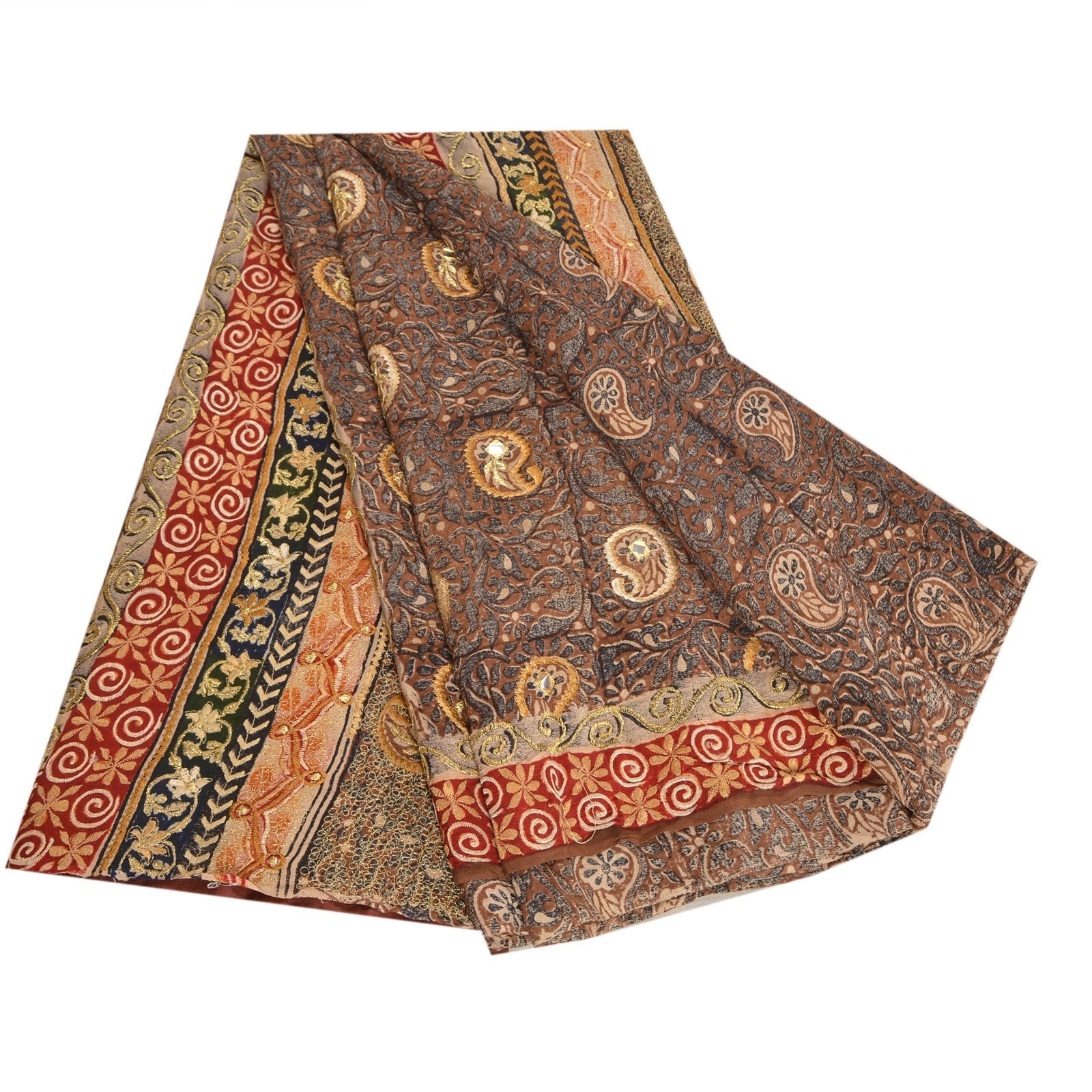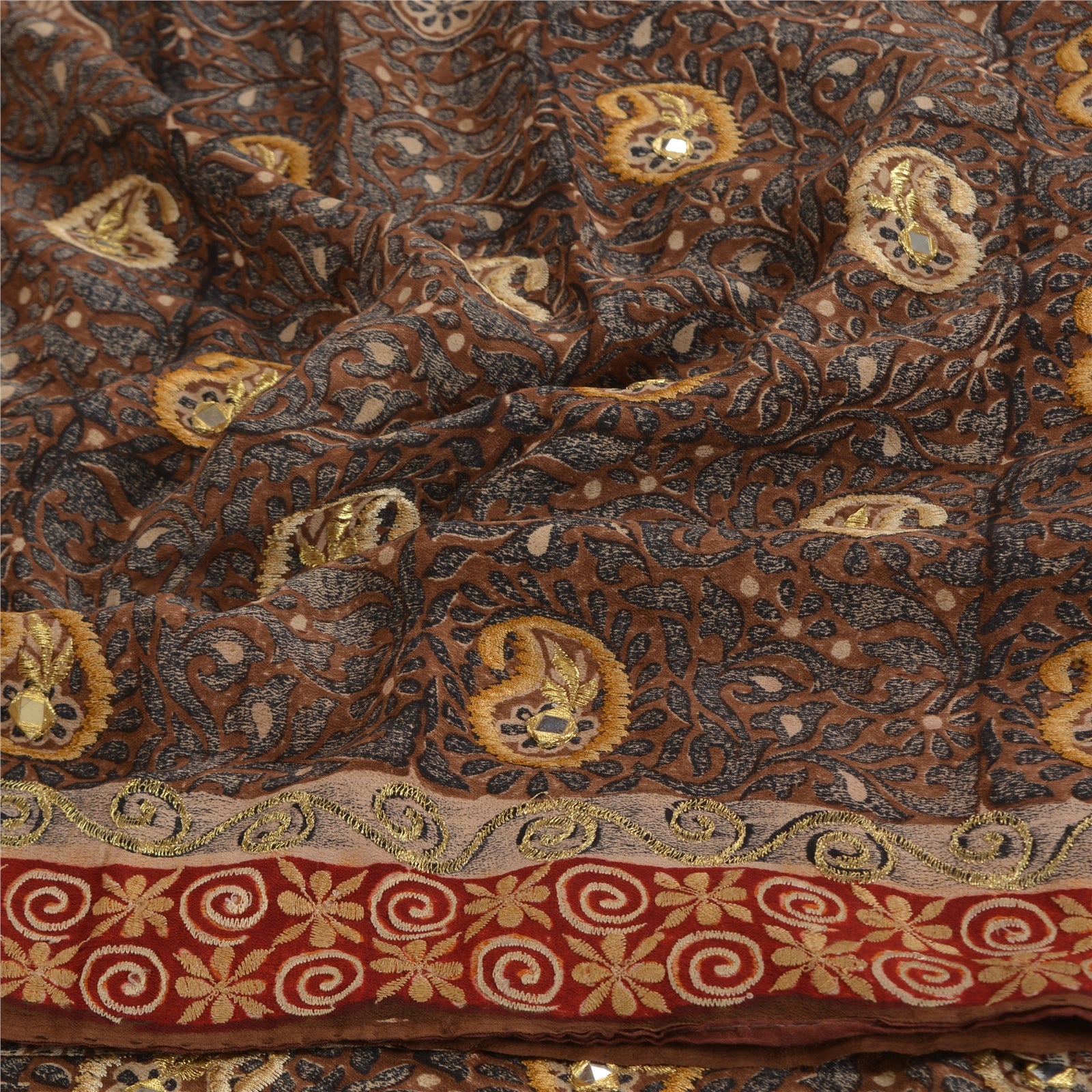 THE ITEM COLOR OR SHADE MAY BE DARKER OR LIGHTER THAN THE PICTURE.' Beautiful black colored pure crepe silk printed & hand embroidered saree. Pallu & border has printed floral design with golden thread & mirror work. Similar work in center part of saree.. What is special about this saree? Fabulous design is really enhancing the beauty of the saree. This unique vintage saree can be used for various crafting ideas even if you don't want to use it as a sari. Design a dress, use it as window,dressing, upholstery, sarongs, throw, dress making and table linen much more. Let your creative juices flow and use this decorated Sustainable Fabric in multiple fashion. International buyers please note: Import duties, taxes, and charges are not included in the item price or postage cost. These charges are the buyer's responsibility. Please check with your country's customs office to determine what these additional costs will be prior to bidding or buying.Buyer will pay custom duty/tax. It is calculated and charged differently by every country. As a seller I do not have any control over it.VAT or sales tax is calculated by the platform at the time of checkout. Customs charge is payable at the time of delivery.