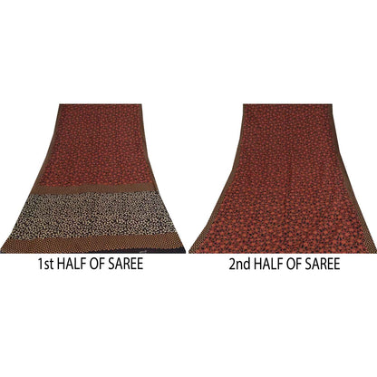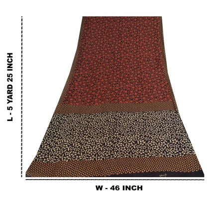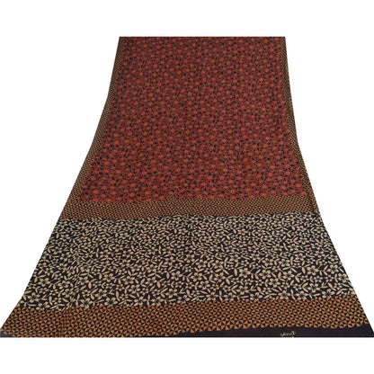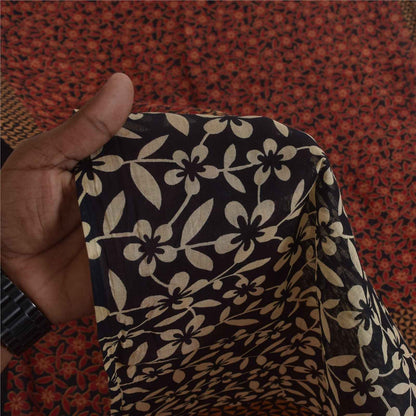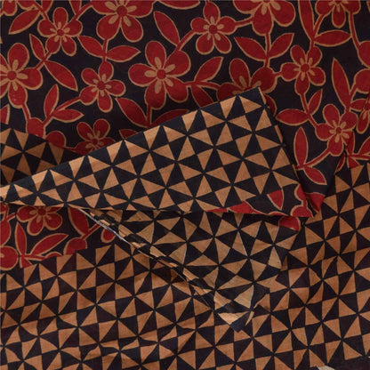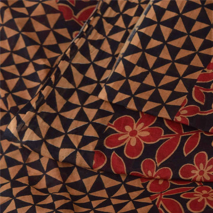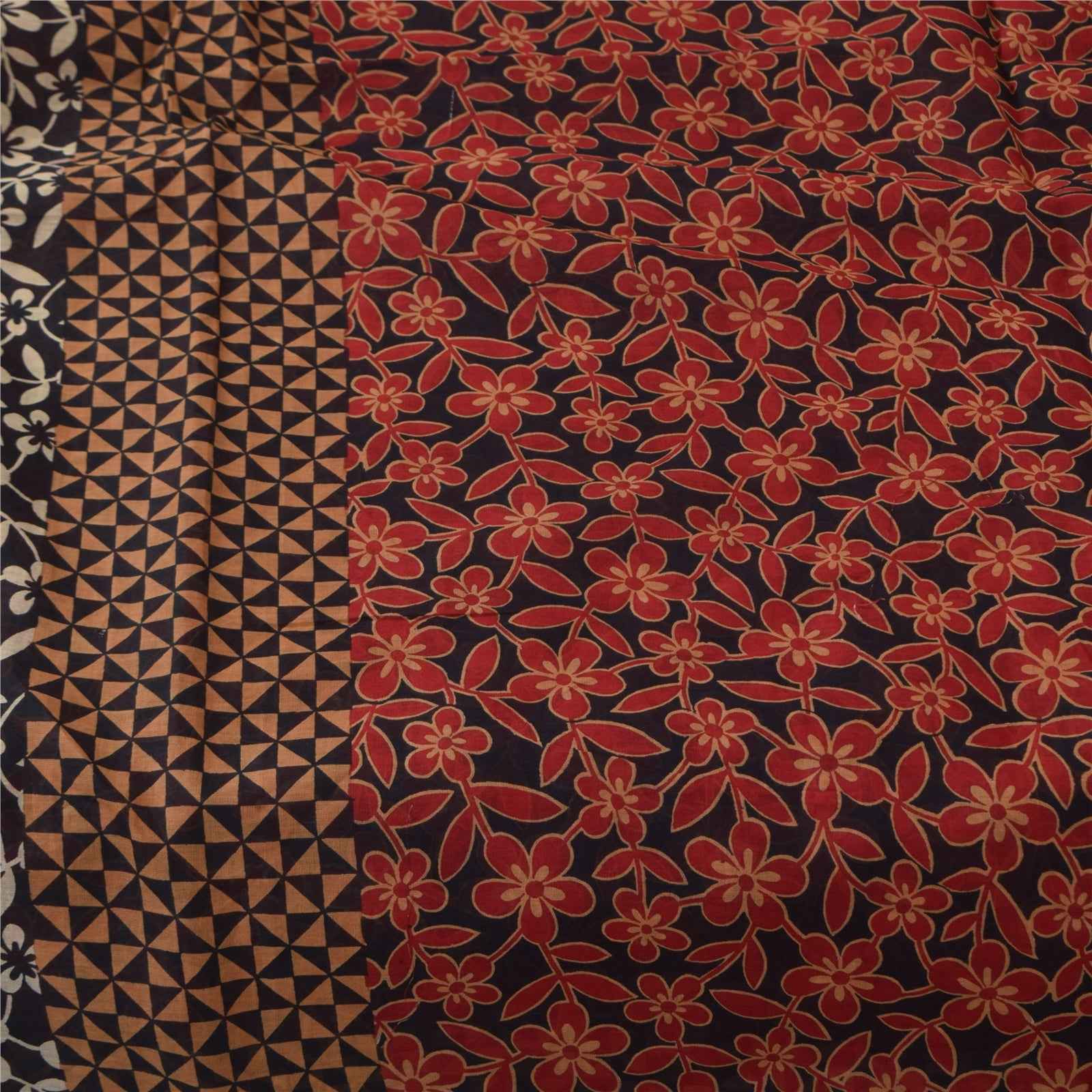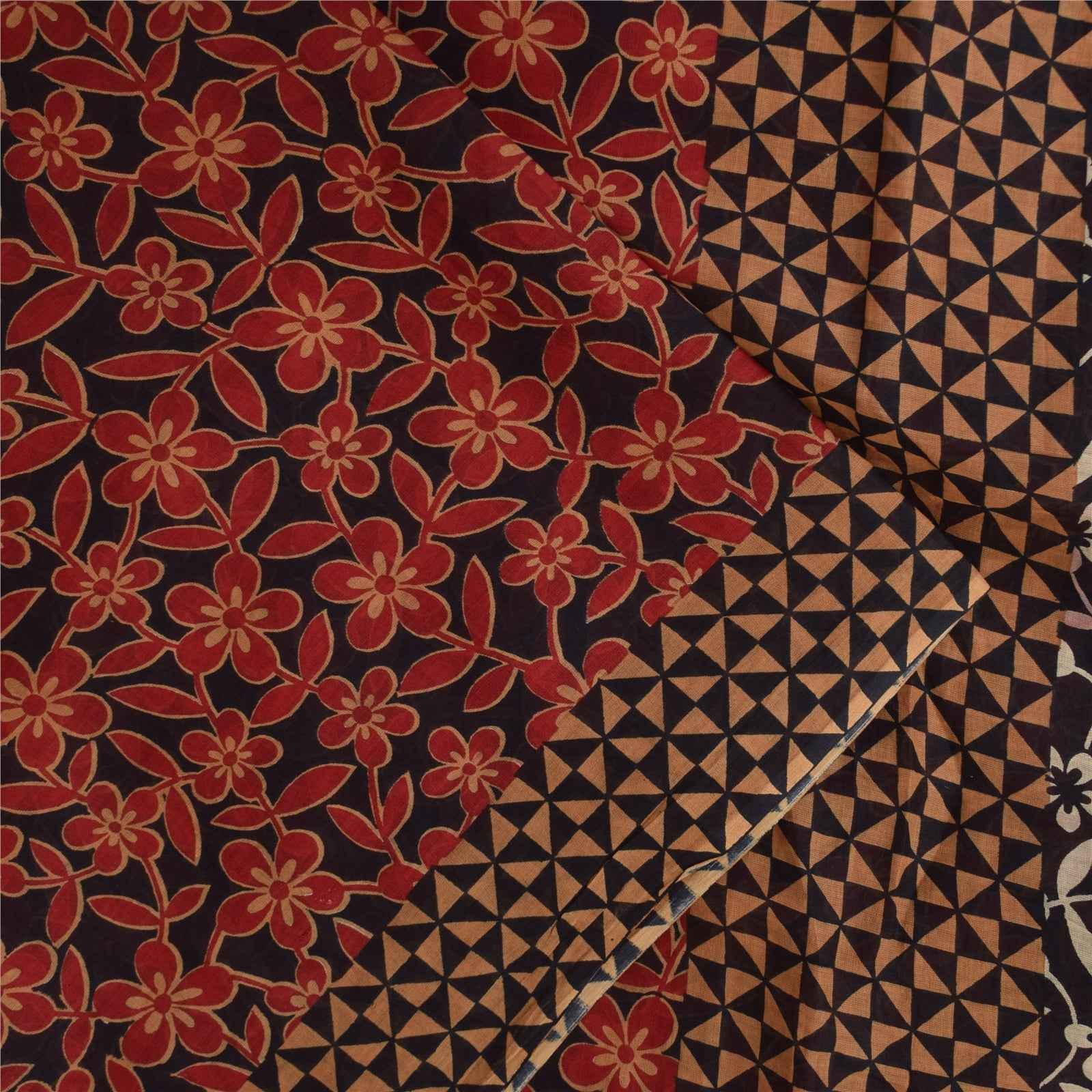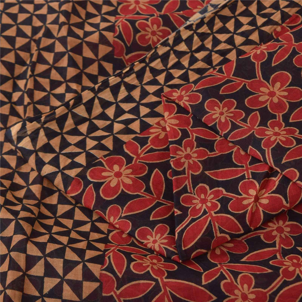 Sanskriti Vintage Sarees Black & Red Pure Cotton Printed Sari 5+yd Craft Fabric