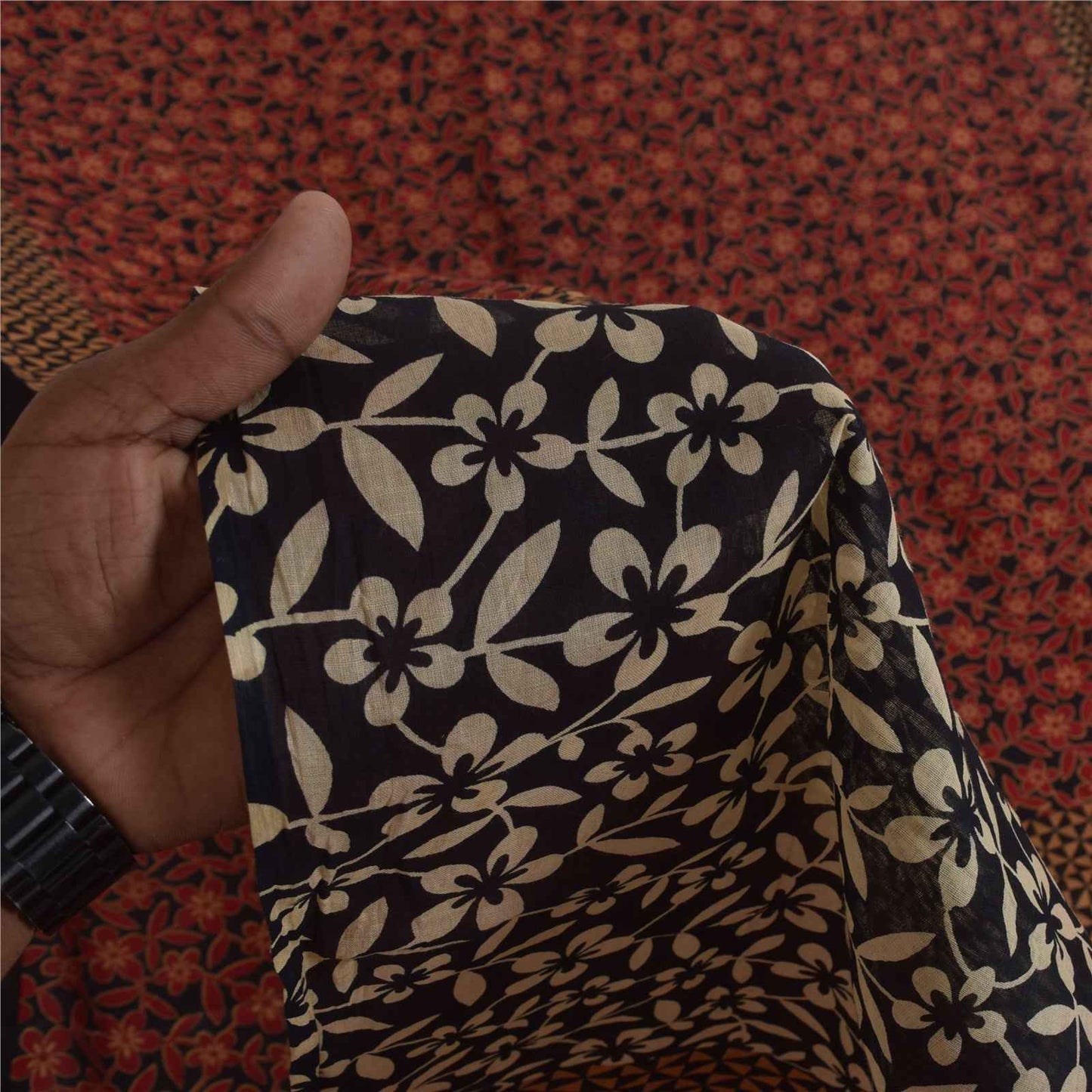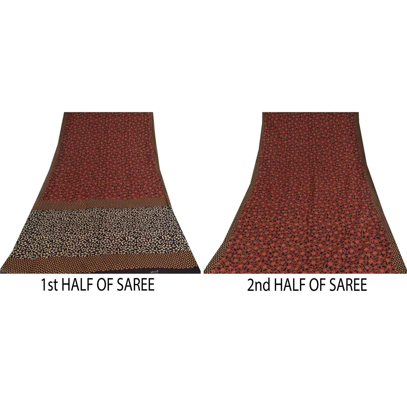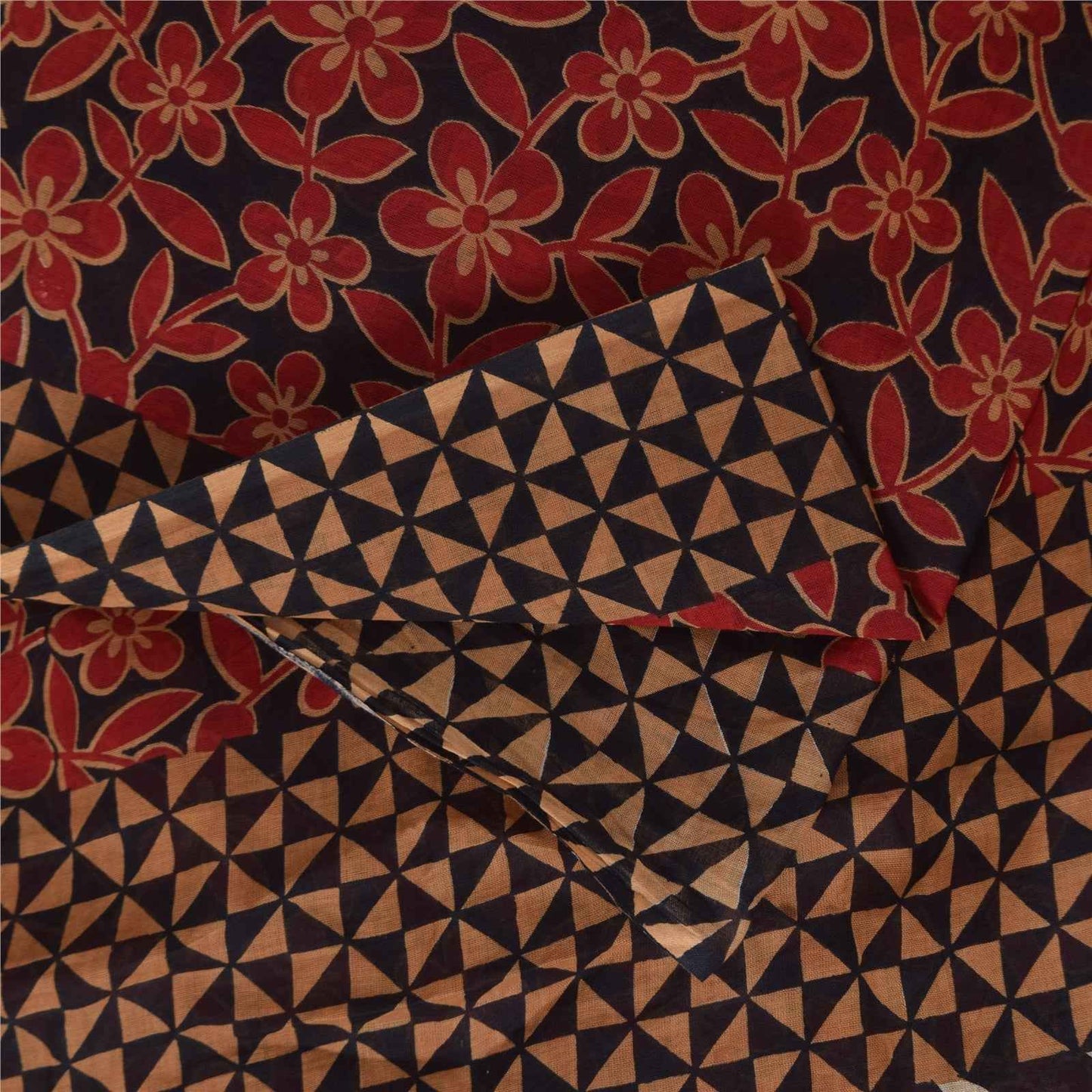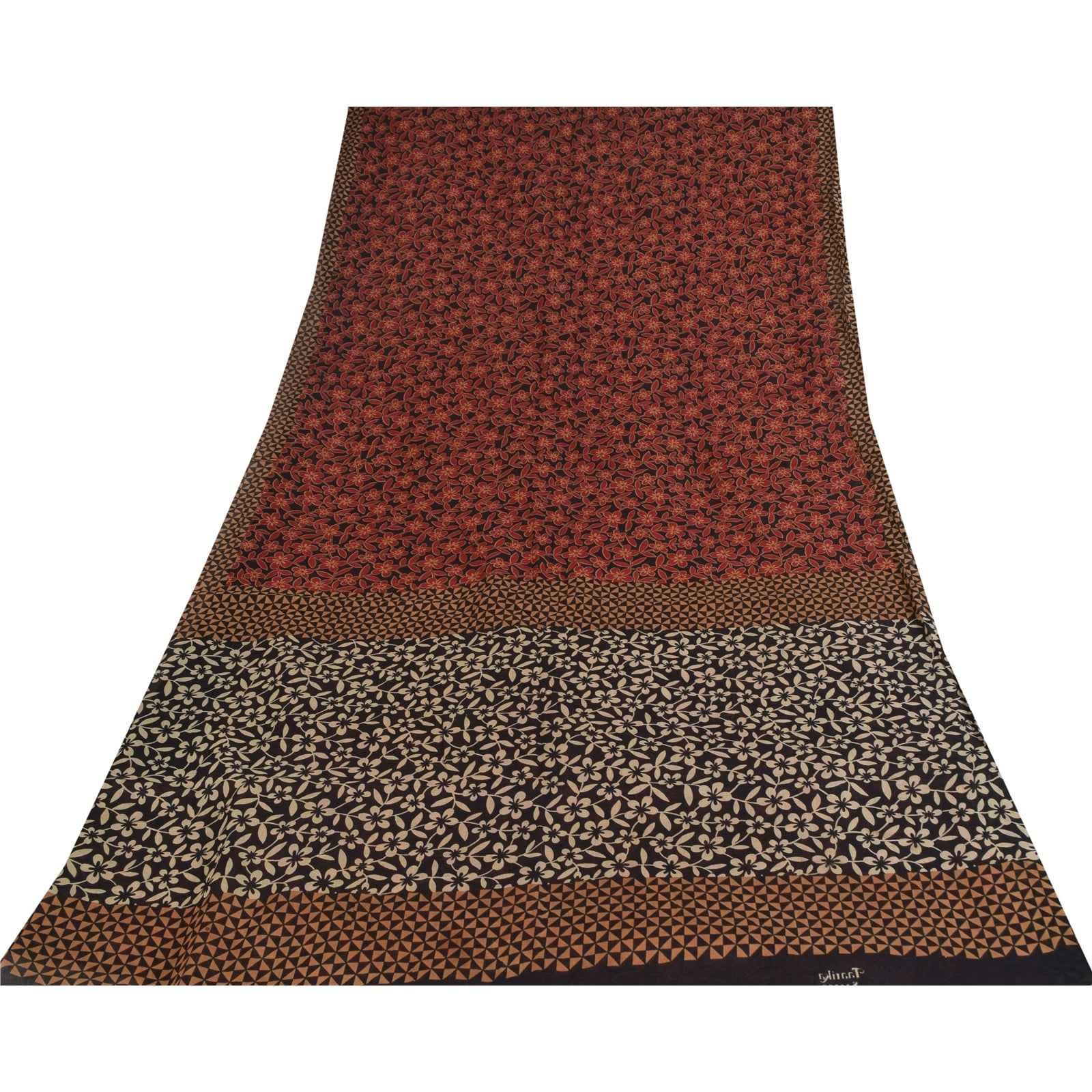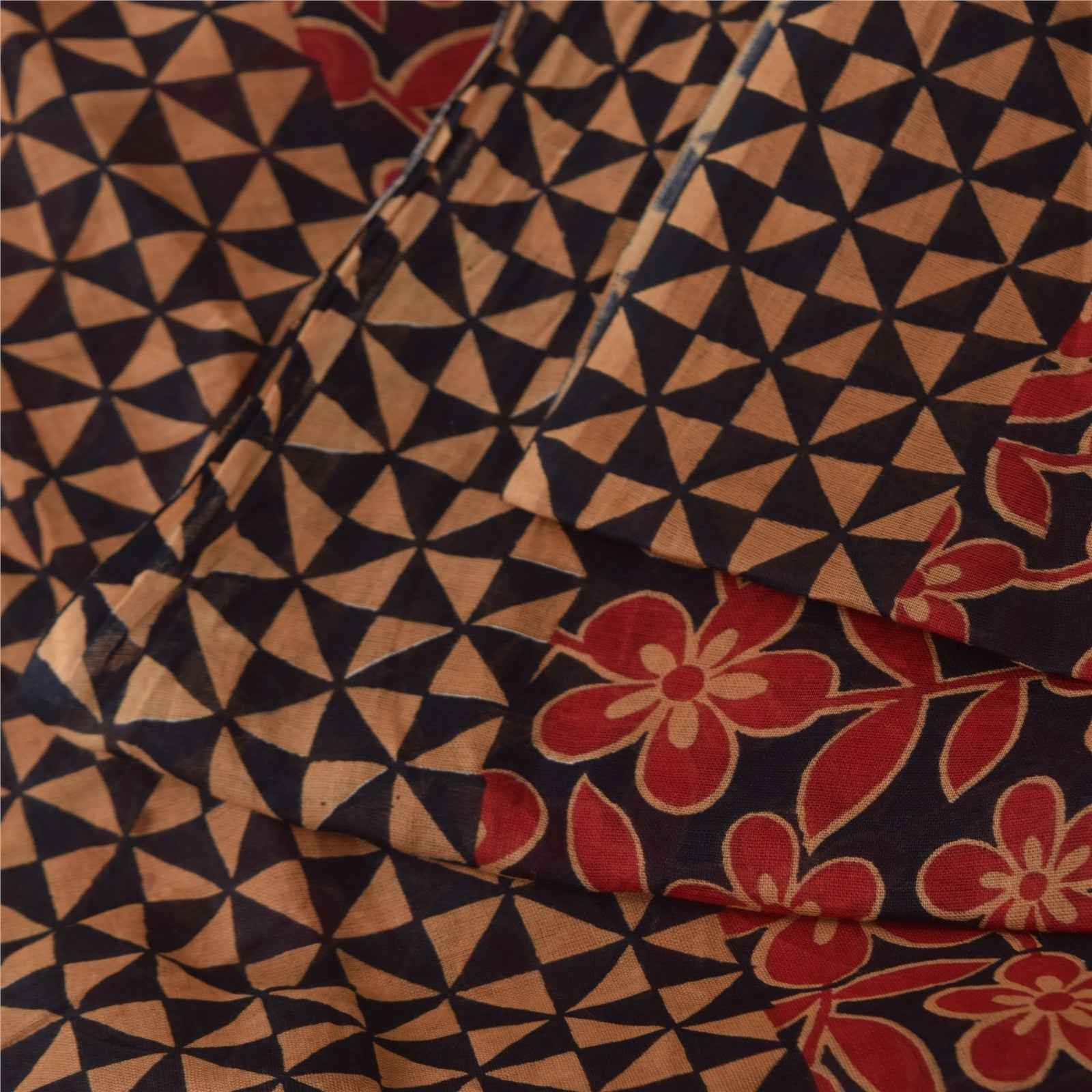 THE ITEM COLOR OR SHADE MAY BE DARKER OR LIGHTER THAN THE PICTURE. Attractive black & red colored pure cotton printed sari. Pallu & Border has printed geometric design. Floral design in center part of saree.. This unique vintage saree can be used for various crafting ideas even if you don't want to use it as a sari. Design a dress, use it as a as window dressing, upholstery, sarongs, throw, dress making and table linen much more. Let your creative juices flow and use this decorated fabric in multiple fashion. Shipping Note: 'International buyers please note: Import duties, taxes, and charges are not included in the item price or postage cost. These charges are the buyer's responsibility. Please check with your country's customs office to determine what these additional costs will be prior to bidding or buying. Buyer will pay custom duty/tax. It is calculated and charged differently by every country. As a seller I do not have any control over it. VAT or sales tax is calculated by the platform at the time of checkout. Customs charge is payable at the time of delivery.' PCS-6759