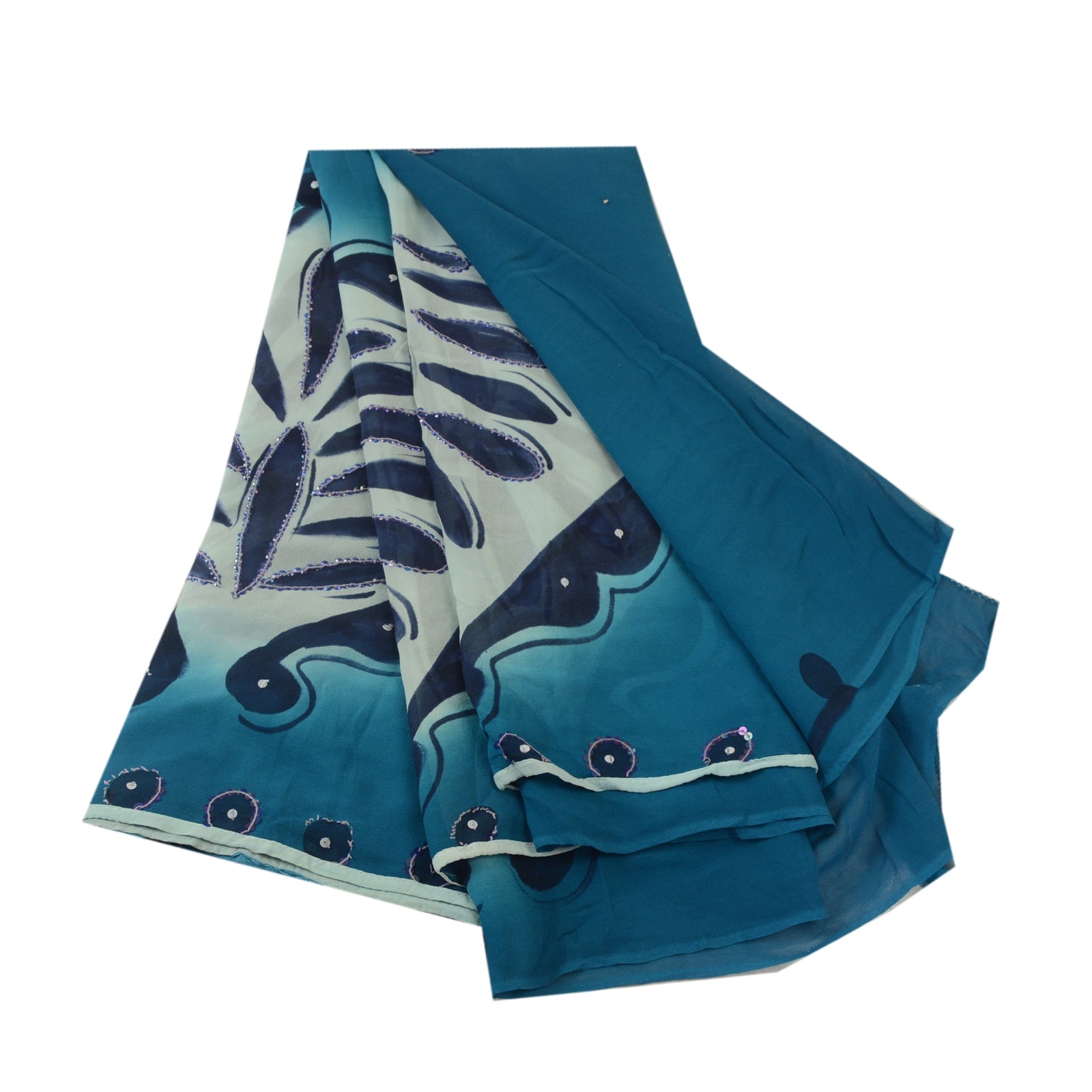THE ITEM COLOR OR SHADE MAY BE DARKER OR LIGHTER THAN THE PICTURE.' Beautiful blue colored pure georgette silk printed & hand embroidered saree. Allover sari has printed floral design with thread, sequins, glass bead & rhinestone work. Saree has mild stain on it. What is special about this saree? Brilliant design on soft Sustainable Fabric is really enhancing the beauty of the saree. This unique vintage saree can be used for various crafting ideas even if you don't want to use it as a sari. Design a dress, use it as a as window dressing, upholstery, sarongs, throw, dress making and table linen much more. Let your creative juices flow and use this decorated Sustainable Fabric in multiple fashion. International buyers please note: Import duties, taxes, and charges are not included in the item price or postage cost. These charges are the buyer's responsibility. Please check with your country's customs office to determine what these additional costs will be prior to bidding or buying.Buyer will pay custom duty/tax. It is calculated and charged differently by every country. As a seller I do not have any control over it. VAT or sales tax is calculated by the platform at the time of checkout. Customs charge is payable at the time of delivery.