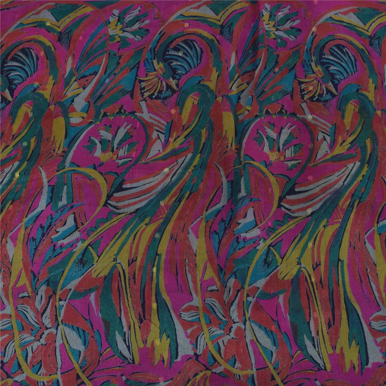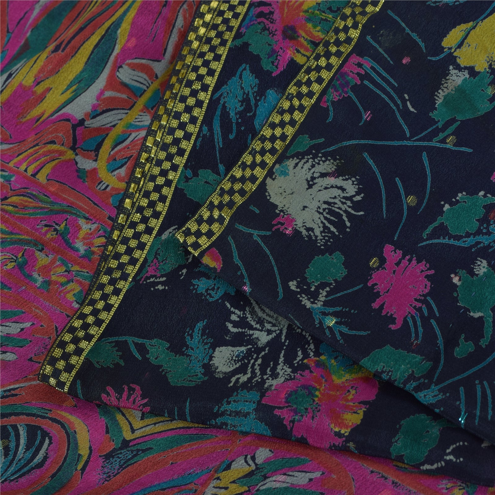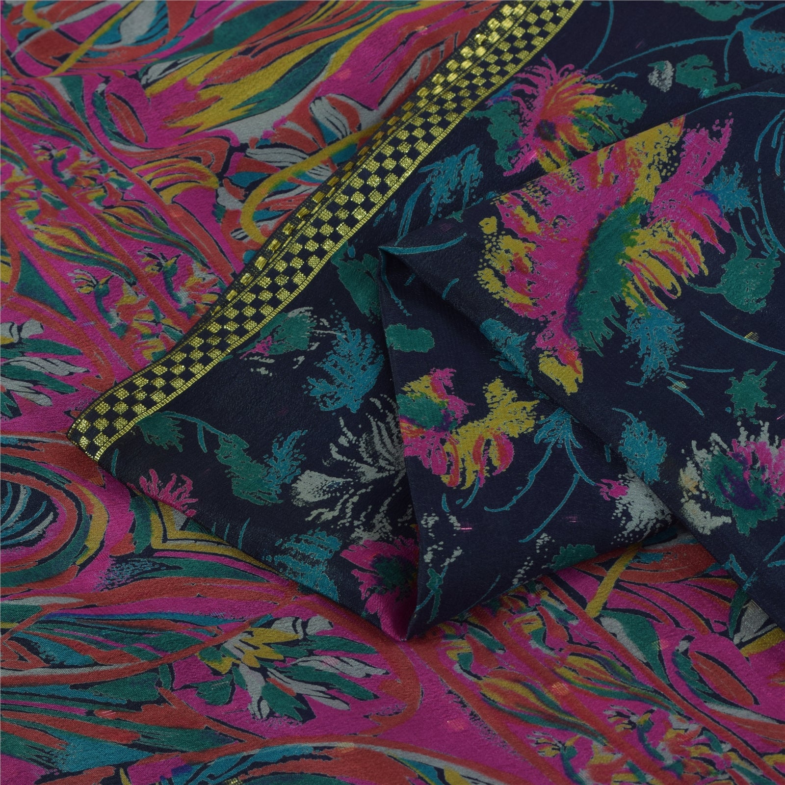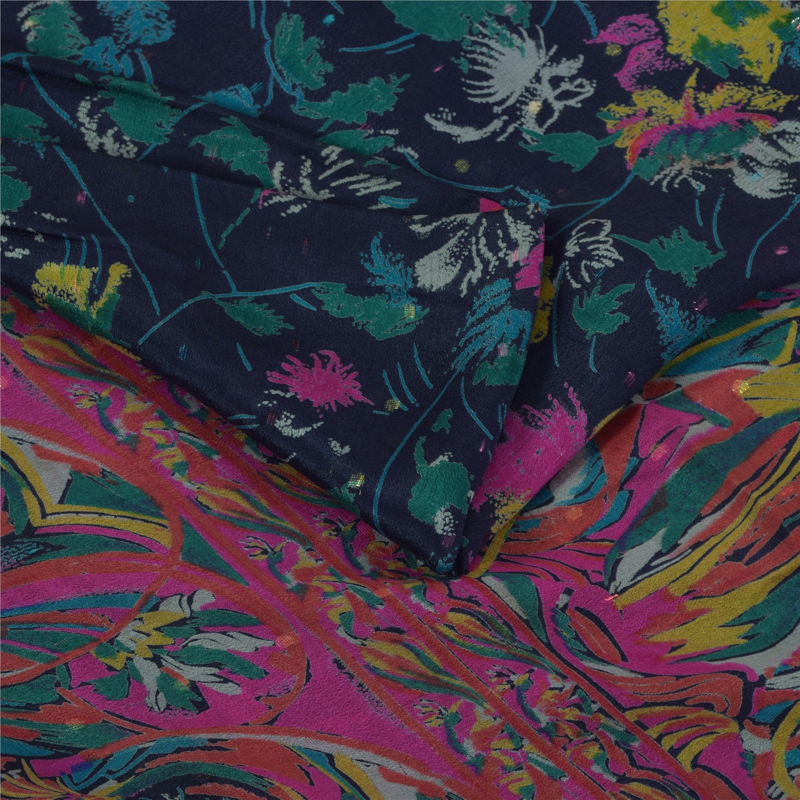 Sanskriti Vintage Sarees Blue Pure Silk Printed Woven Sari 5+yd Craft Fabric