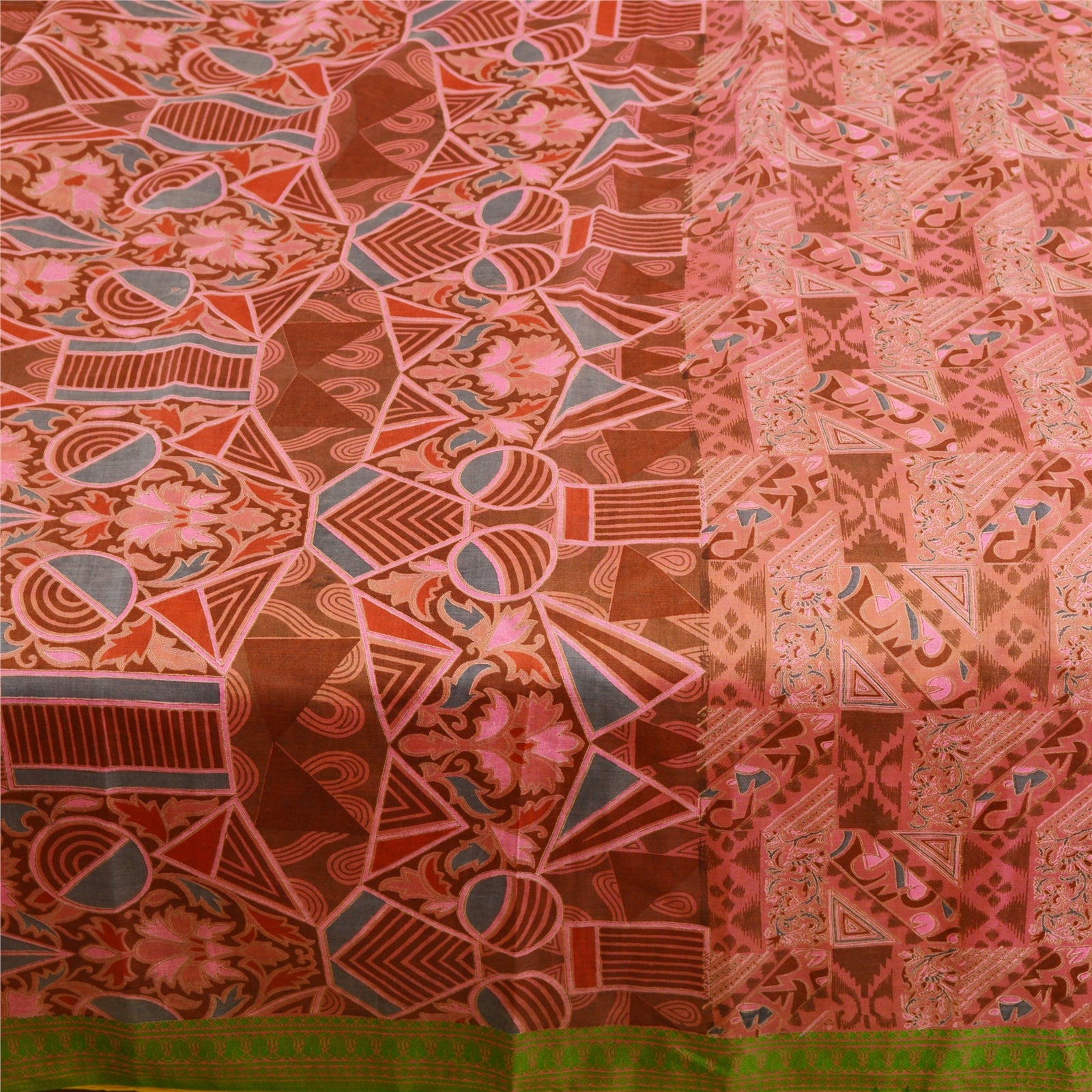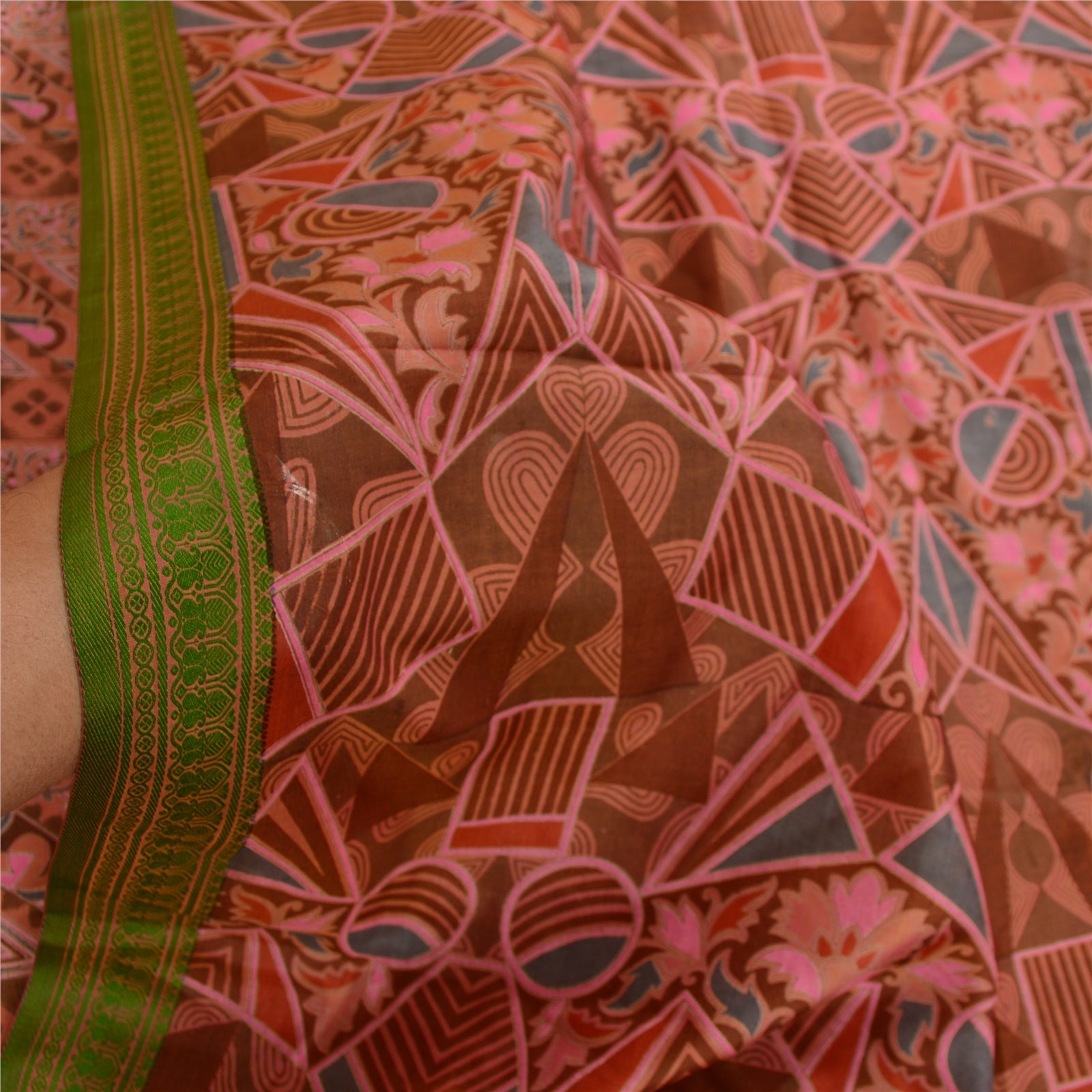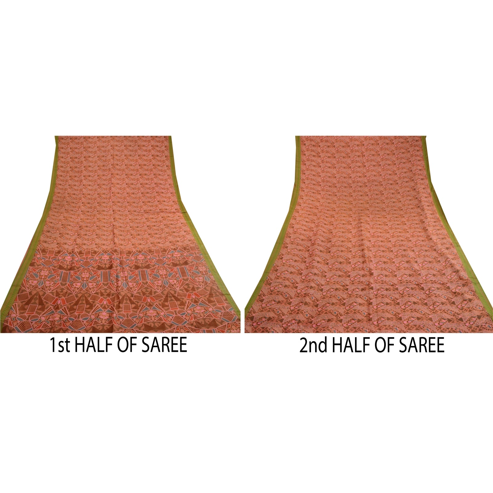 Sanskriti Vintage Sarees Brown Printed Pure Silk Sari Soft Floral Craft Sustainable Fabric