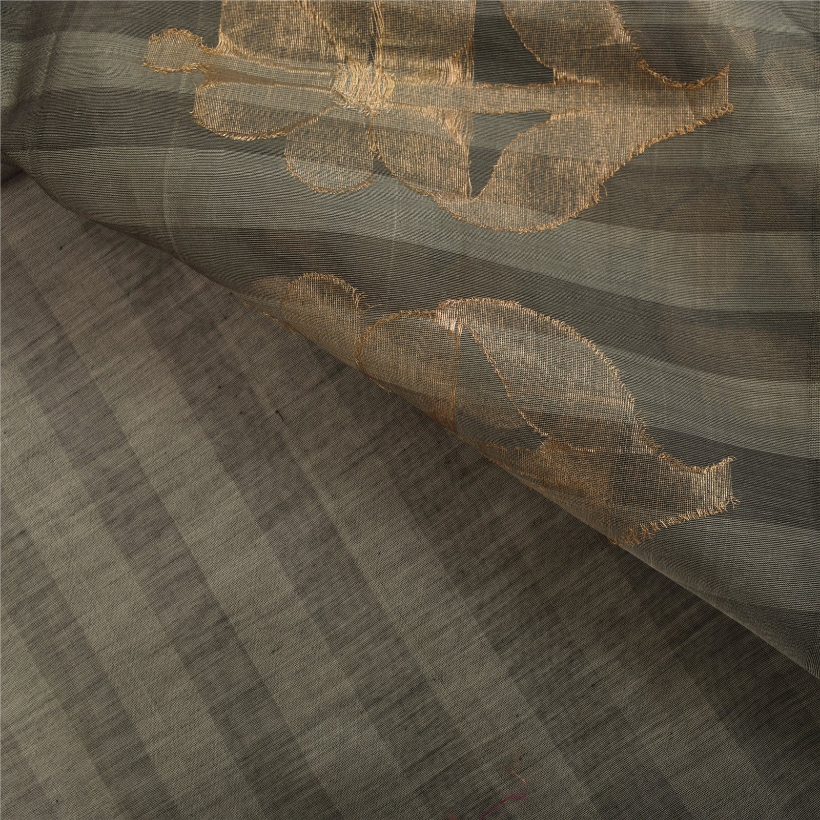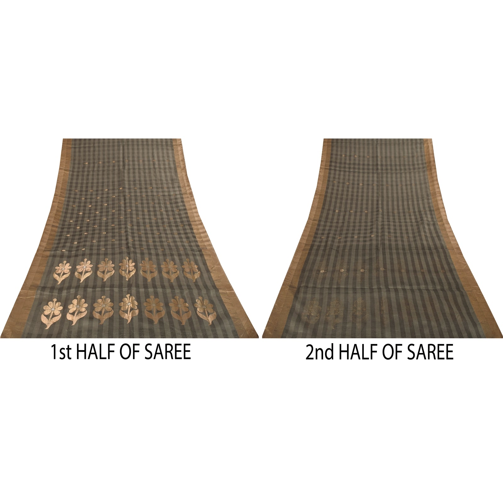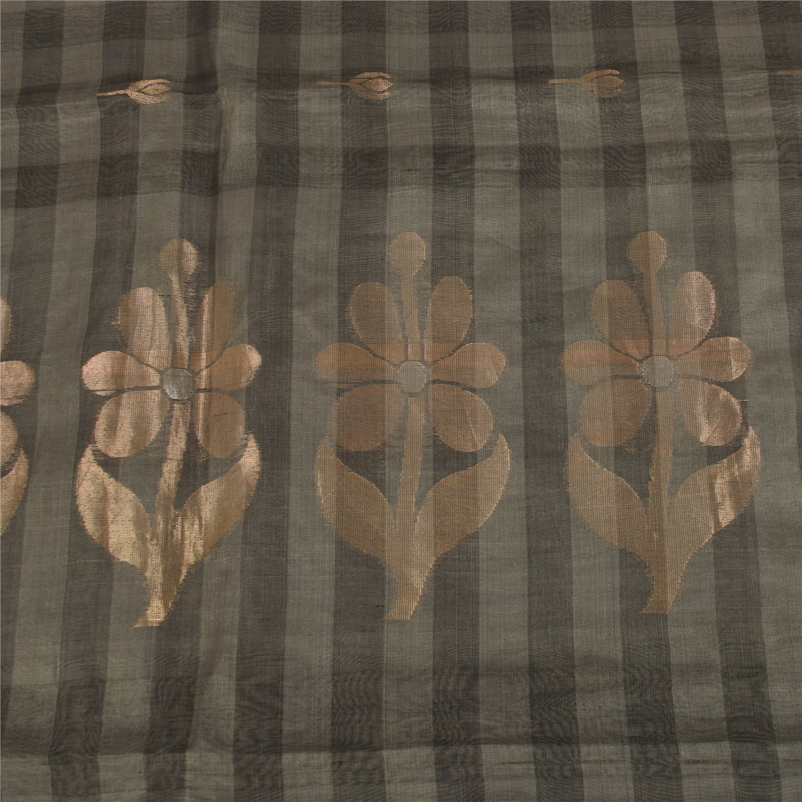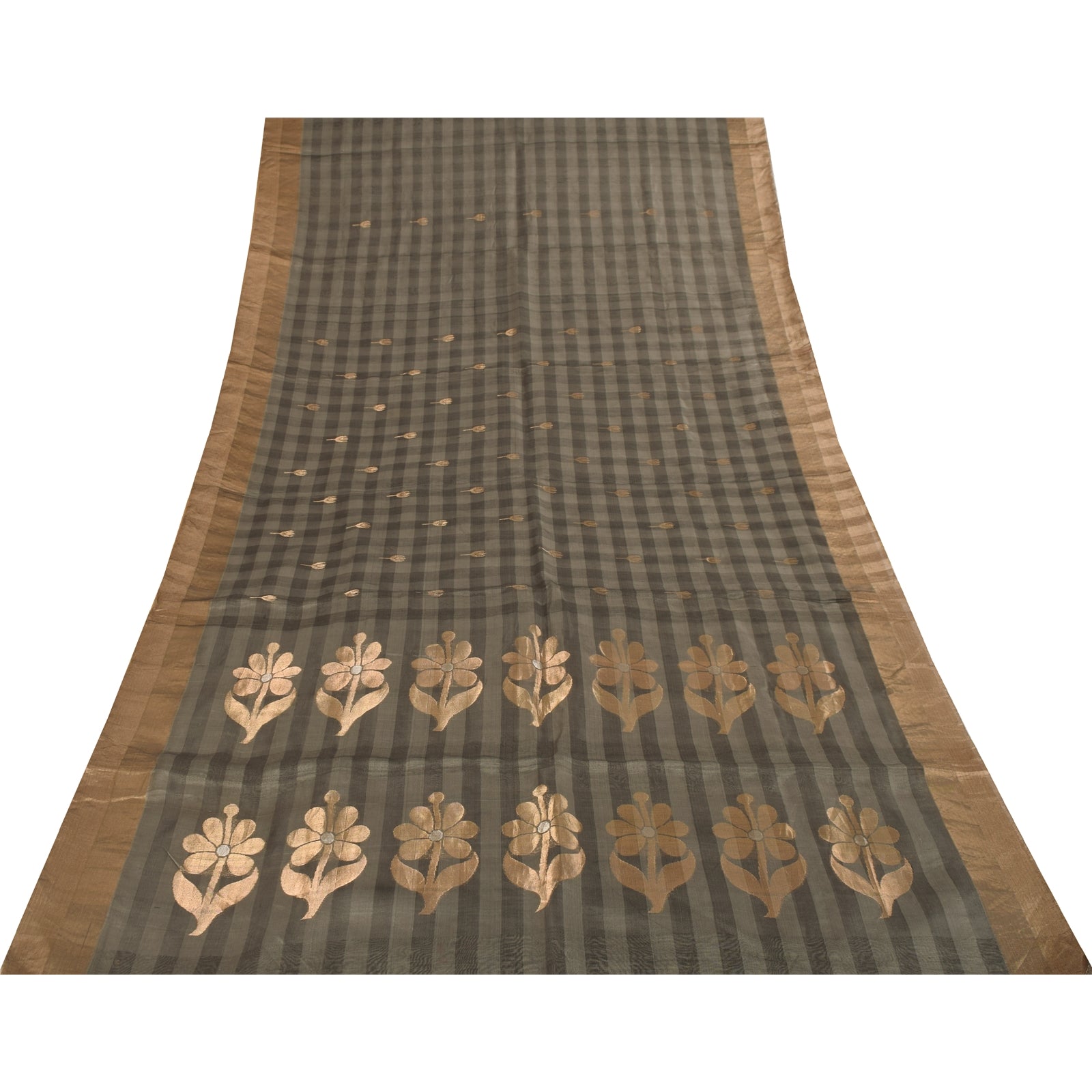 Sanskriti Vintage Sarees Gray & Black Woven Cotton Silk Sari 5+yd Craft Fabric