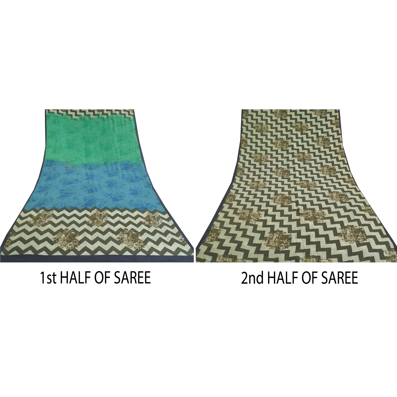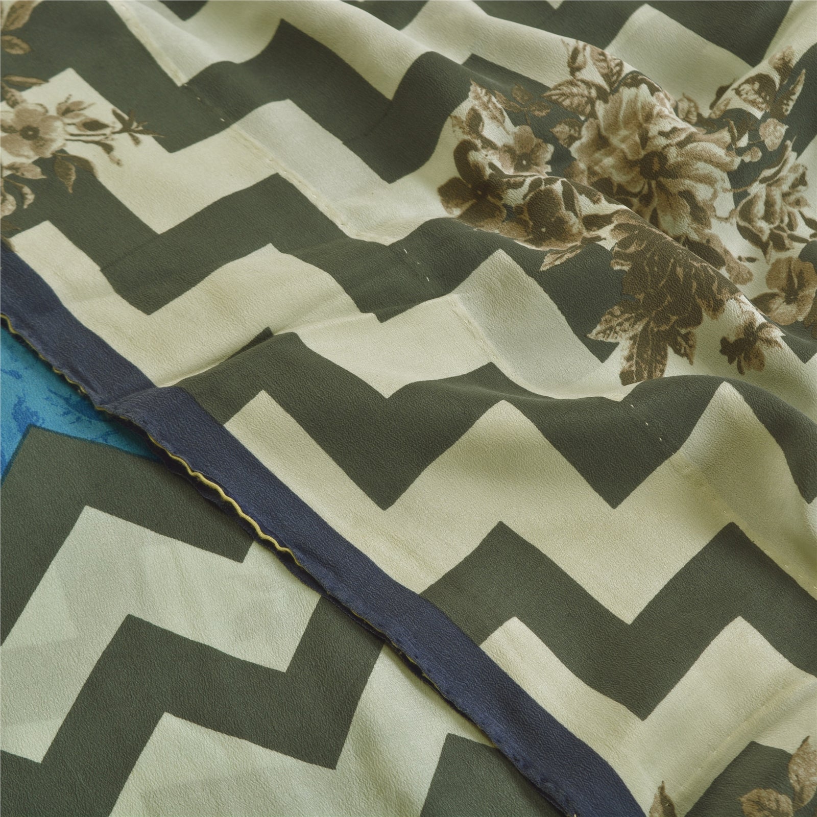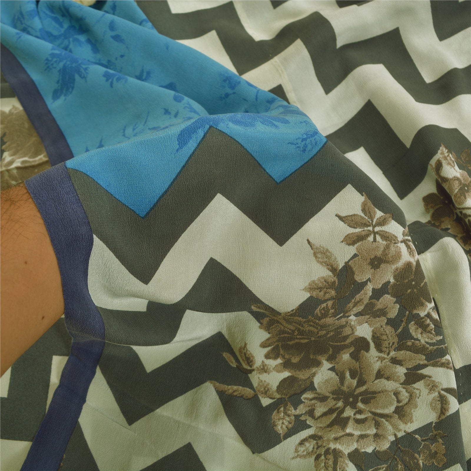 Sanskriti Vintage Sarees Gray Indian Pure Crepe Silk Printed Sari Craft Sustainable Fabric