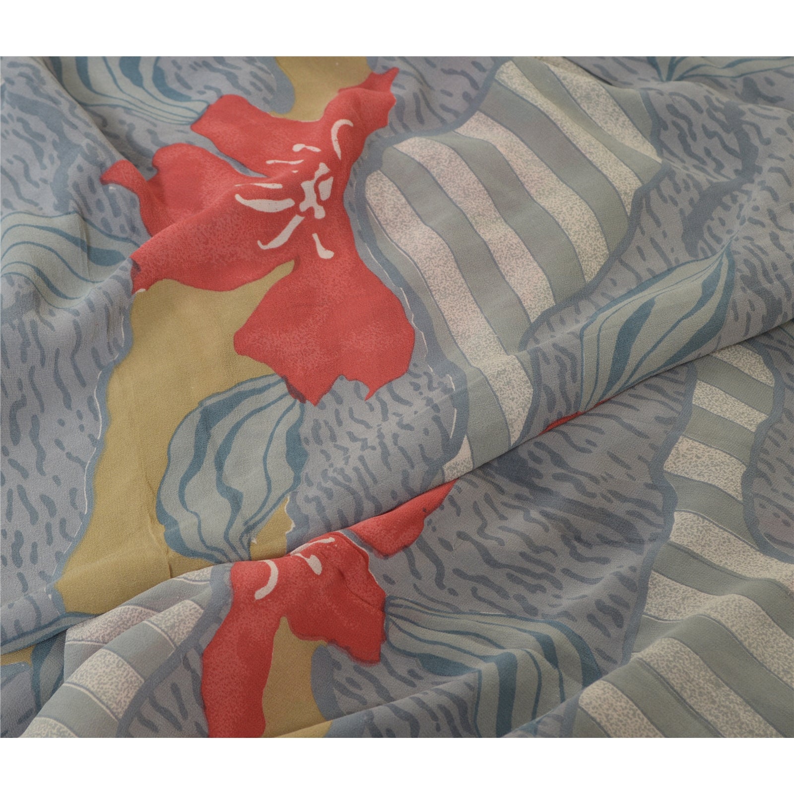 Sanskriti Vintage Sarees Gray Pure Georgette Silk Printed Sari 5yd Craft Sustainable Fabric