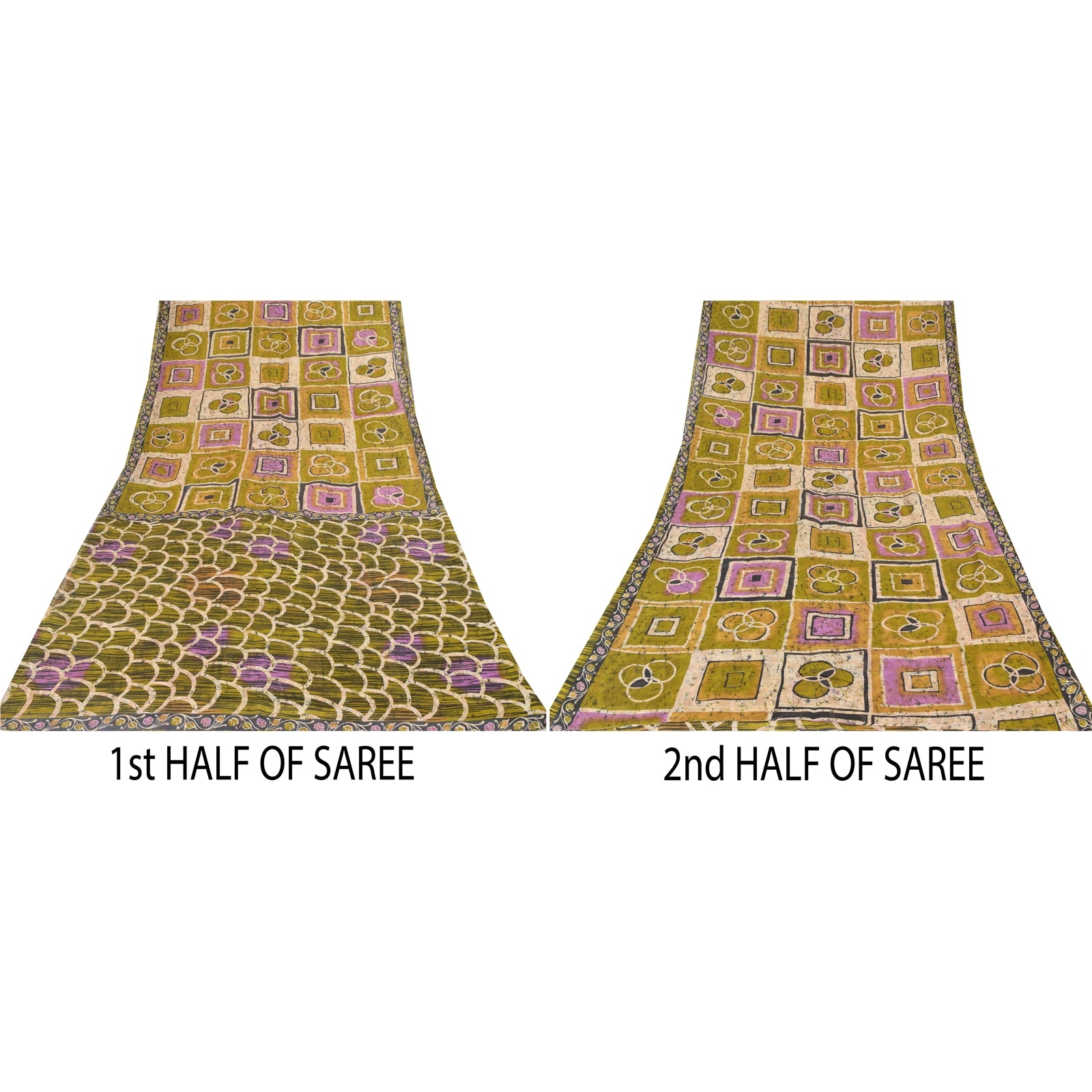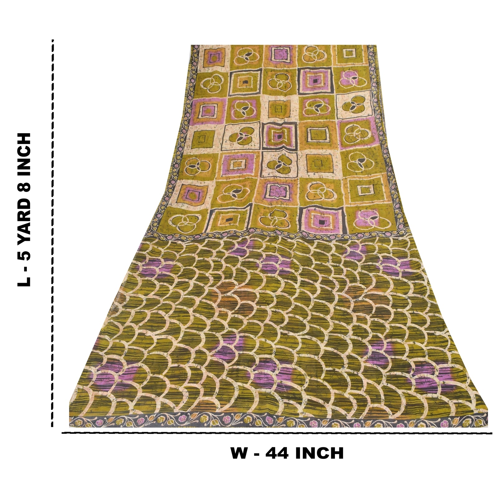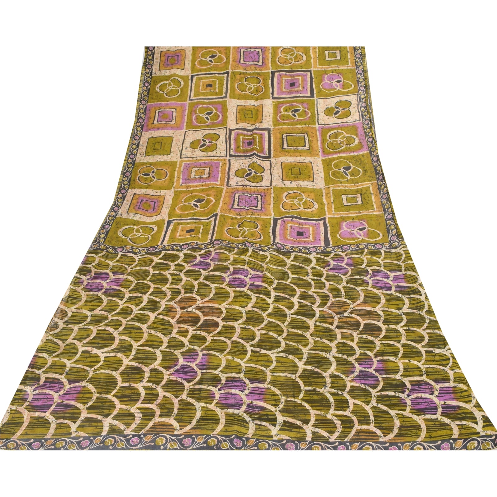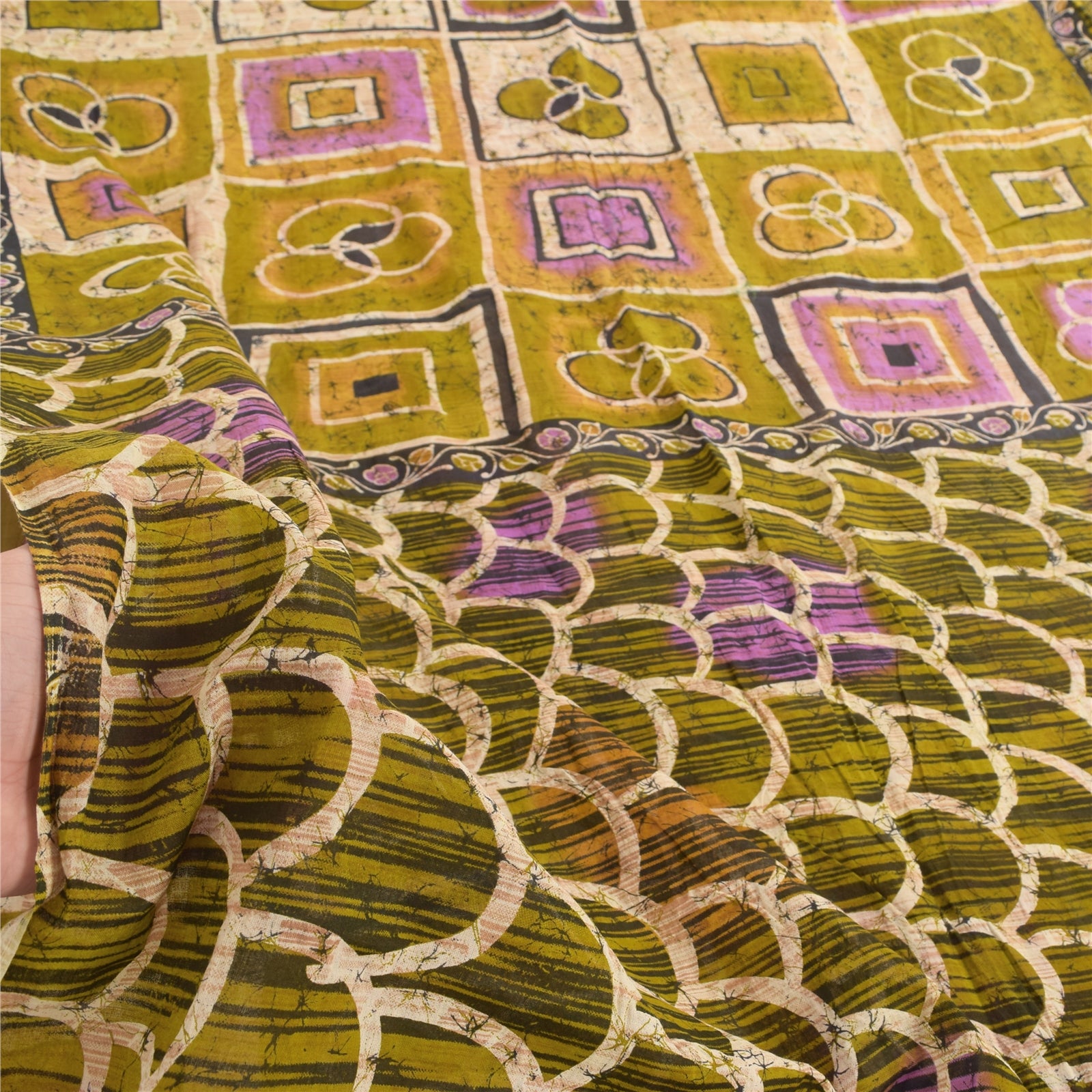 Sanskriti Vintage Sarees Green Batik Work 100% Pure Cotton Sari 5yd Craft Fabric