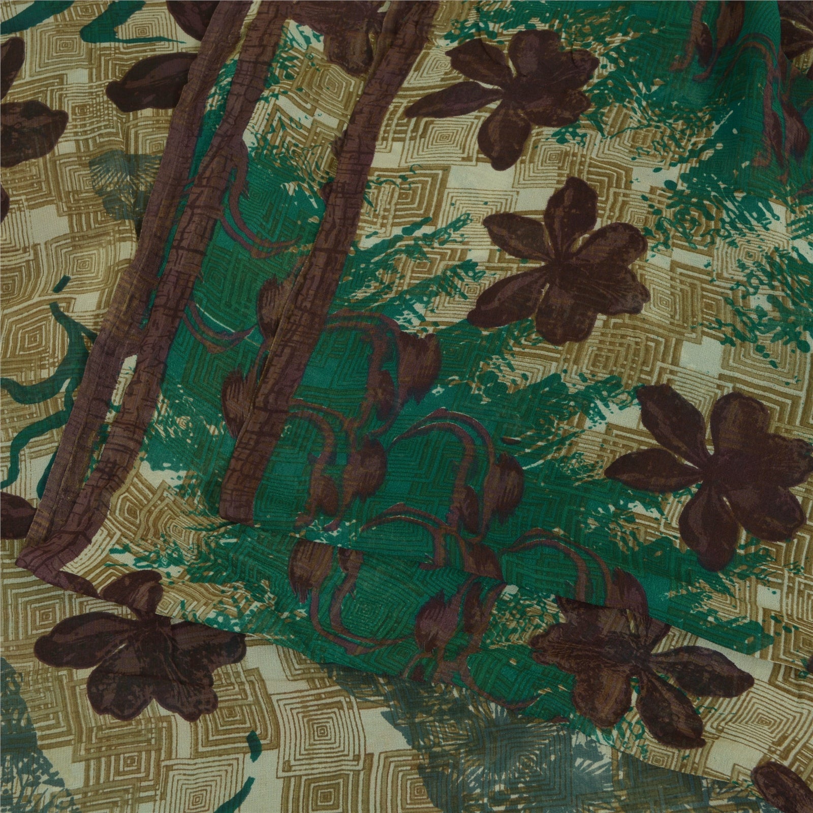Sanskriti Vintage Sarees Green/Brown Pure Georgette Silk Print Sari Craft Sustainable Fabric
