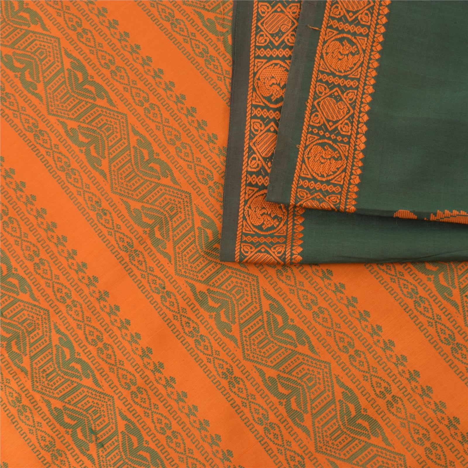 Sanskriti Vintage Sarees Green Peacock Woven Pure Cotton Sari 5+yd Craft Sustainable Fabric