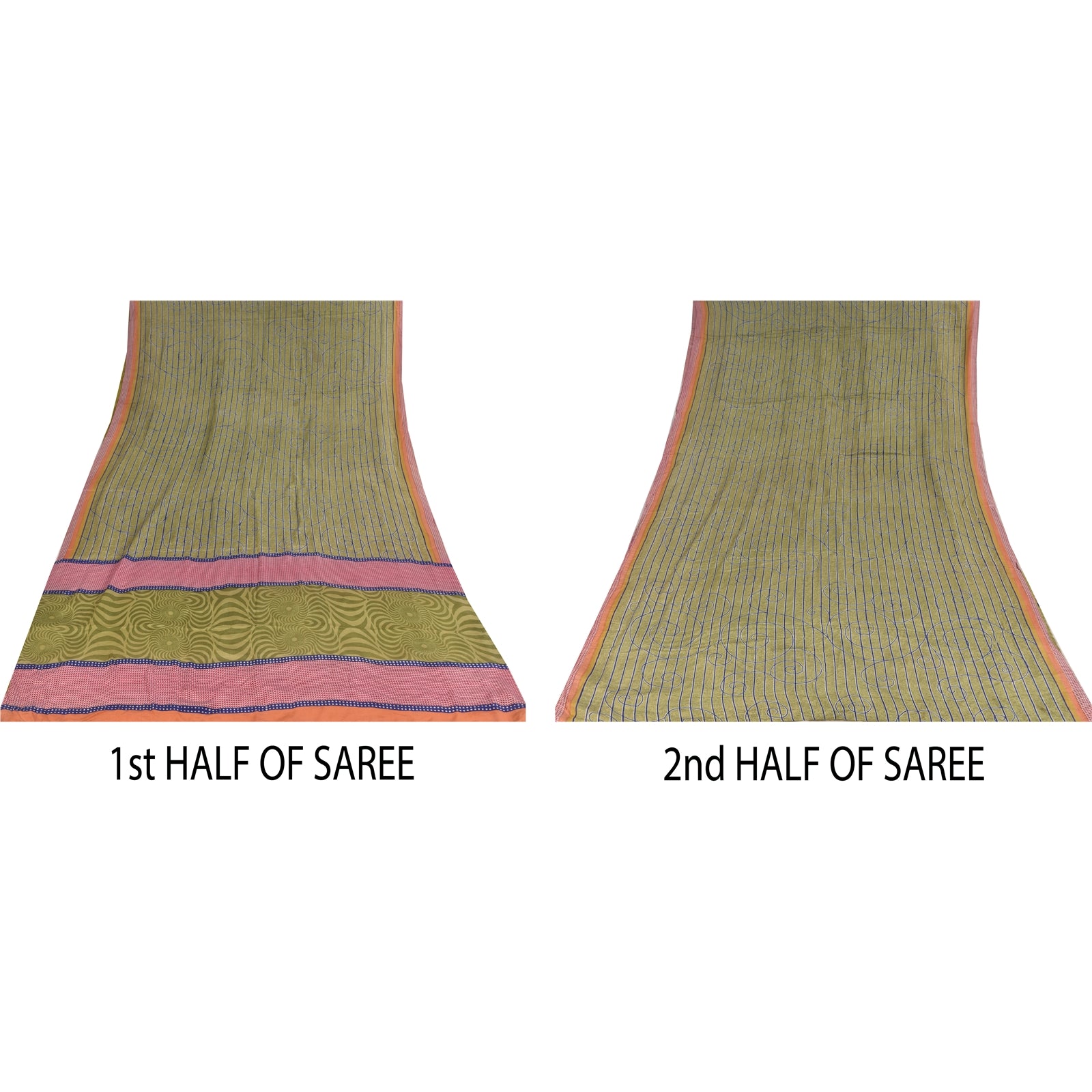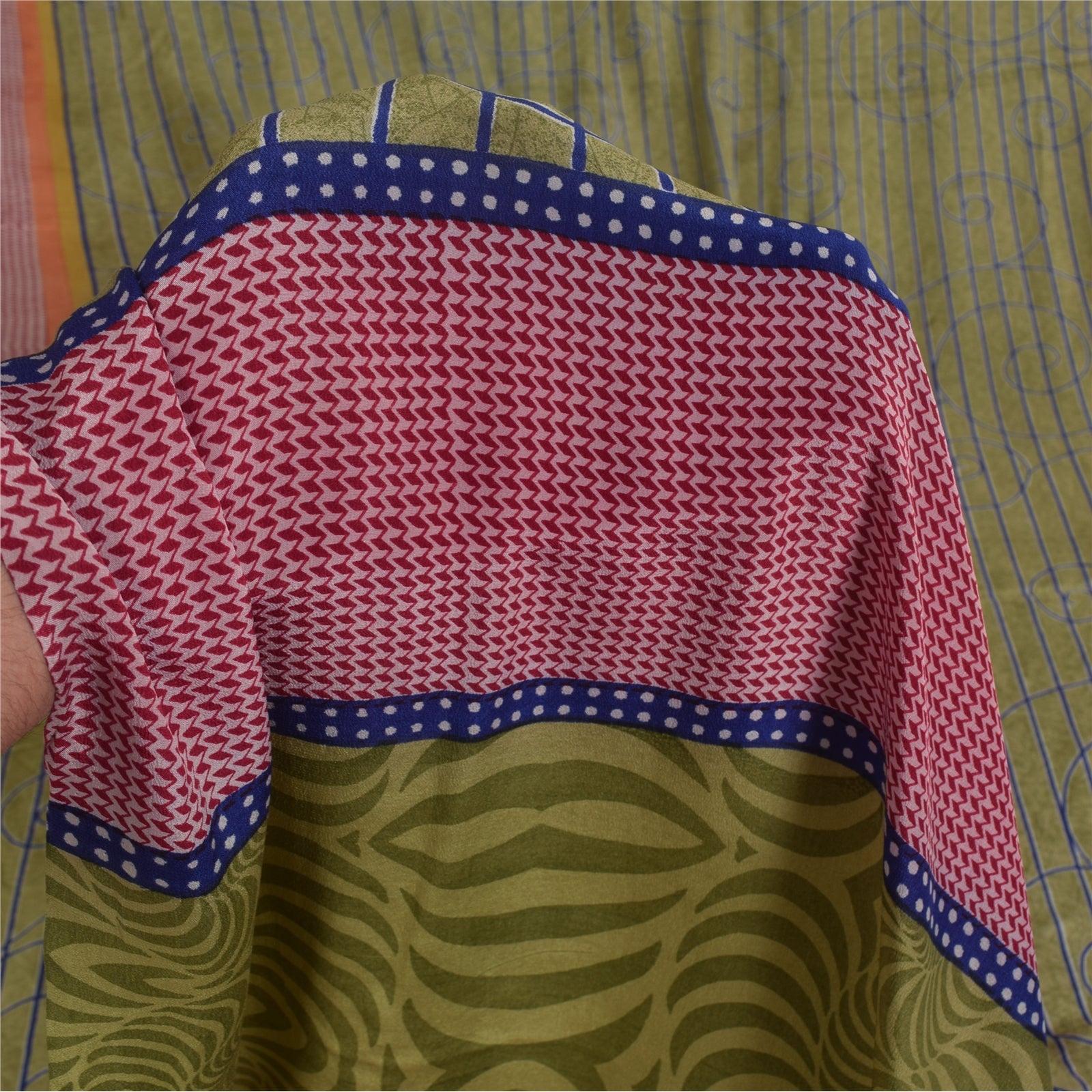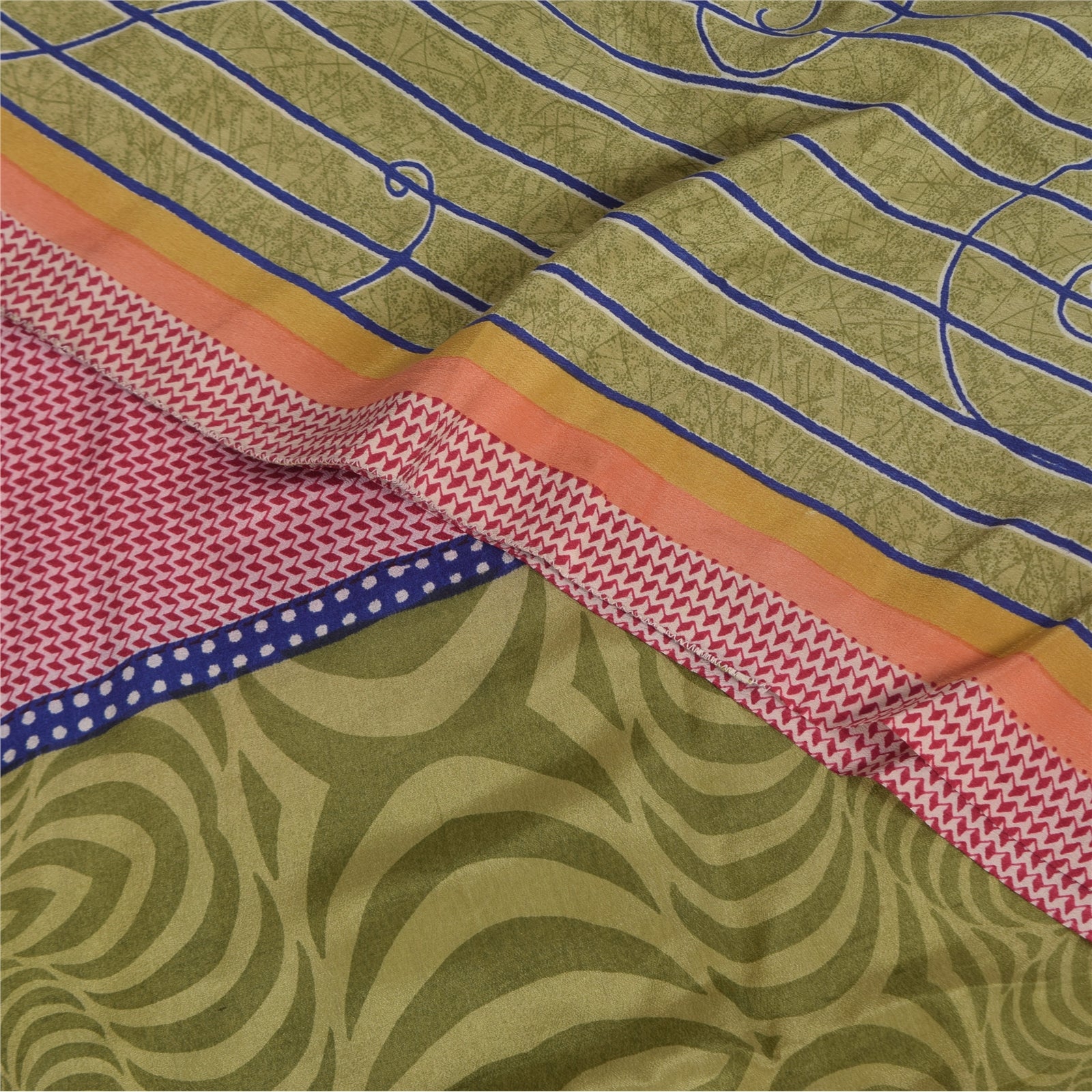 Sanskriti Vintage Sarees Green Pure Crepe Silk Printed Sari 5+yd Craft Sustainable Fabric