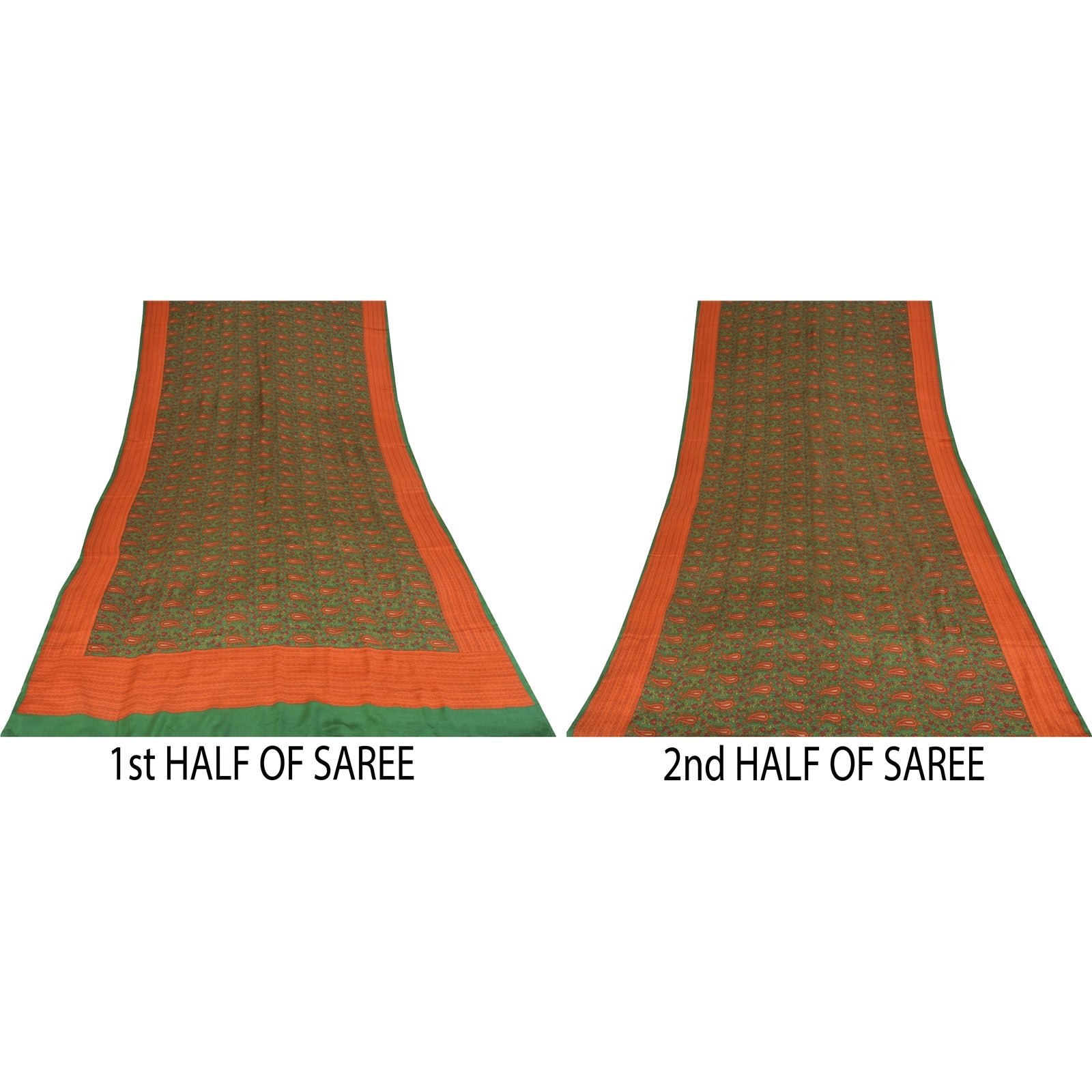 THE ITEM COLOR OR SHADE MAY BE DARKER OR LIGHTER THAN THE PICTURE.' • Beautiful green & orange colored printed pure crepe silk saree . • Border has printed floral design. • Similar design in center part of sari . This unique vintage saree can be used for various crafting ideas even if you don't want to use it as a sari. Design a dress, use it as a as window dressing, upholstery, sarongs, throw, dress making and table linen much more. Let your creative juices flow and use this decorated fabric in multiple fashion. International buyers please note: Import duties, taxes, and charges are not included in the item price or postage cost. These charges are the buyer's responsibility. Please check with your country's customs office to determine what these additional costs will be prior to bidding or buying.Buyer will pay custom duty/tax. It is calculated and charged differently by every country. As a seller I do not have any control over it. VAT or sales tax is calculated by the platform at the time of checkout. Customs charge is payable at the time of delivery. PRC-23540