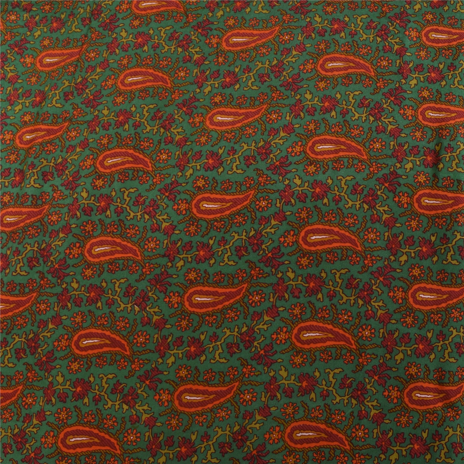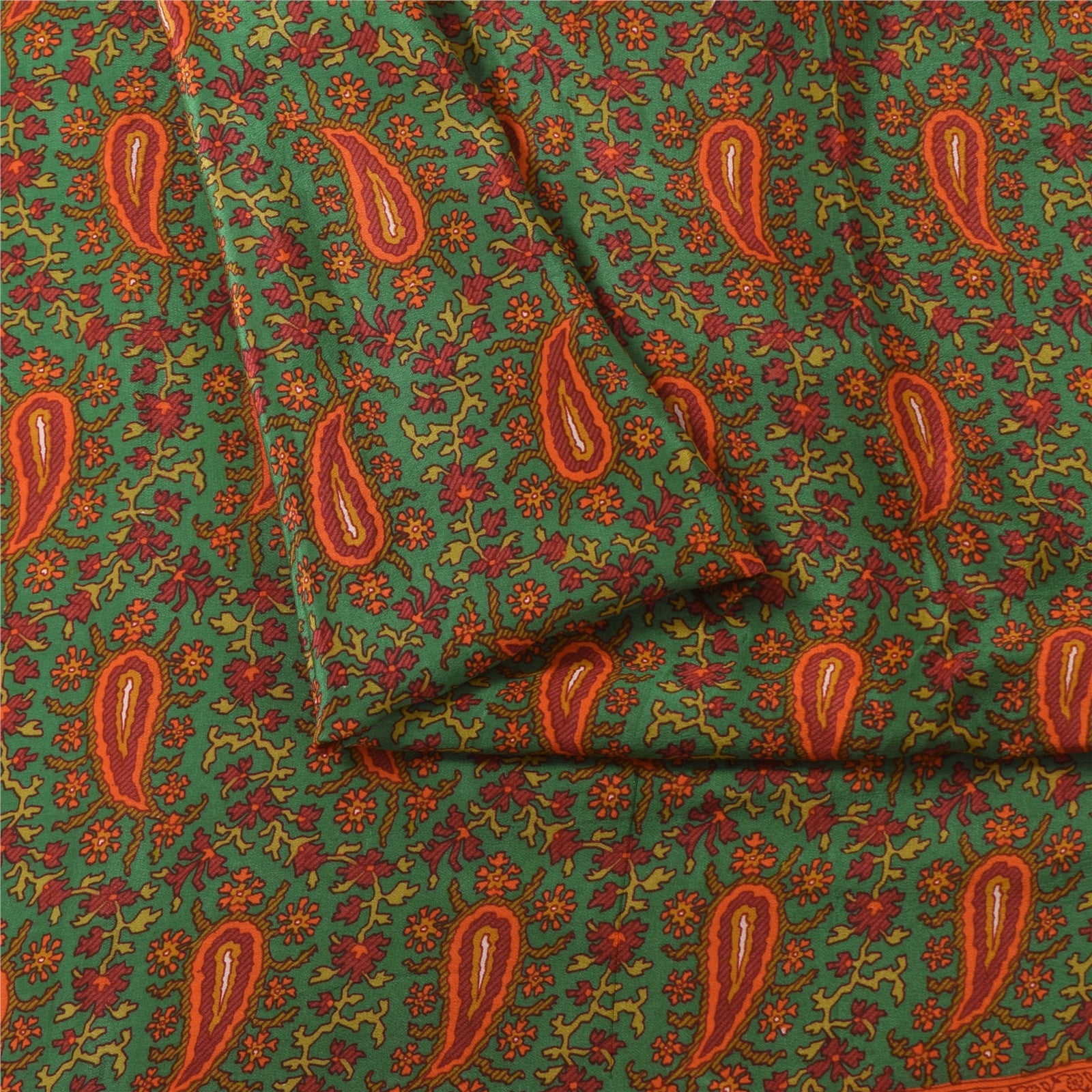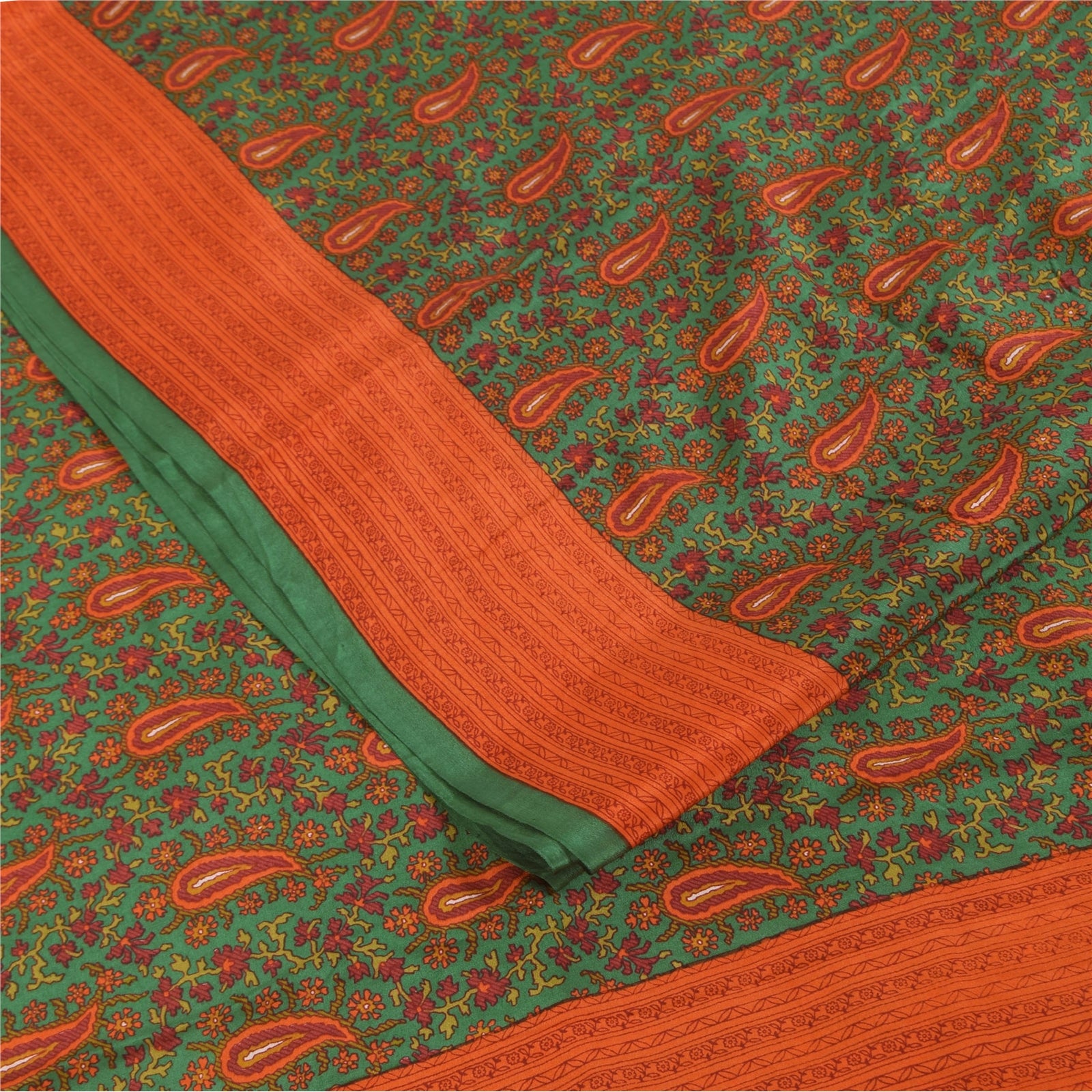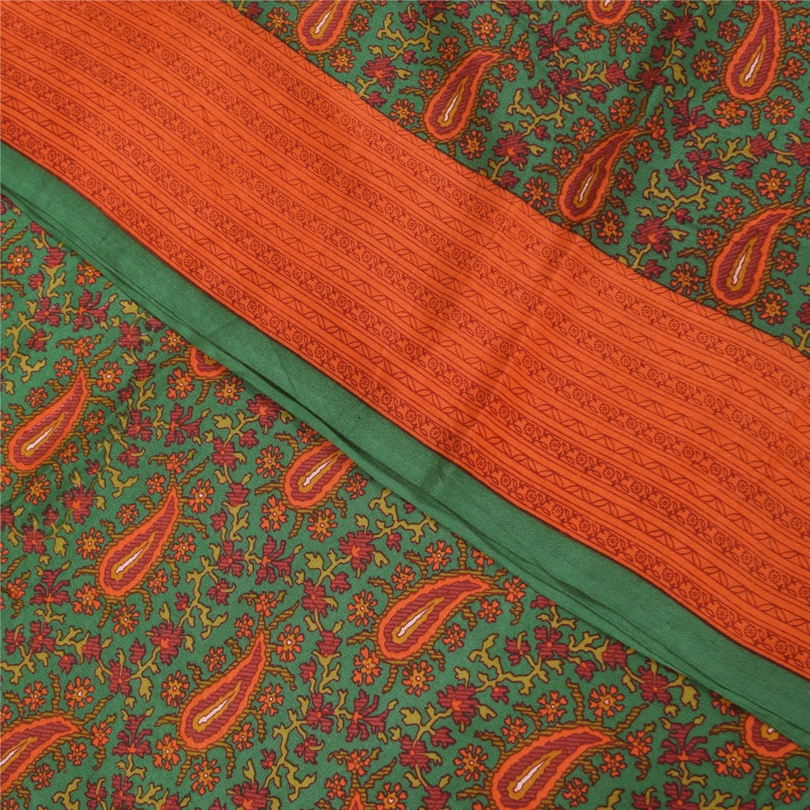 Sanskriti Vintage Sarees Green Pure Crepe Silk Printed Sari 5+yd Craft Fabric