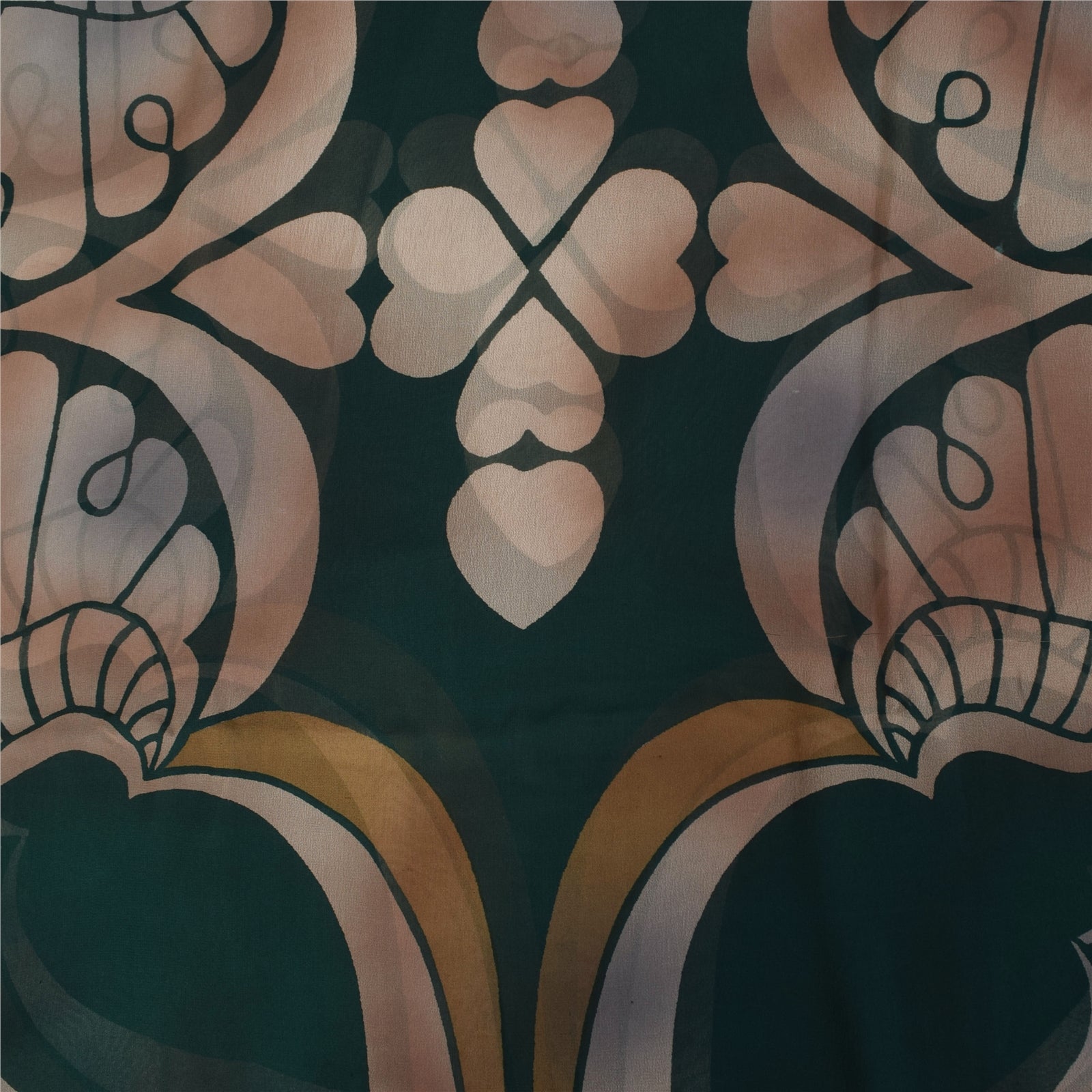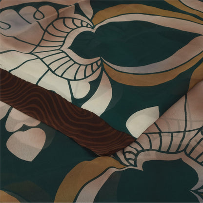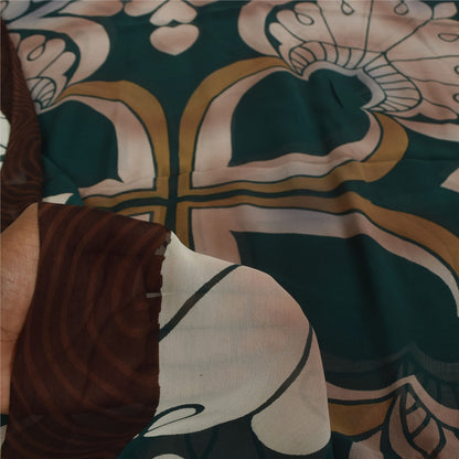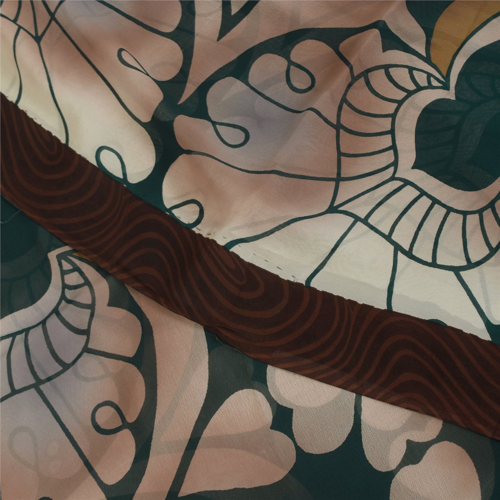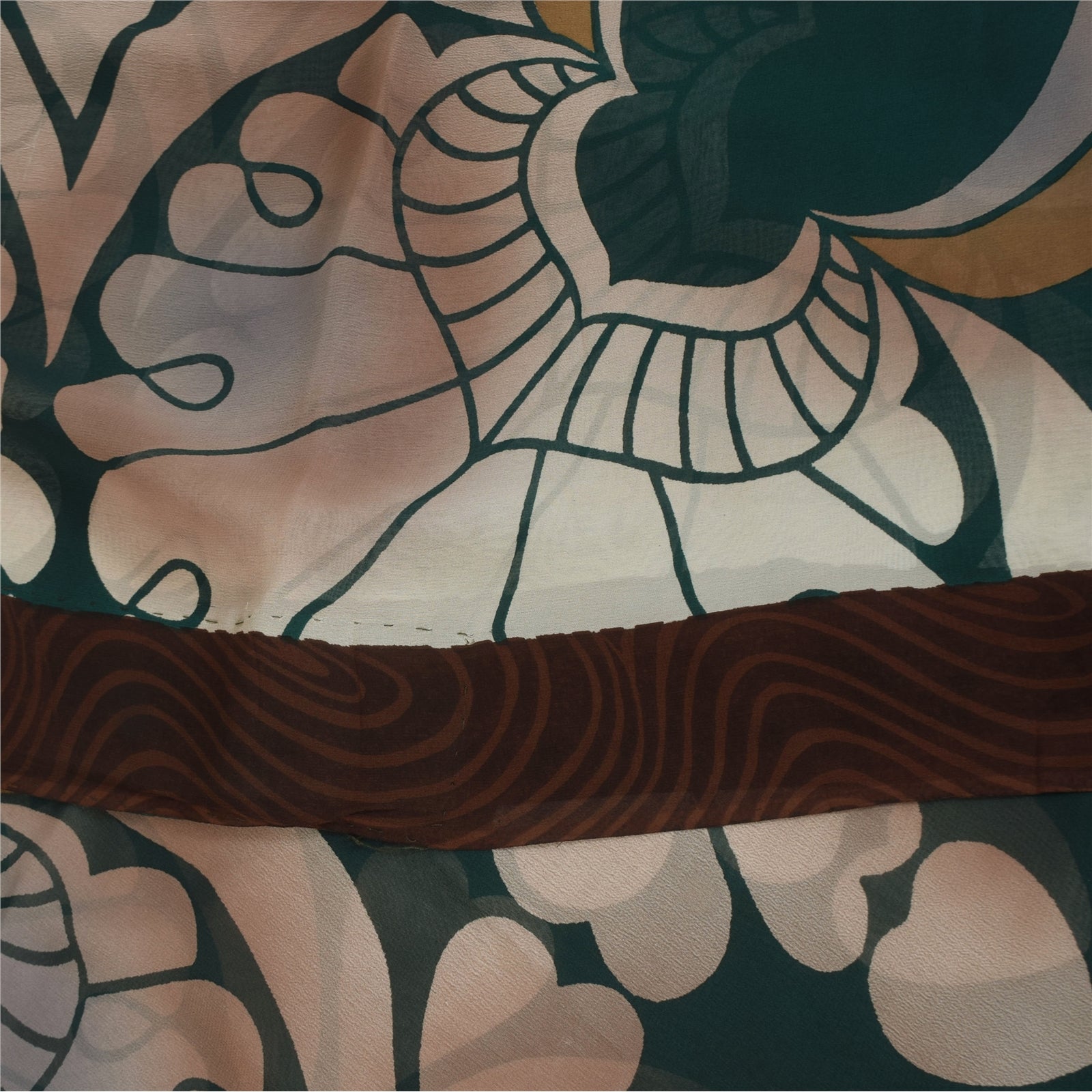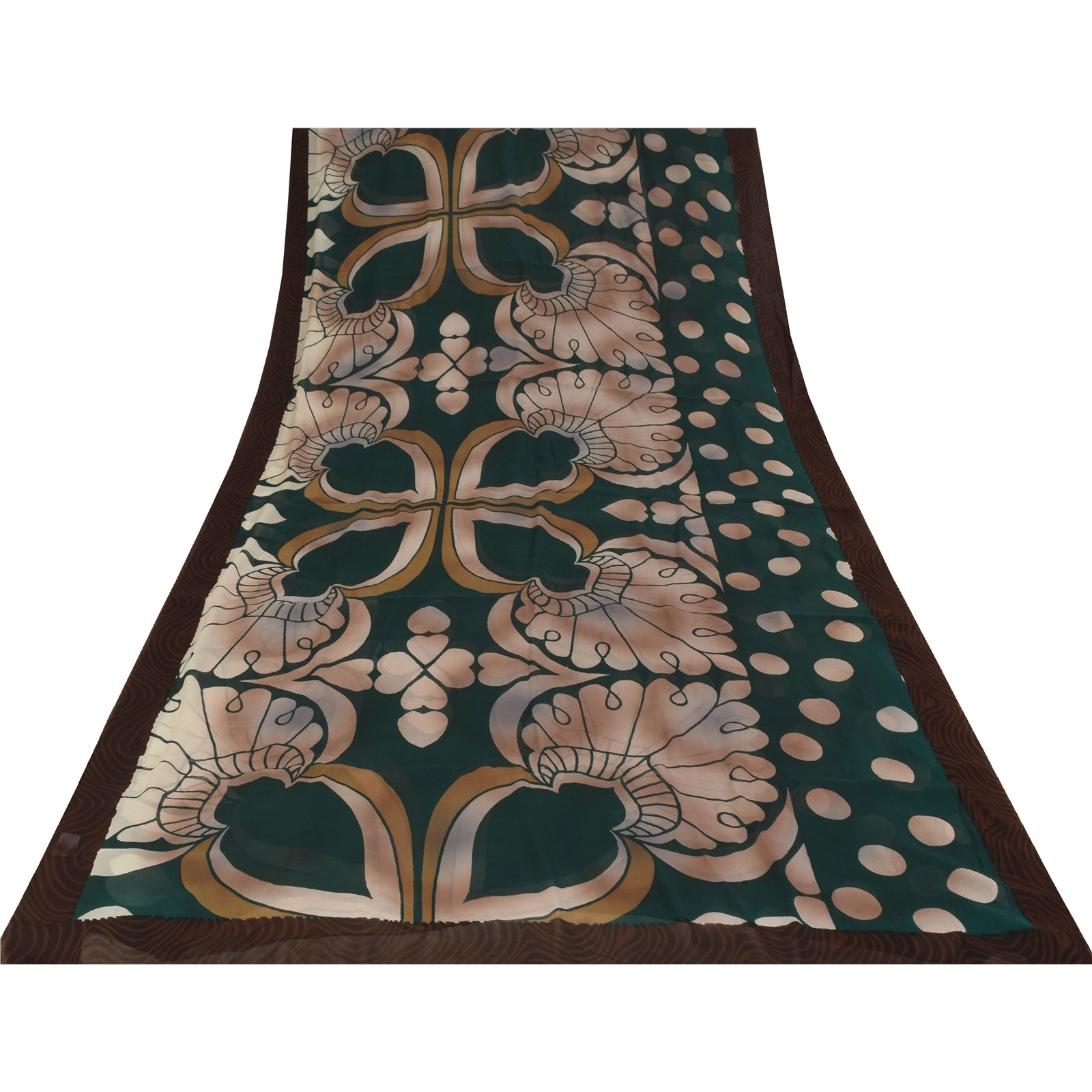 Sanskriti Vintage Sarees Green Pure Georgette Silk Print Sari 6yd Craft Sustainable Fabric
