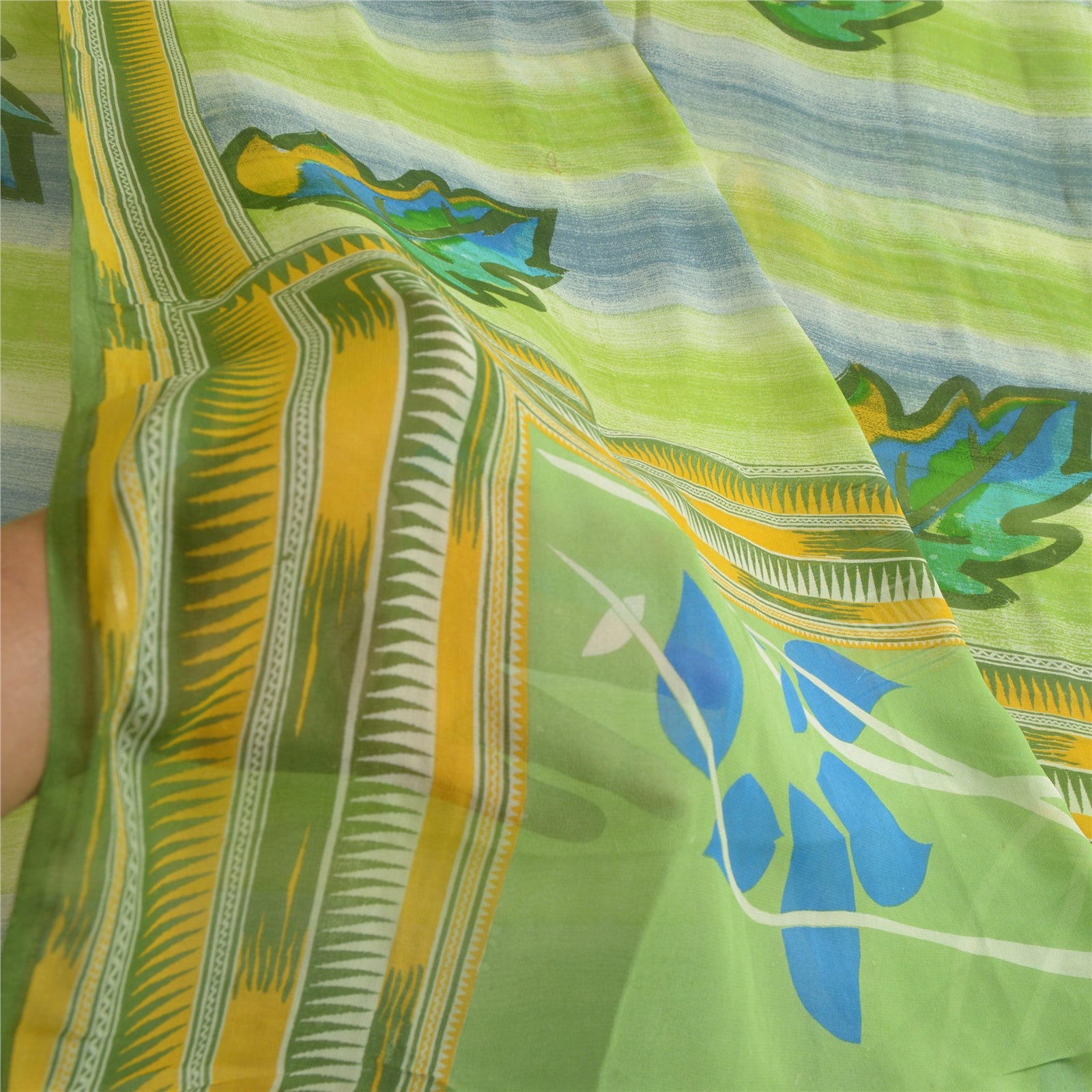 Sanskriti Vintage Sarees Green Pure Georgette Silk Printed Sari 5yd Craft Sustainable Fabric