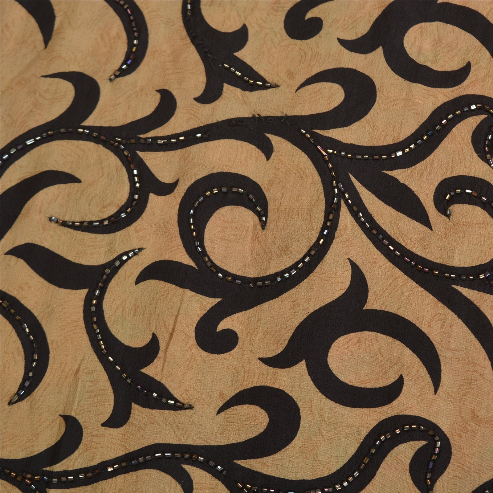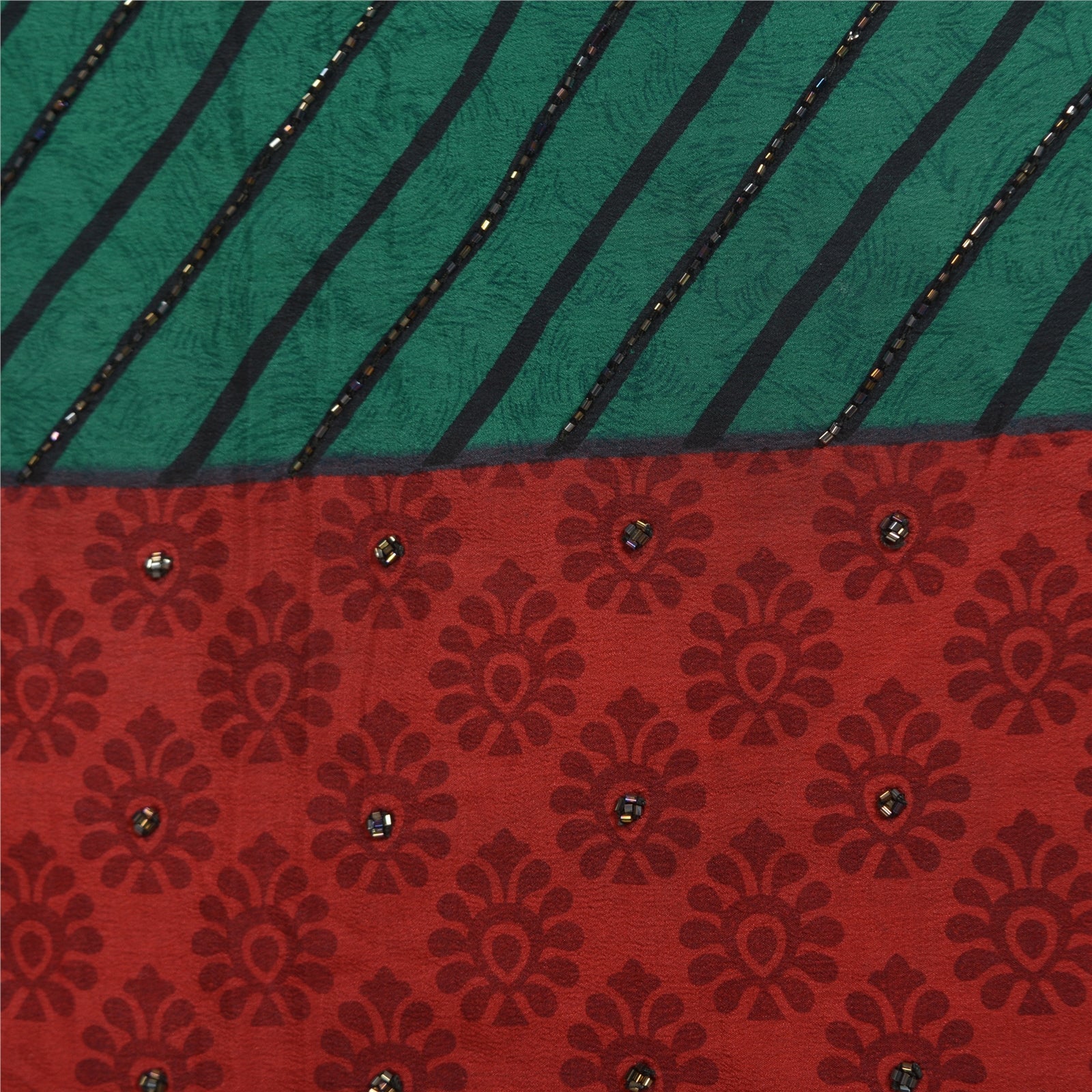 Sanskriti Vintage Sarees Hand Beaded Pure Crepe Silk Printed Sari Craft Sustainable Fabric