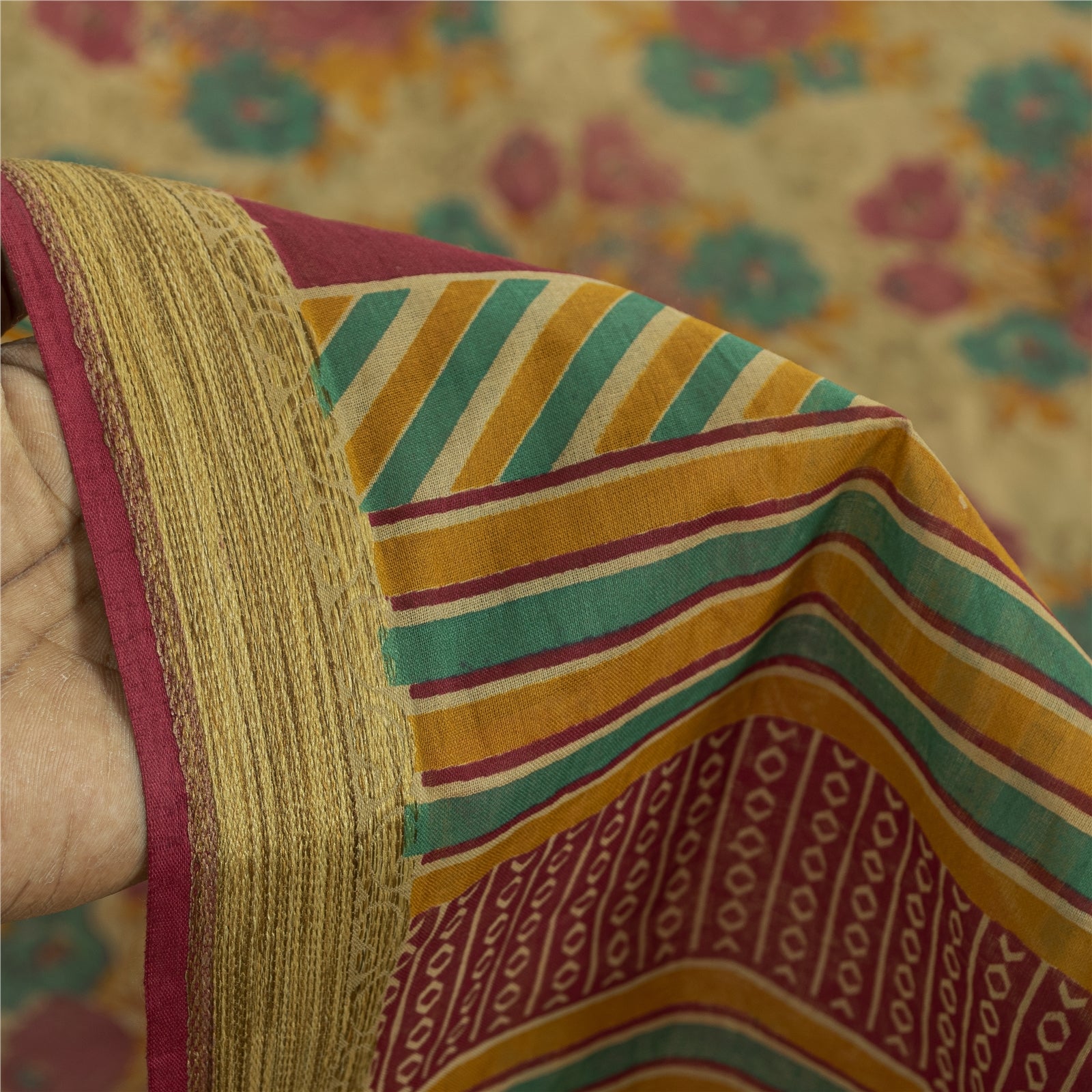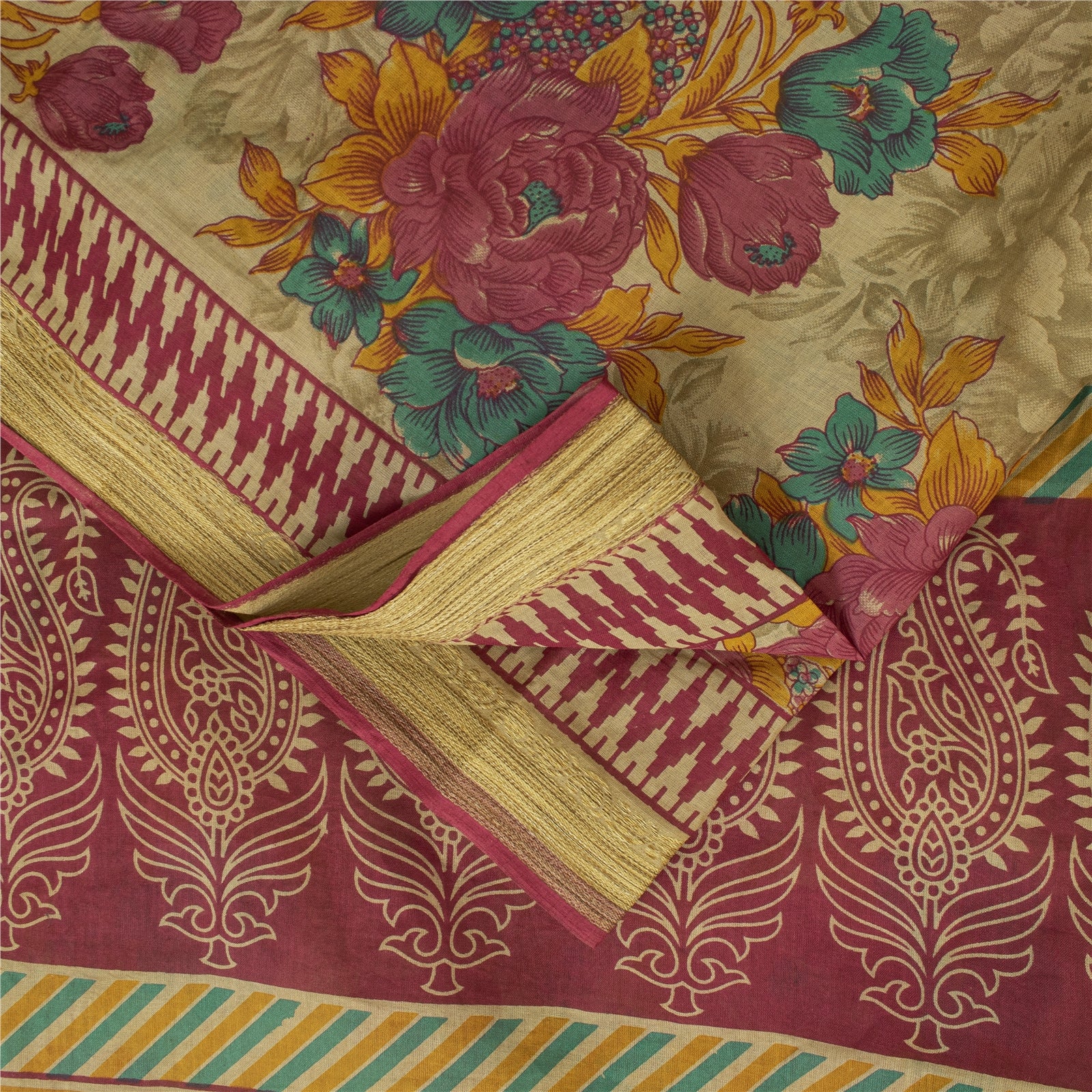 THE ITEM COLOR OR SHADE MAY BE DARKER OR LIGHTER THAN THE PICTURE. Attractive beige colored pure cotton printed sari. Pallu & Border has printed floral & geometric design. Floral design in center part of saree.. This unique vintage saree can be used for various crafting ideas even if you don't want to use it as a sari. Design a dress, use it as a as window dressing, upholstery, sarongs, throw, dress making and table linen much more. Let your creative juices flow and use this decorated fabric in multiple fashion. Shipping Note: 'International buyers please note: Import duties, taxes, and charges are not included in the item price or postage cost. These charges are the buyer's responsibility. Please check with your country's customs office to determine what these additional costs will be prior to bidding or buying. Buyer will pay custom duty/tax. It is calculated and charged differently by every country. As a seller I do not have any control over it. VAT or sales tax is calculated by the platform at the time of checkout. Customs charge is payable at the time of delivery.' PCS-7378